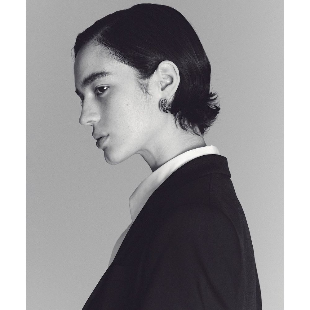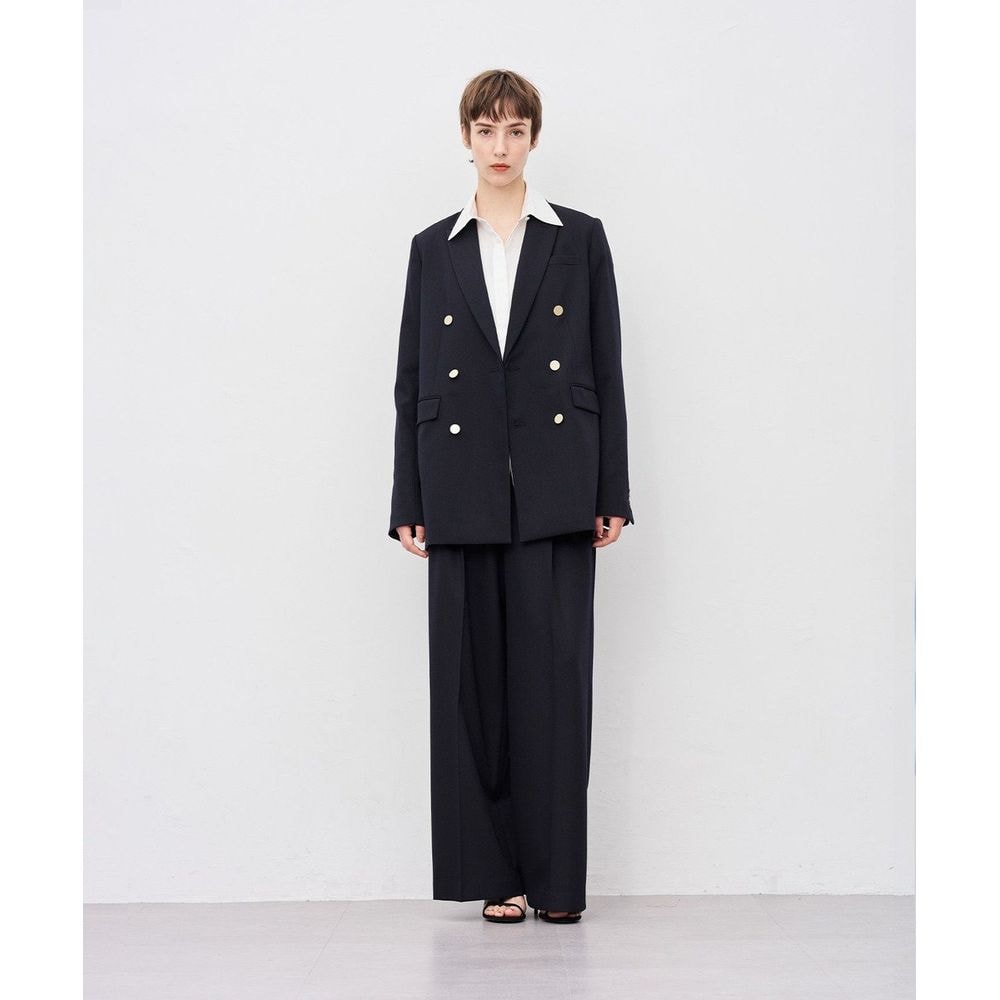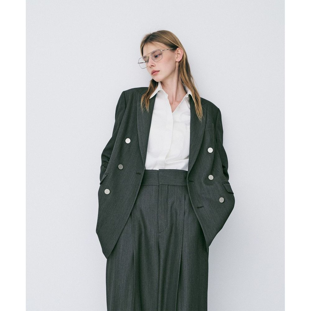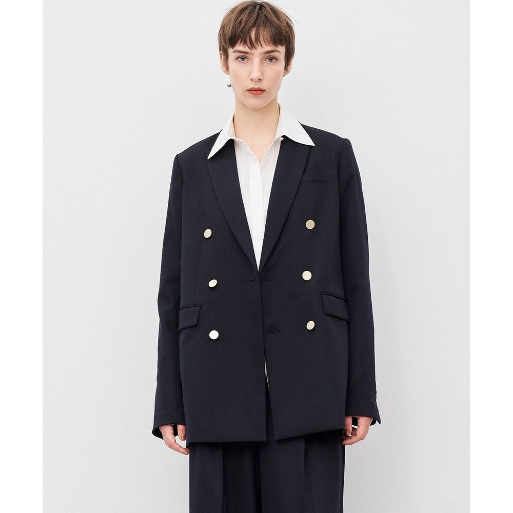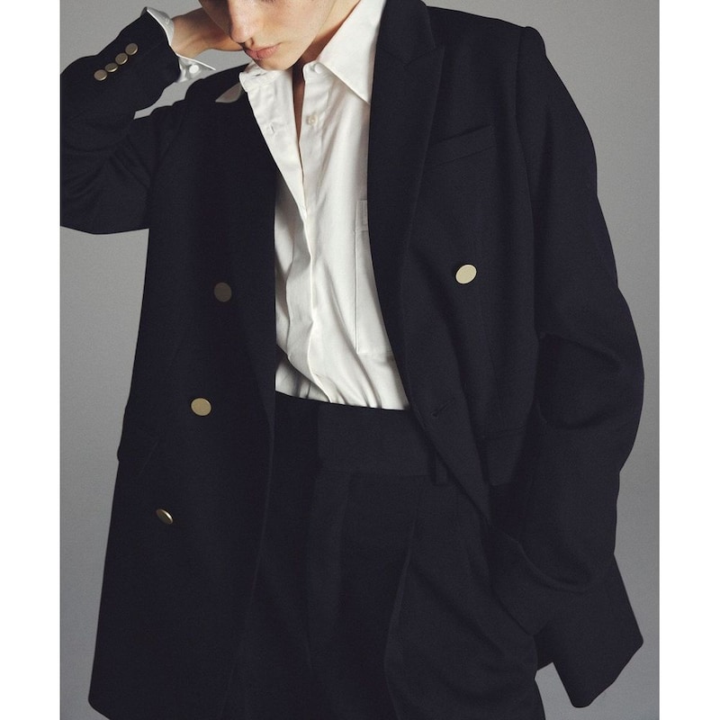 前身頃、袖口にはメタル釦を使用、色味も派手過ぎない薄金Goldにする事で高級感とミニマルでモードな印象に。