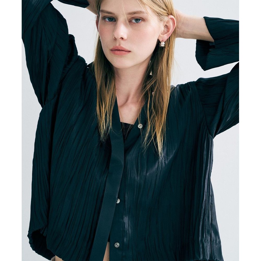 ランダムプリーツを施したショートシャツ