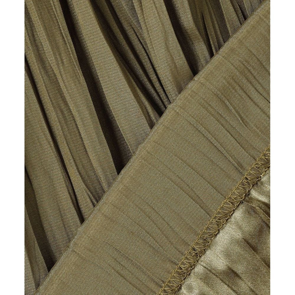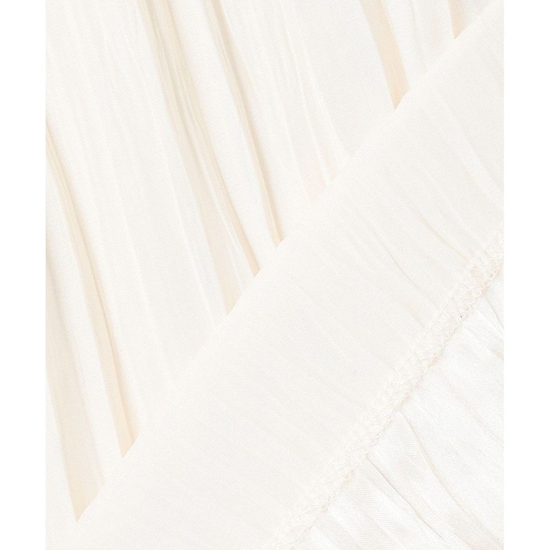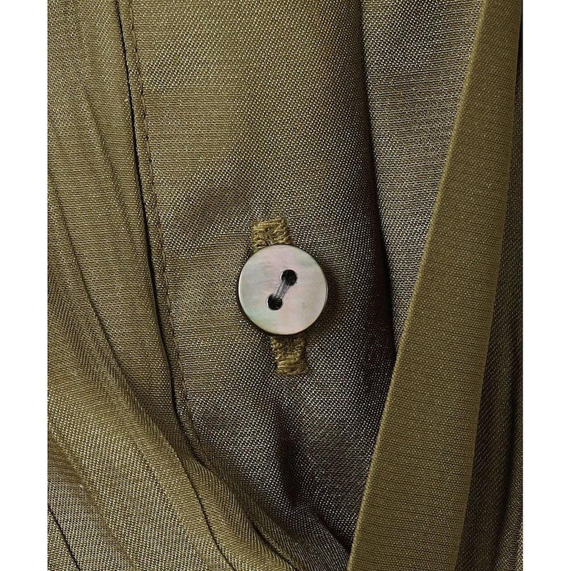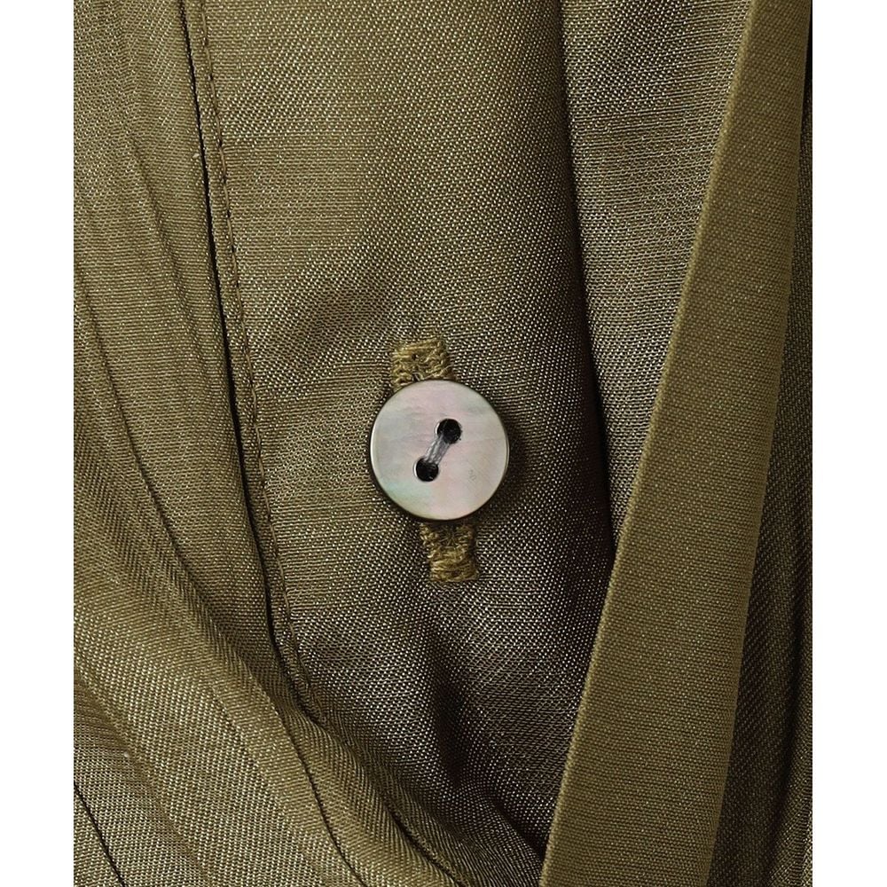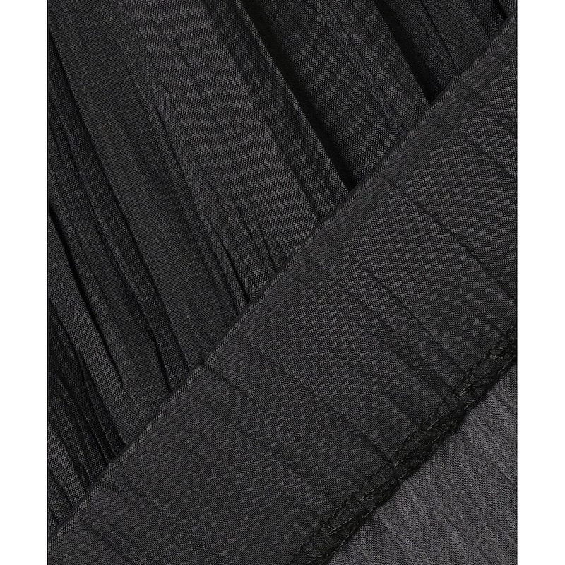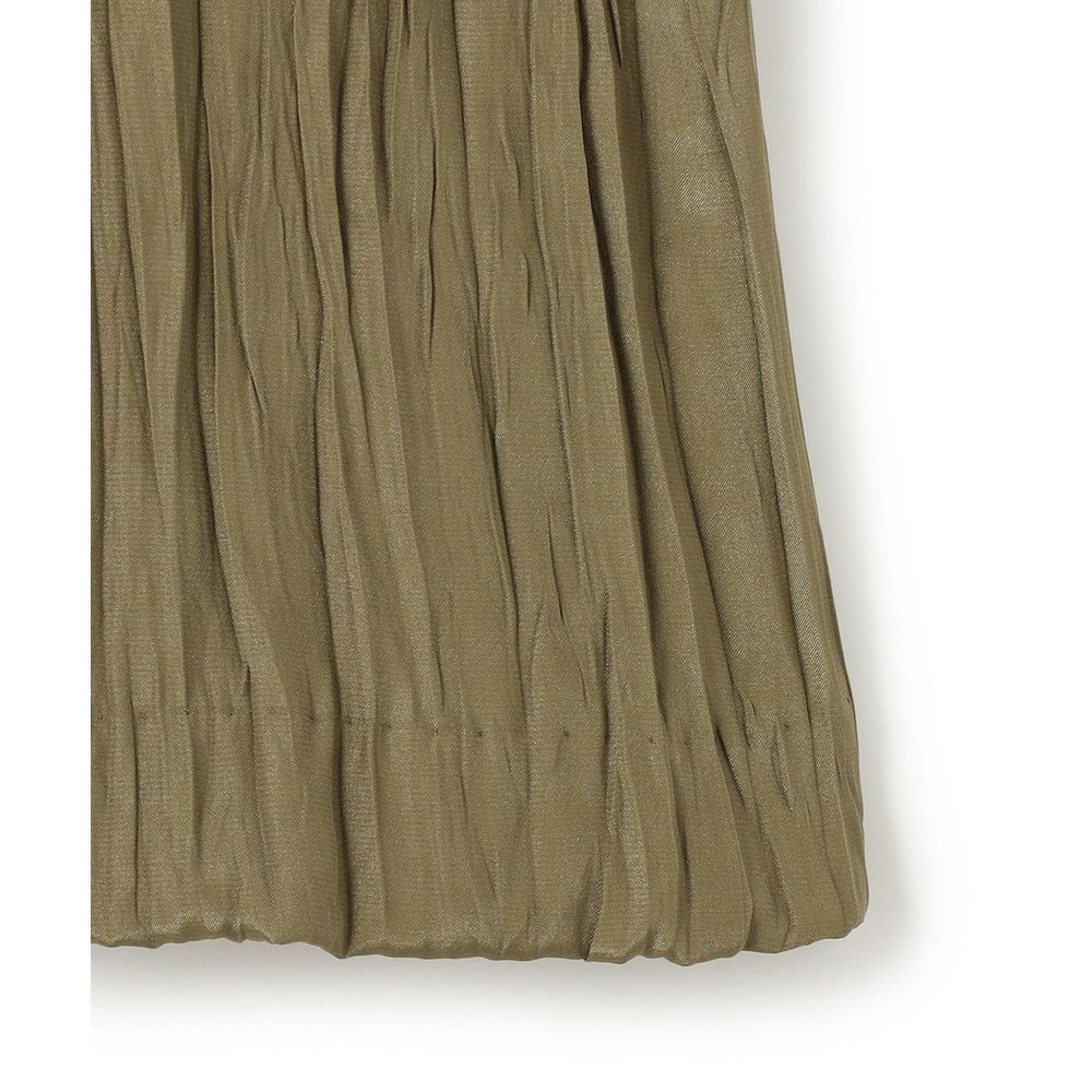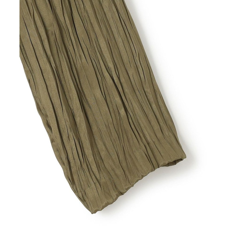 両面どちらも表として使える為、今回は裏側のバックサテン面で使用、光り過ぎない表情とほのかな透け感がある素材に細かなランダムプリーツを施しました。