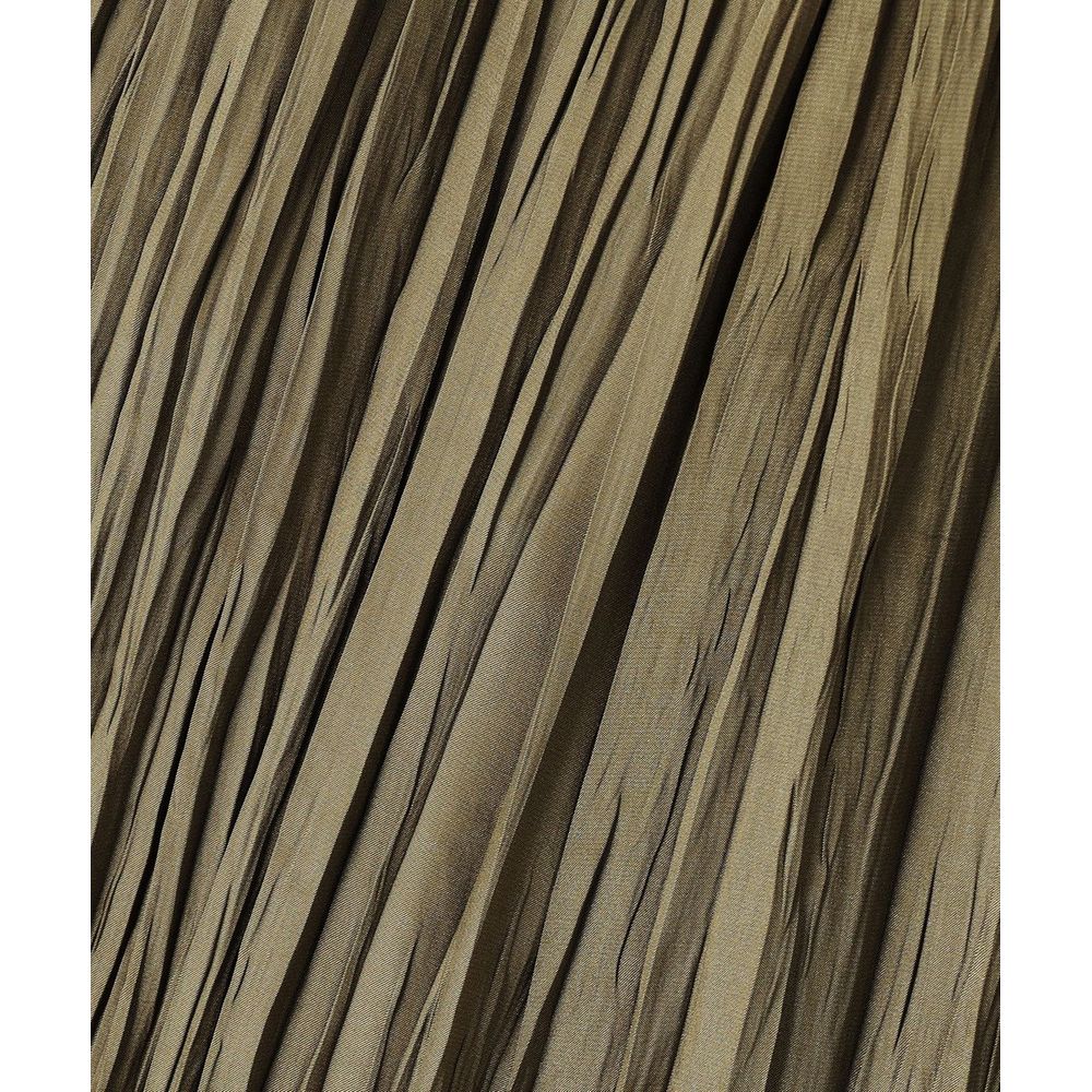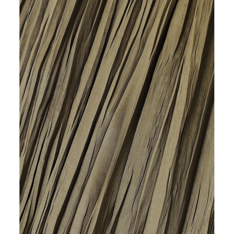 両面どちらも表として使える為、今回は裏側のバックサテン面で使用、光り過ぎない表情とほのかな透け感がある素材に細かなランダムプリーツを施しました。