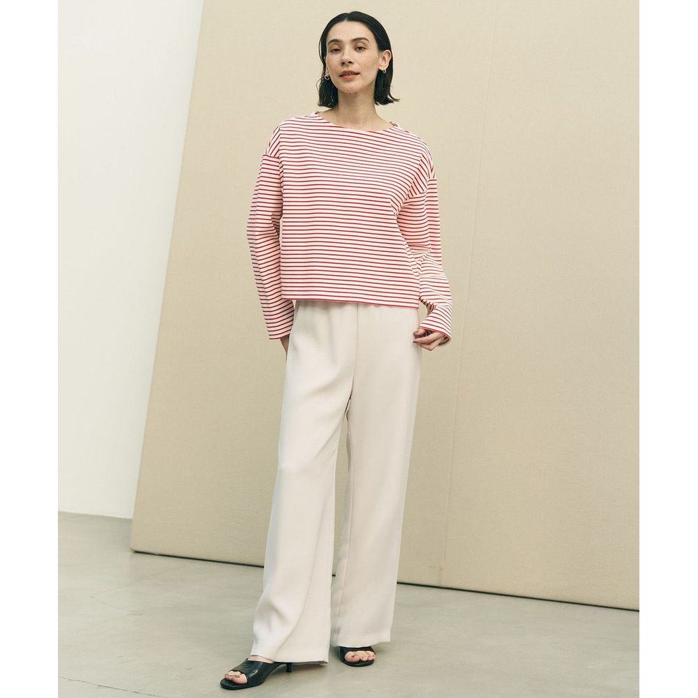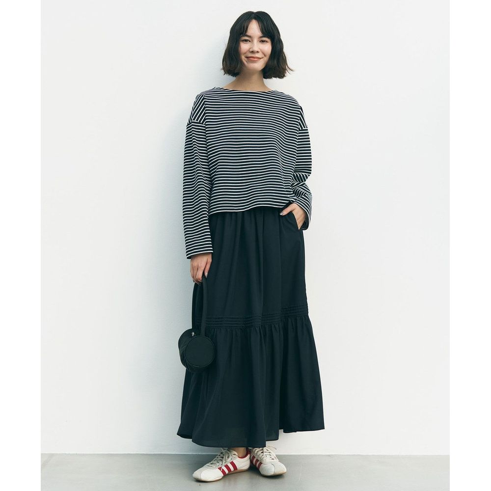 リラックス感のあるワイドシルエットが魅力のボーダーTシャツ。