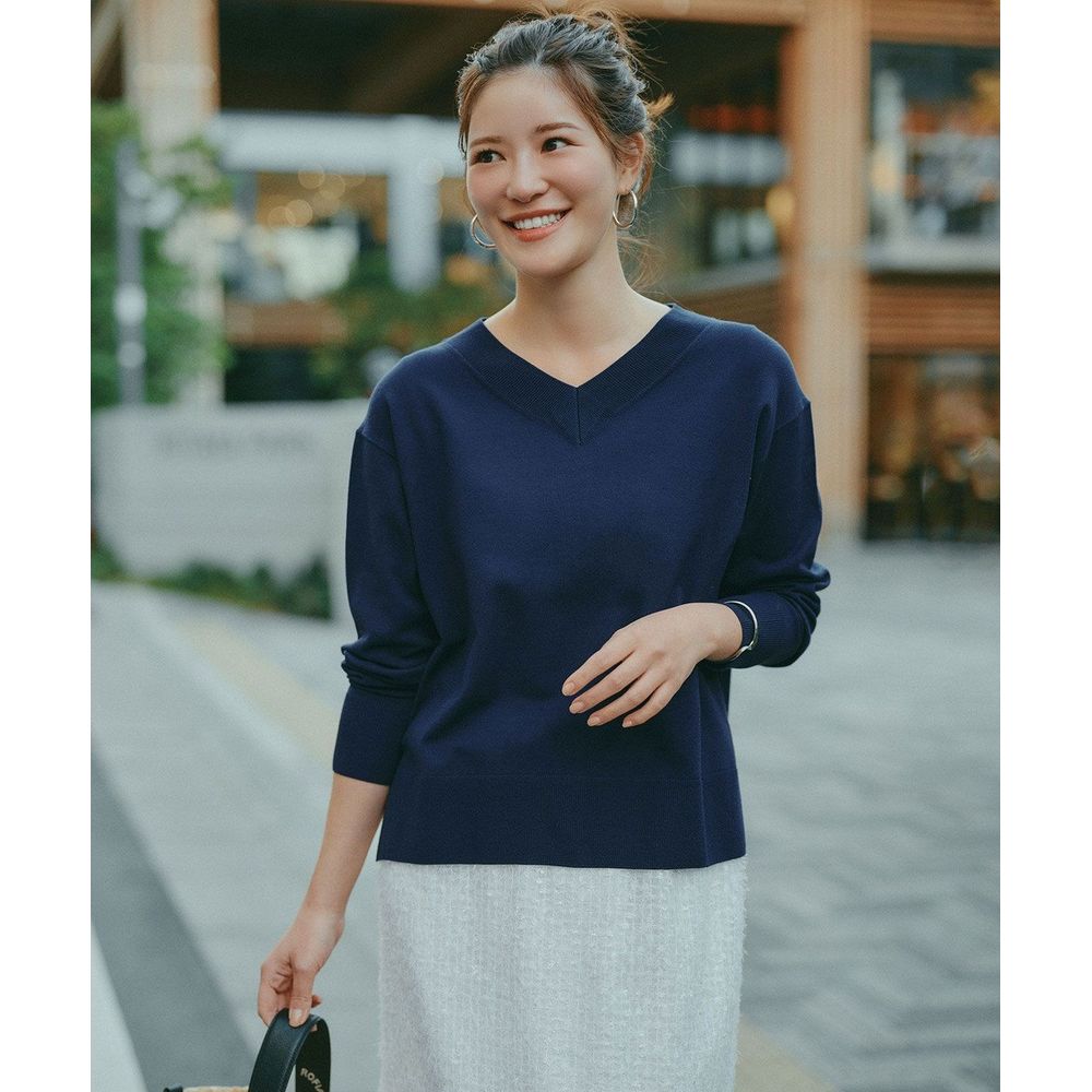 Vネックが開きすぎていなくて良いです。首元がすっきりと綺麗にみえます。