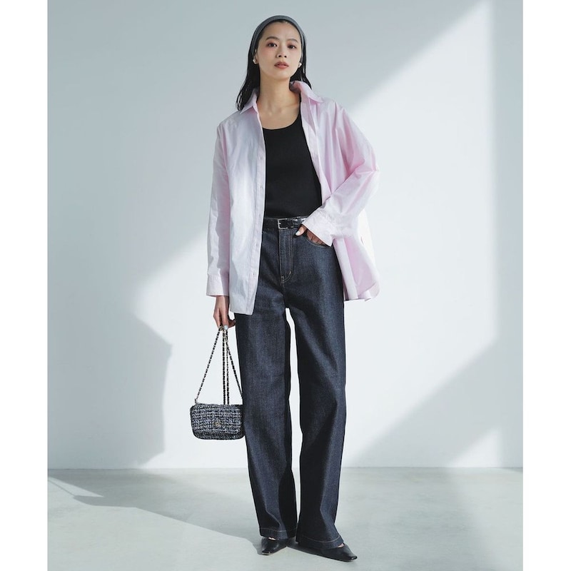 デニムはもちろん、すっきりとしたボトムスでメリハリをつけたコーデもおすすめです。