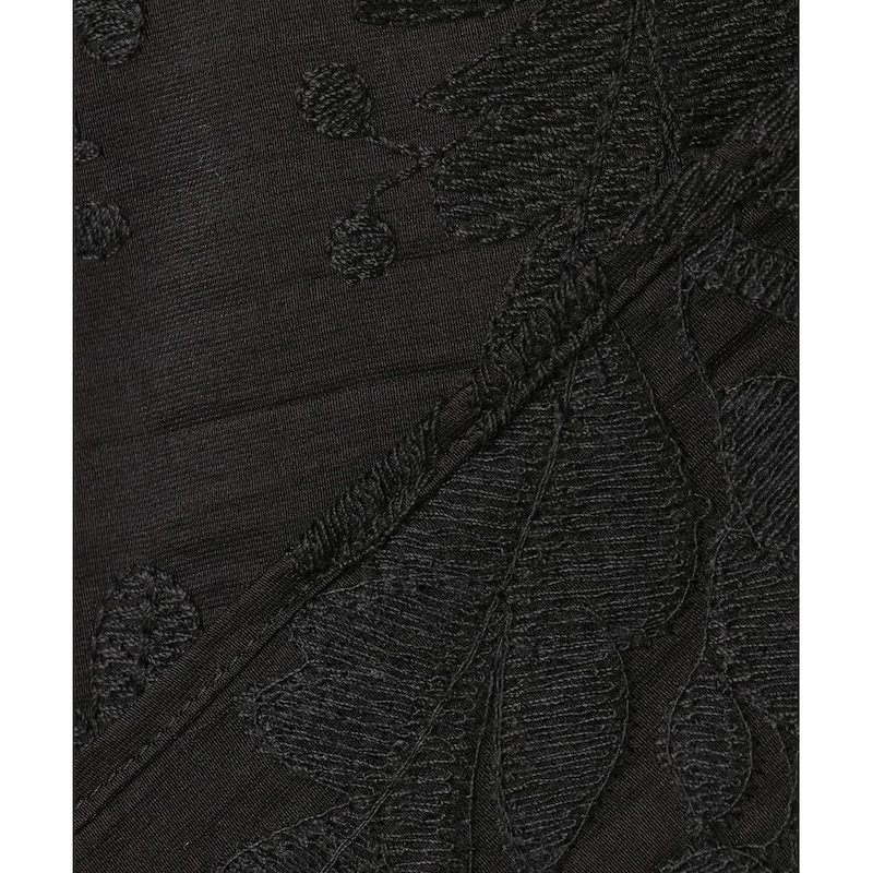 再生繊維(セルロース)/ポリエステルのシアー素材をベースに、ポリエステル糸でオリジナル柄の刺繍を施した素材です。
