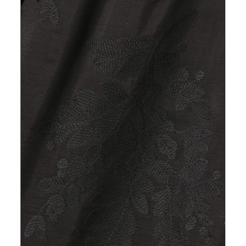 再生繊維(セルロース)/ポリエステルのシアー素材をベースに、ポリエステル糸でオリジナル柄の刺繍を施した素材です。