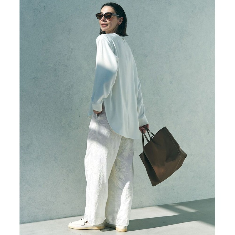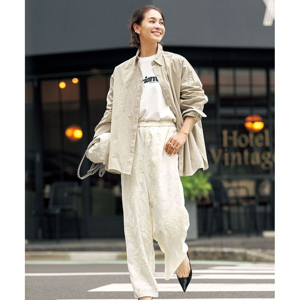 歩くたびにふんわりと揺れる軽やかな生地が、スタイリングにフェミニンな印象をプラスしてくれます。