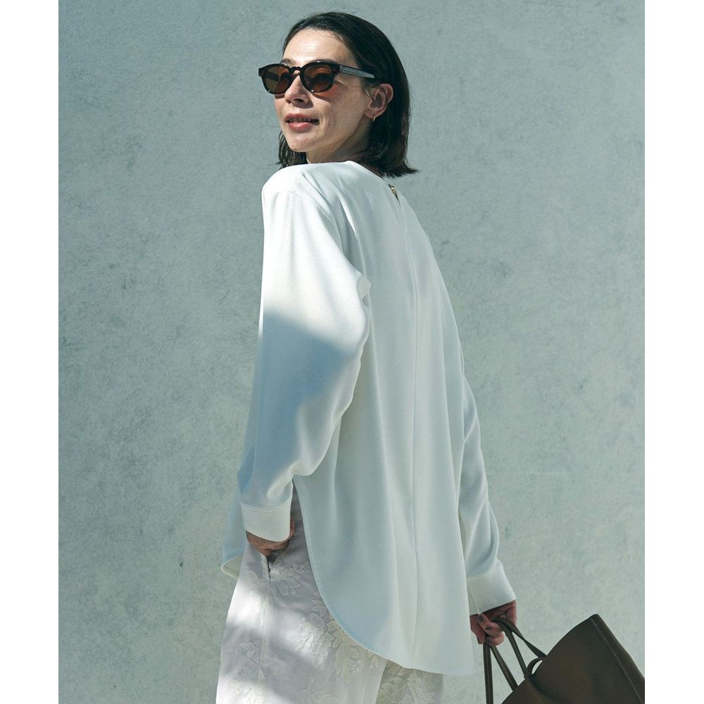 ナチュラルなストレッチ性を持つクレープジョーゼット素材のブラウス。