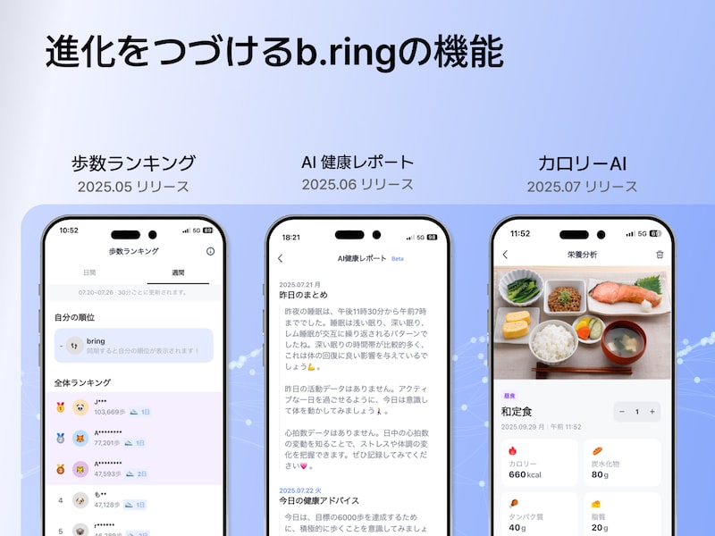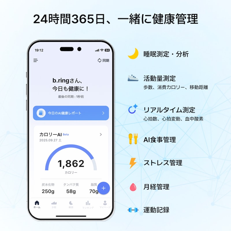 スマートリング「b.ring」は、指輪型のウェアラブルデバイスとしてスマートフォンと連携し、健康管理機能を備えております。