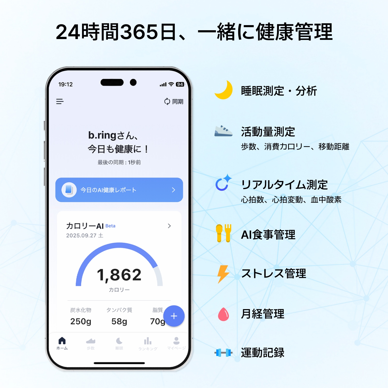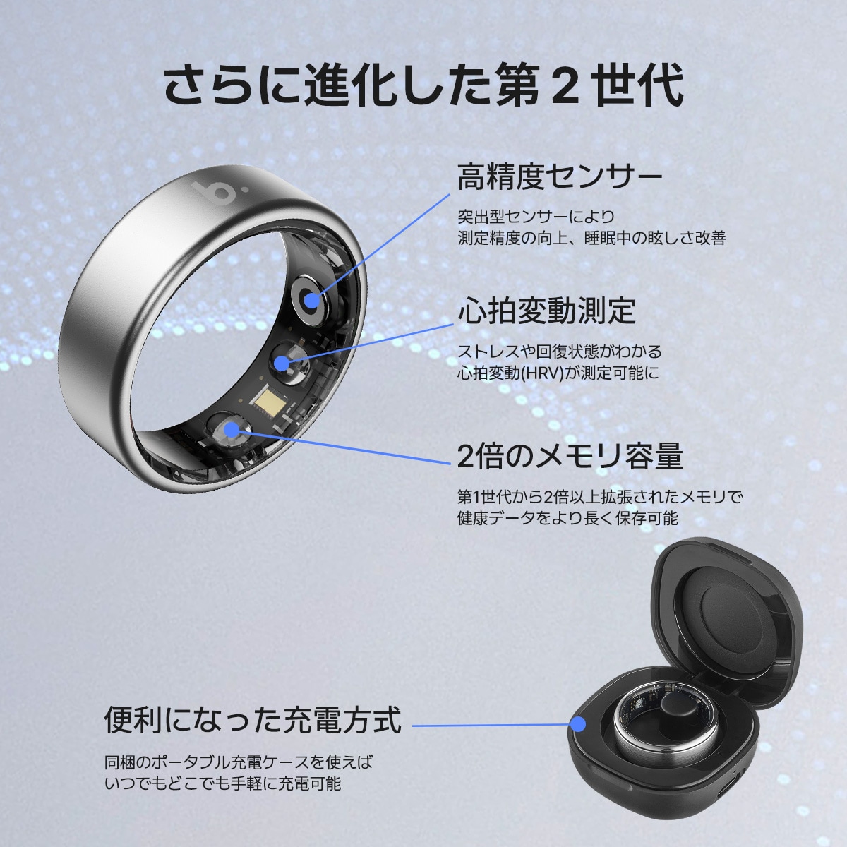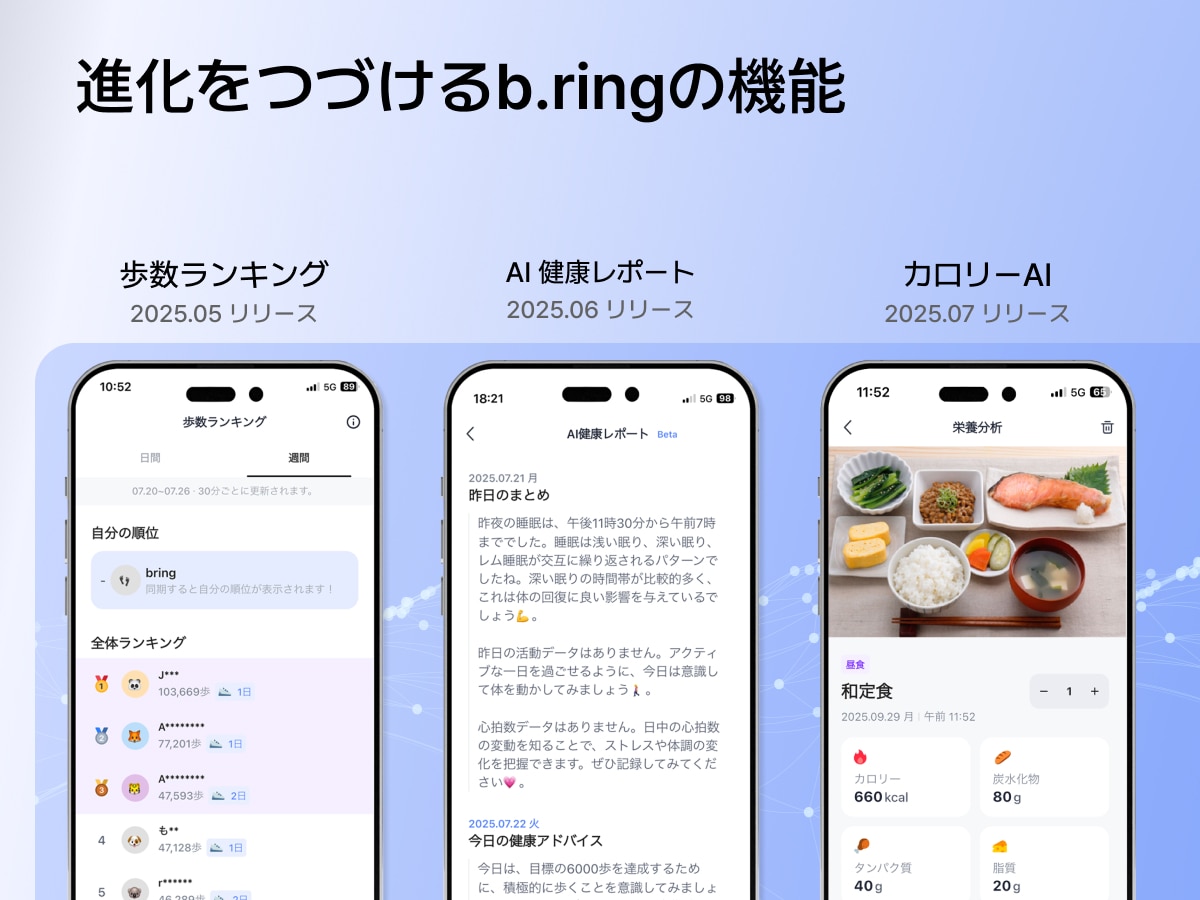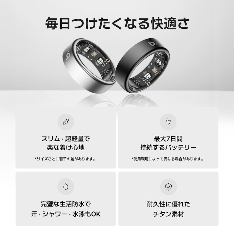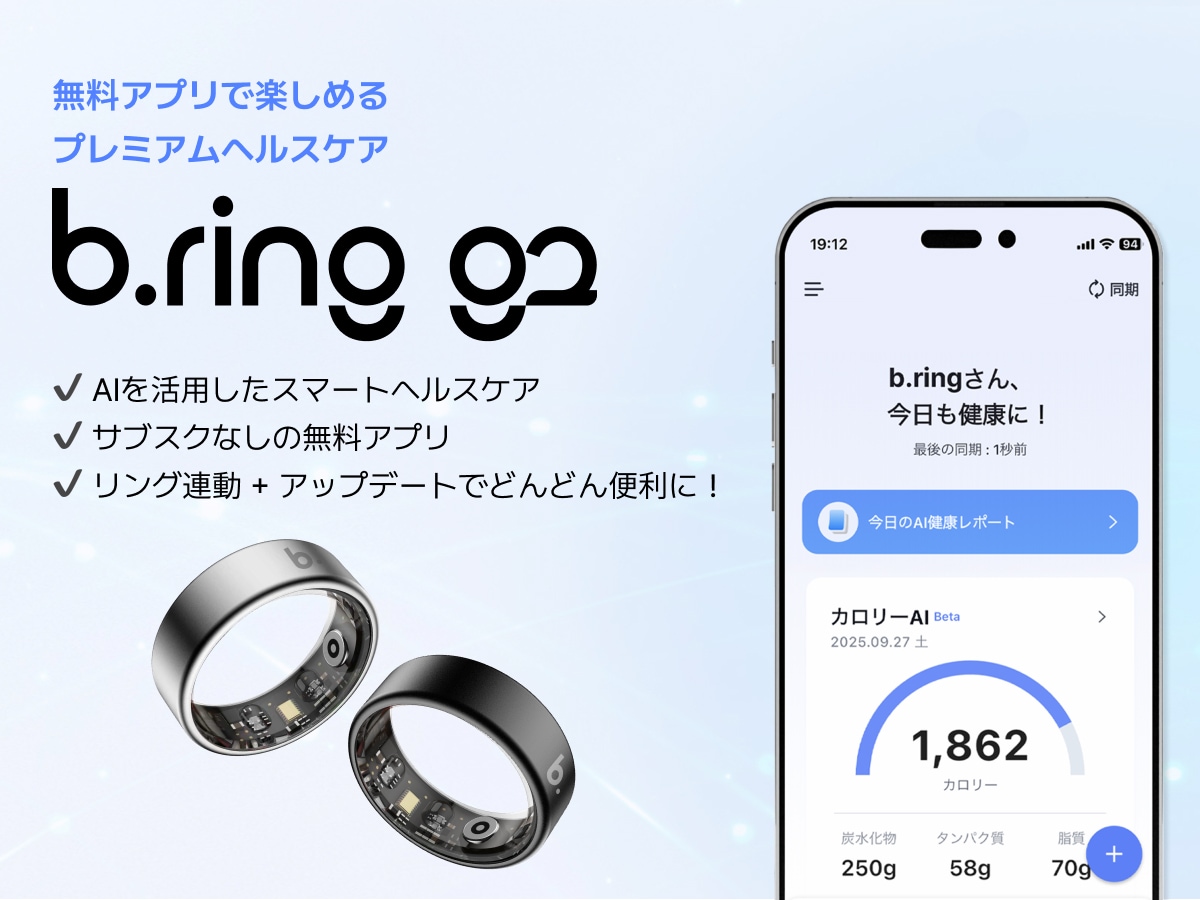 スマートリング「b.ring」は、指輪型のウェアラブルデバイスとしてスマートフォンと連携し、健康管理機能を備えております。