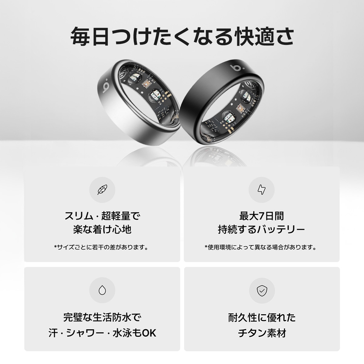 ●付属品/セット内容:リング本体 / 専用ケース充電器 / USB AtoCケーブル/取扱説明書(QRコード)