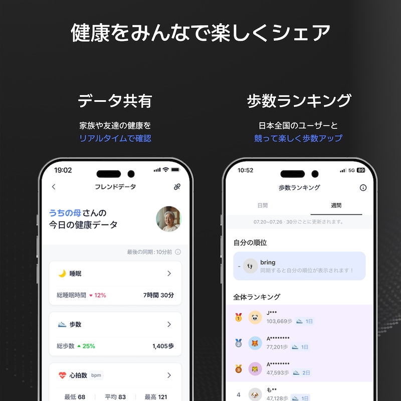 計測したデータを専用アプリで手軽にチェックして健康管理。iPhone・Androidの両方に対応。2025年6月から新たにAppleヘルスケア・GoogleFitとの連携も可能になりました。