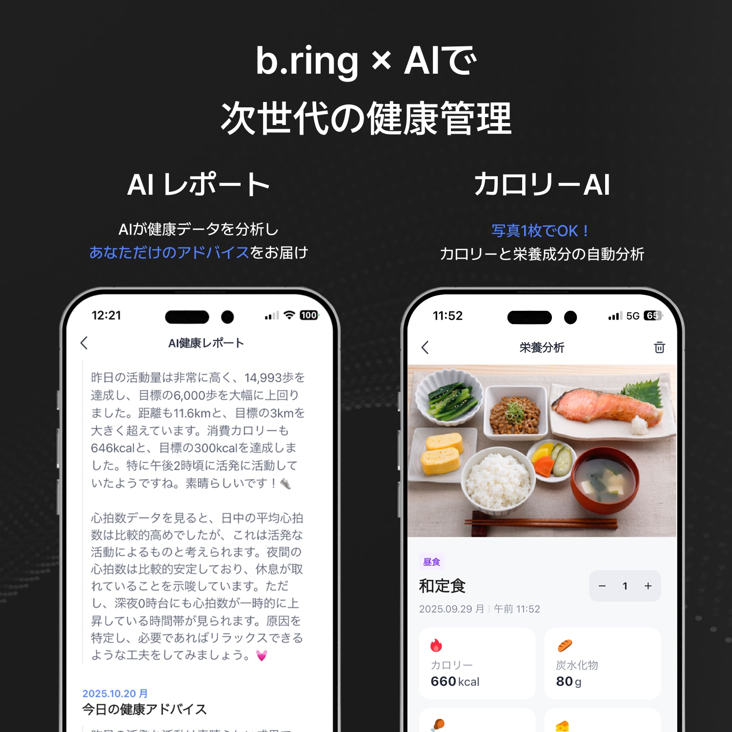 スマートリング「b.ring」は、指輪型のウェアラブルデバイスとしてスマートフォンと連携し、健康管理機能を備えております。
