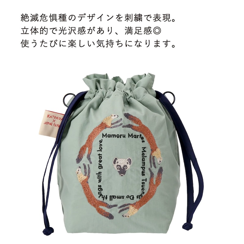 【第2弾】たっぷりサイズの刺繍で生きものたちを表現した2WAY巾着ポーチ
