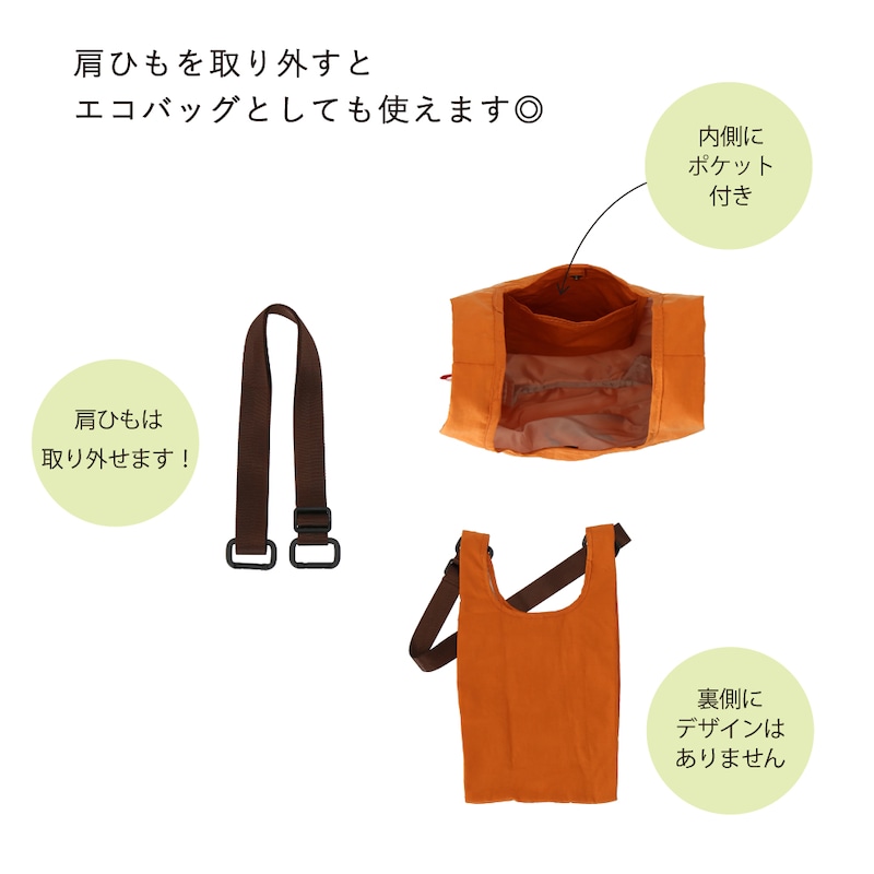 ●肩ひもを付けてショルダーバッグとして、取り外して手提げバッグとしてお使いいただけます