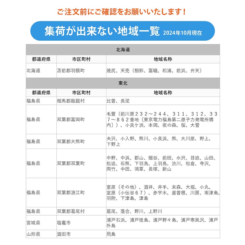 ご実家のためにご注文されるなど、ご注文者と集荷先が異なることも問題ございません。ご注文前に、当サービスをご利用いただくことができる地域か、商品ページの一覧からご確認ください。
