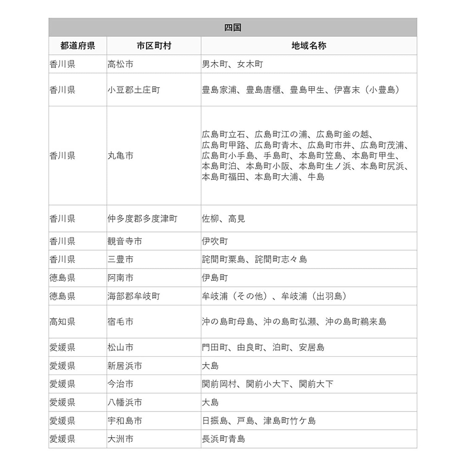 | 新潟県 | 岩船郡粟島浦村 | 粟島浦村一円 |