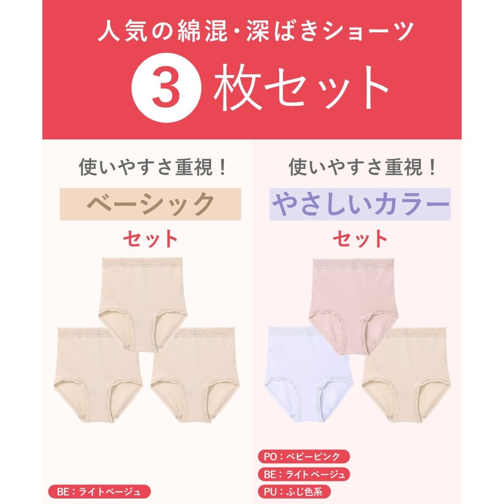 やわらかコットンショーツ3色セット