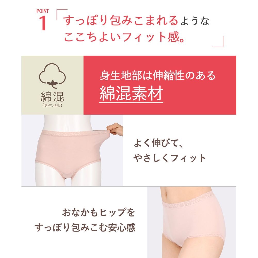 身生地部は伸縮性があり、ふんわりやわらかな肌ざわりの綿混素材