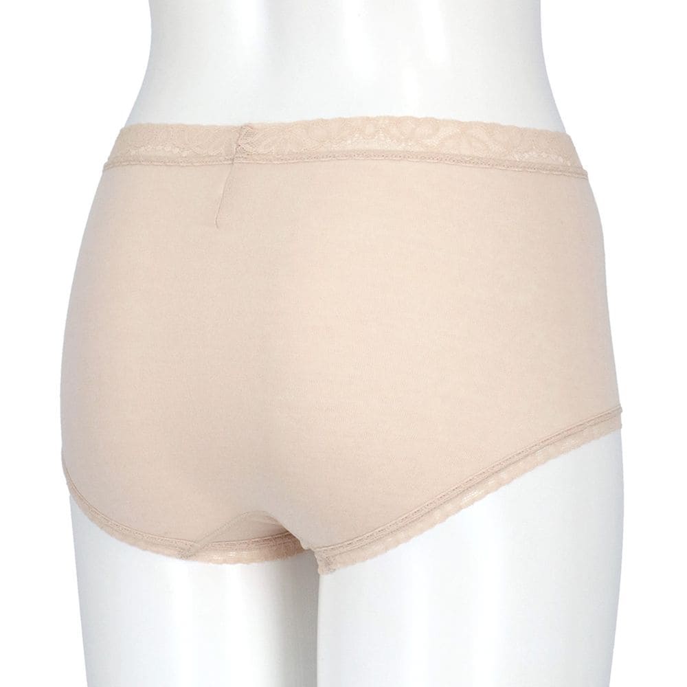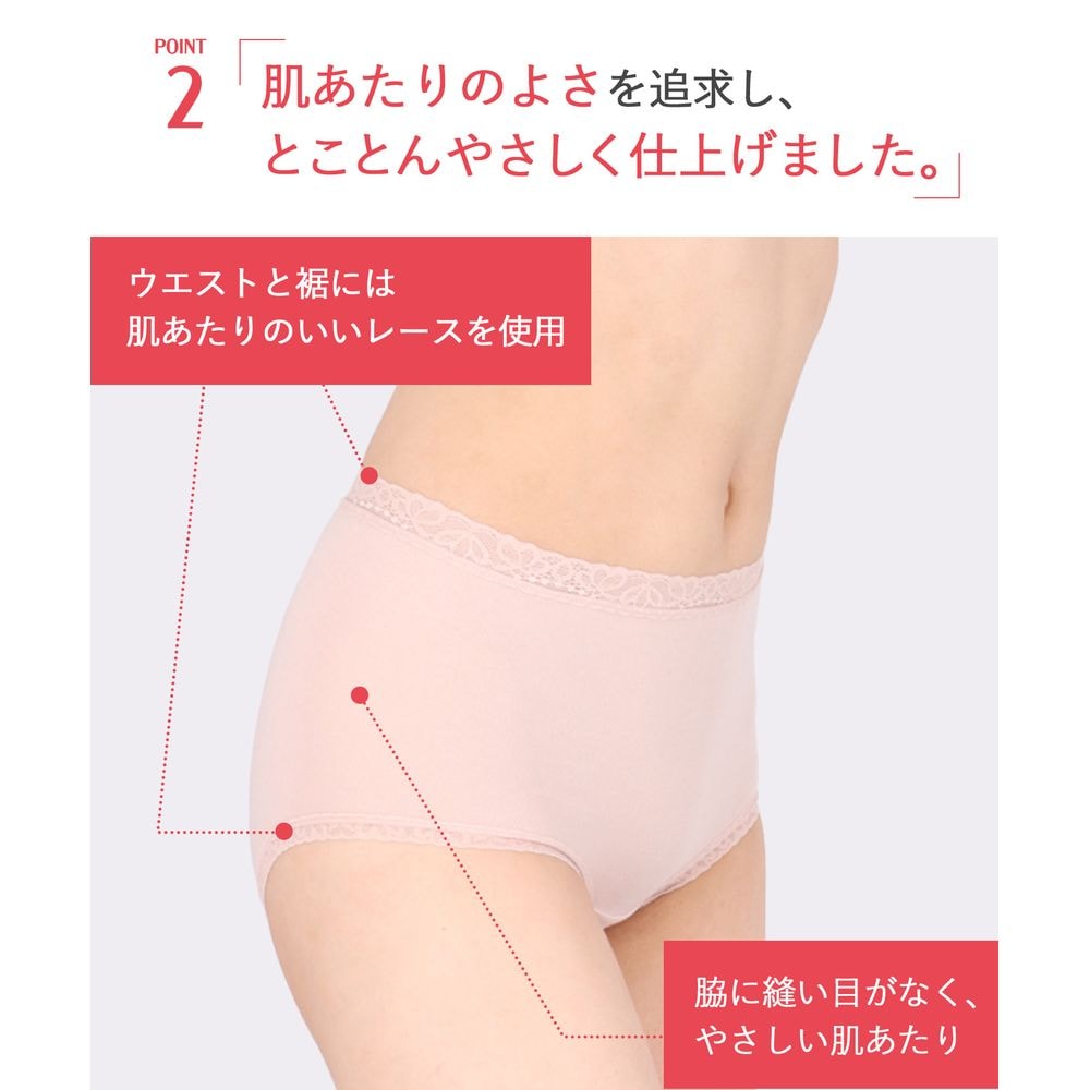 脇に縫い目がないフラットな仕様、ウエストと裾は肌あたりのよいレースを使用