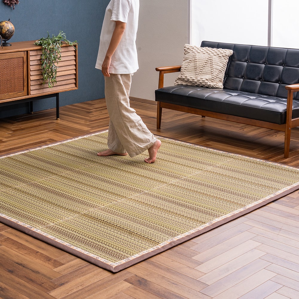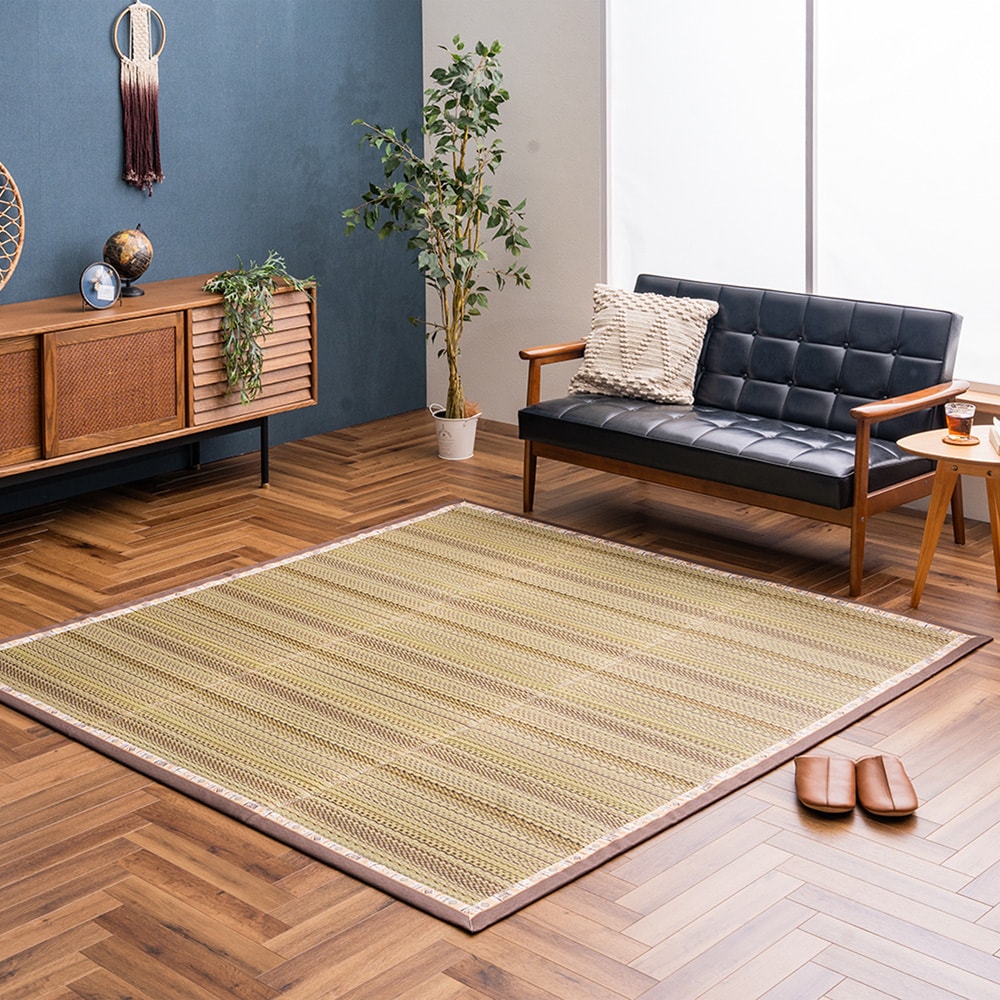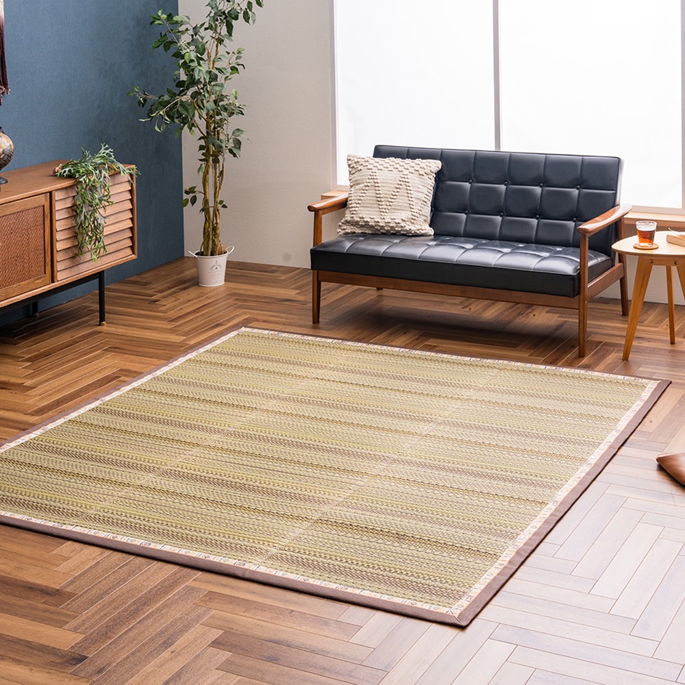 ストライプデザインの撥水・防ダニい草ラグ