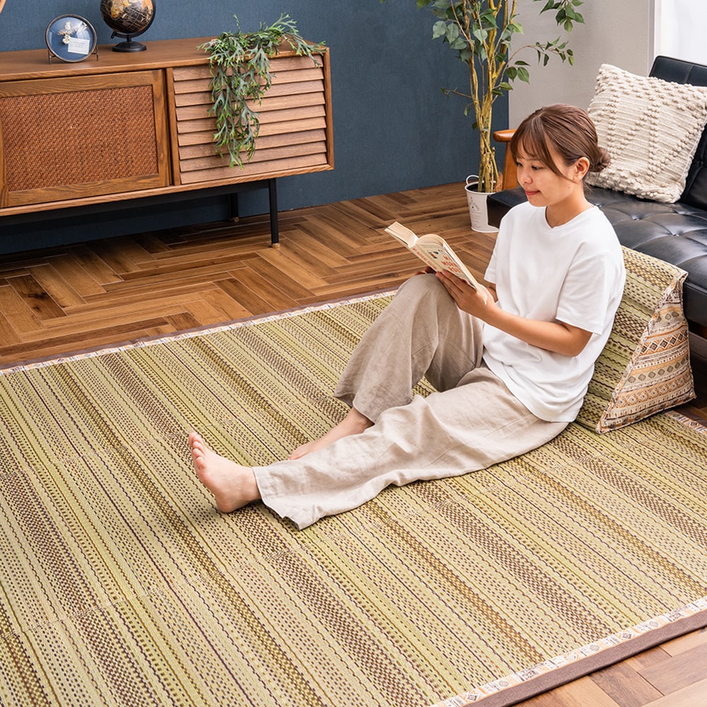 ●素材/表面:い草、裏面:ポリエステル100%(滑り止め付き)、中身:約5mm厚のウレタンフォーム