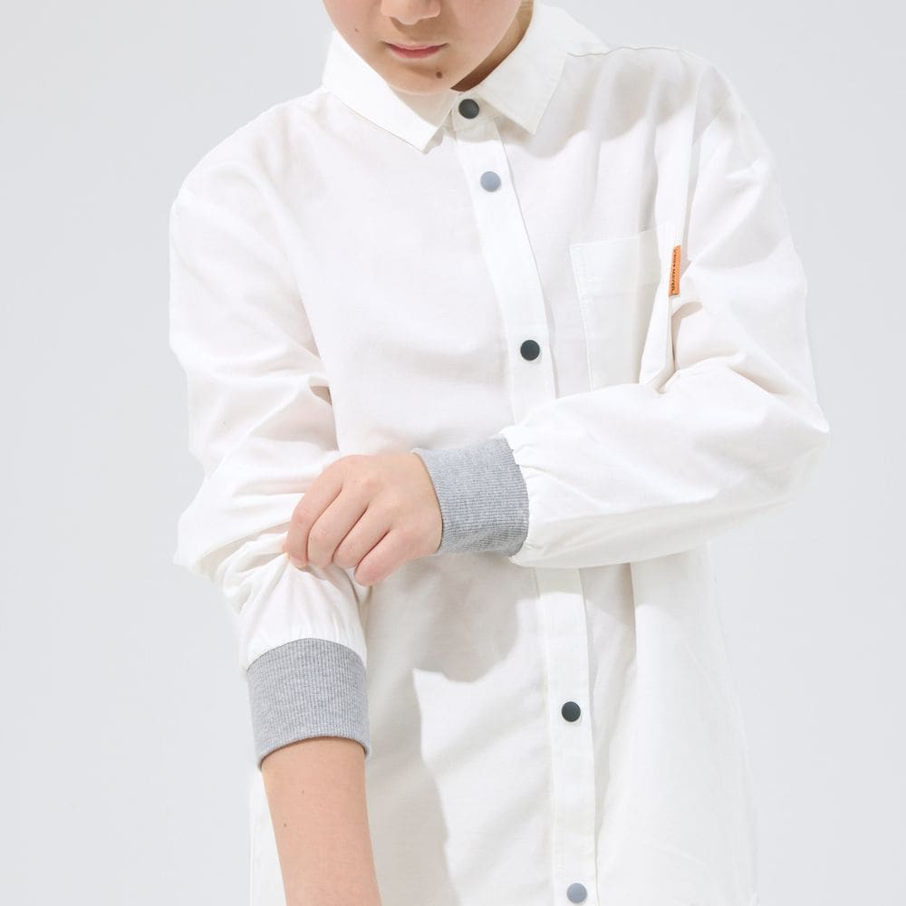 ・手洗い時に捲り上げにくいカフス部分はリブ仕様にし、スムーズに腕まくりができるよう工夫しました