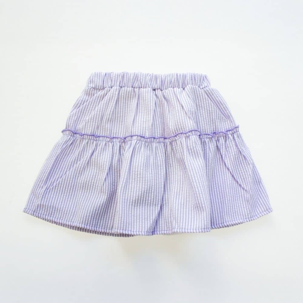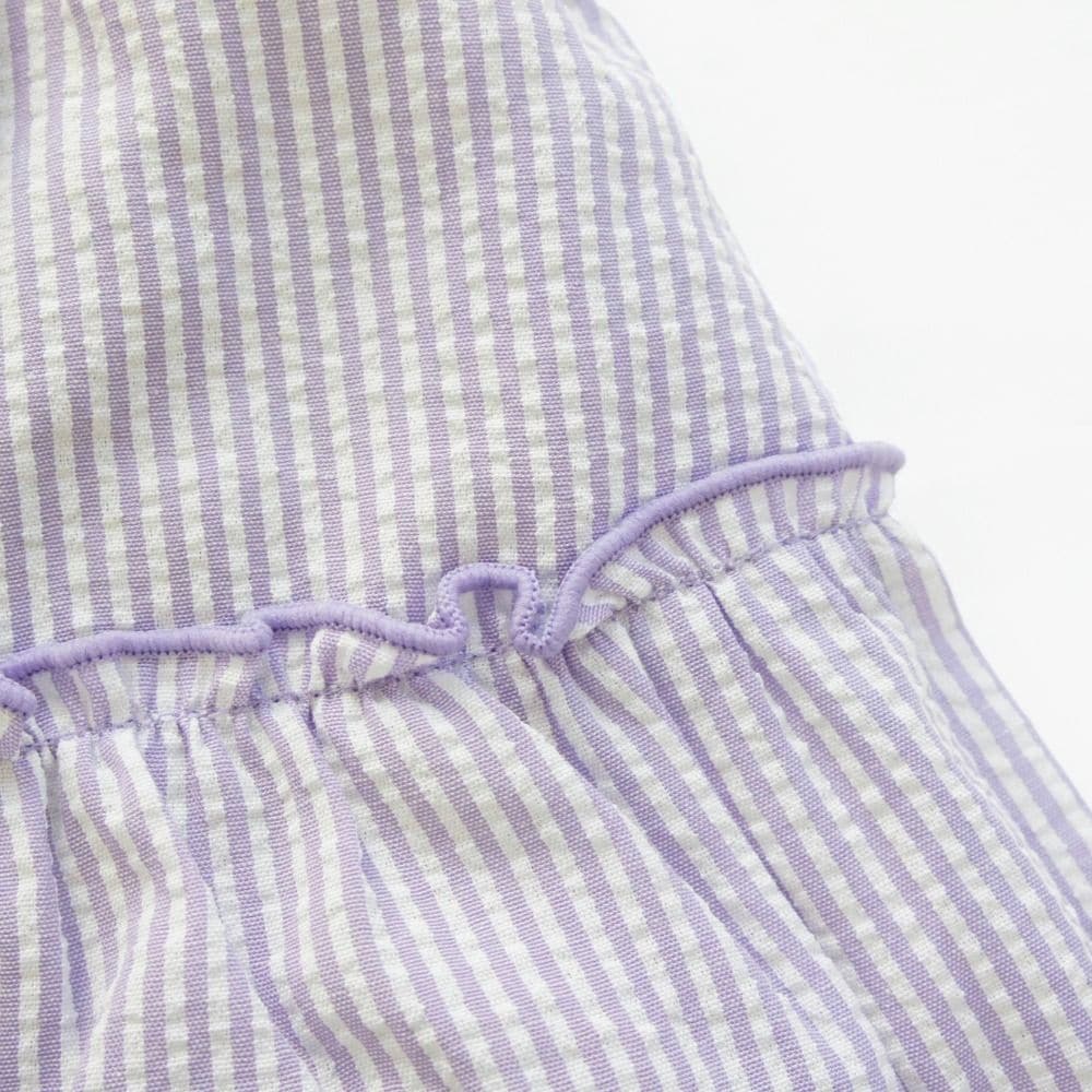 ・細ストライプとふわっと広がるシルエットがガーリーでかわいい