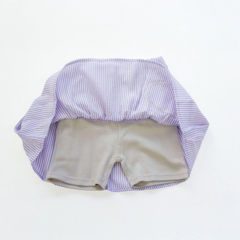 ●本体:<織物>ポリエステル62%、綿26%、再生繊維12%インナーパンツ部分:<カットソー>ポリエステル65%、綿35%(スムース)