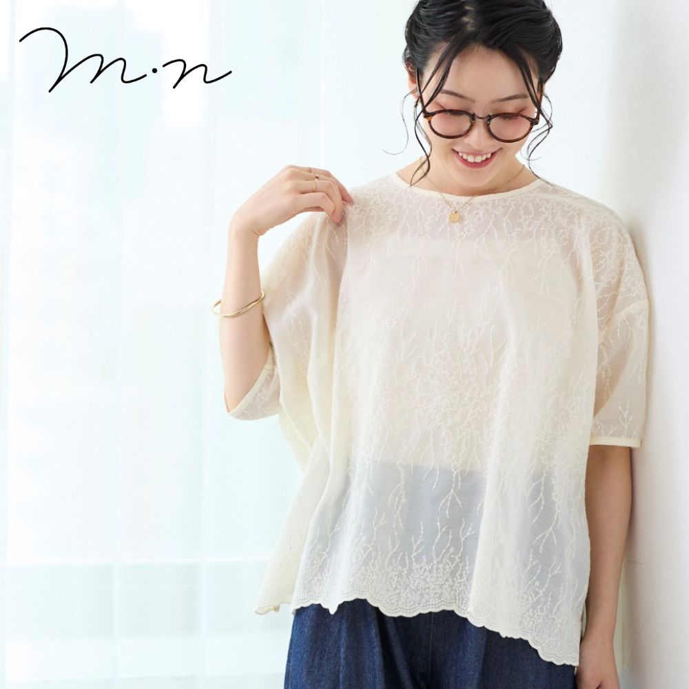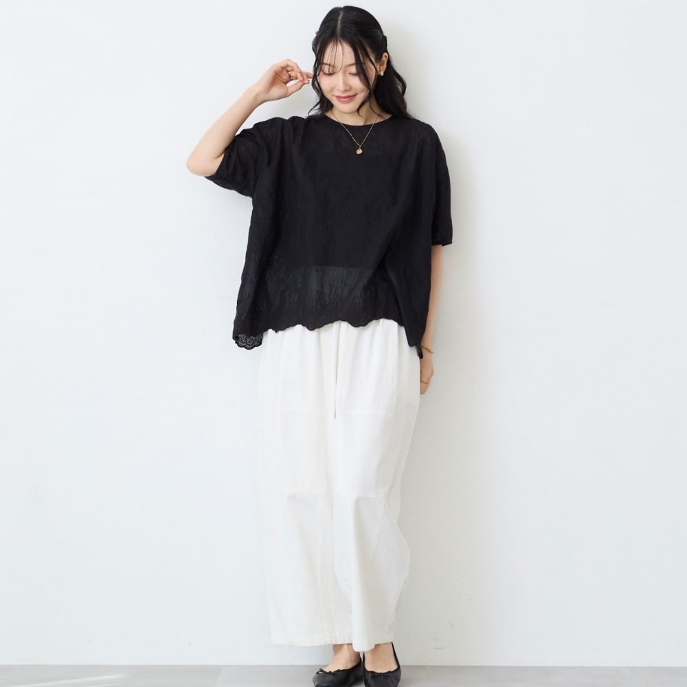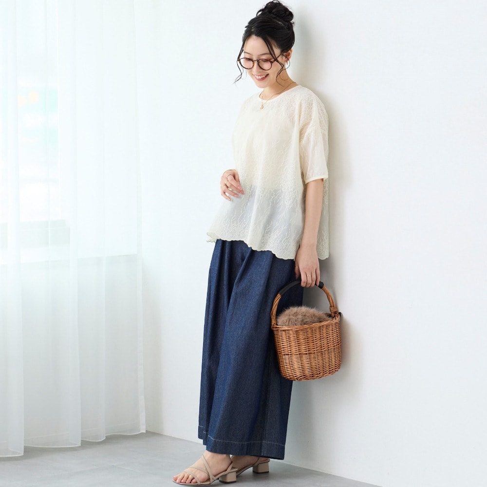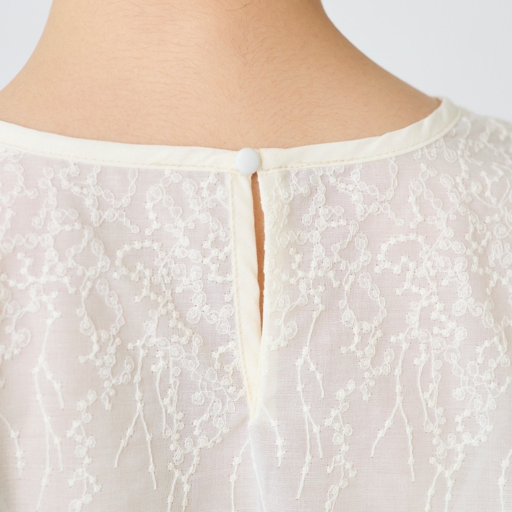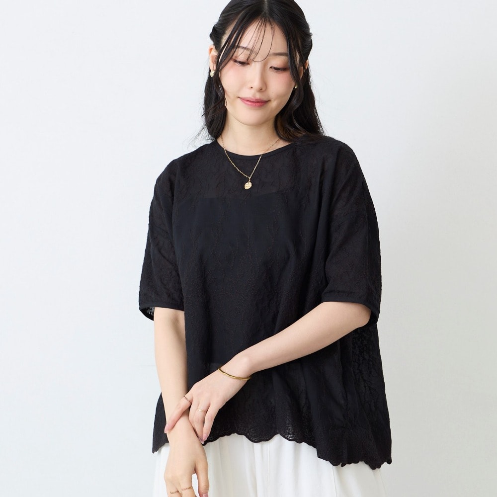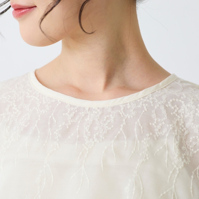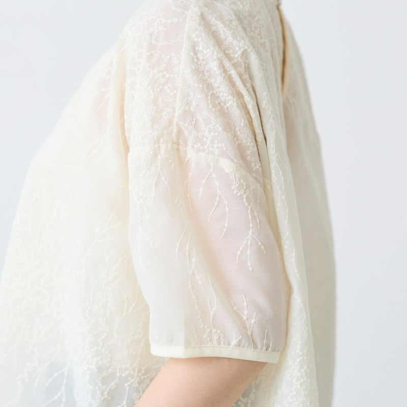 贅沢な総柄刺繍とスカラップが彩る大人ブラウス