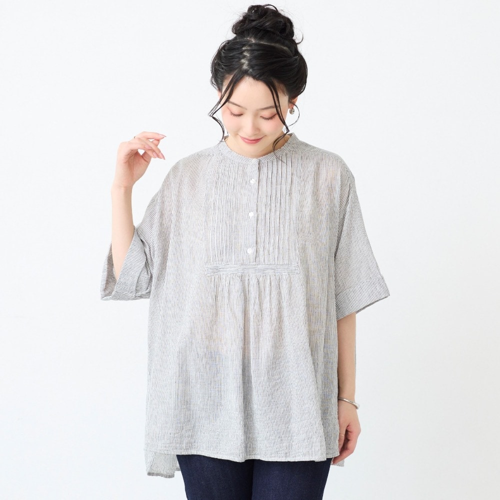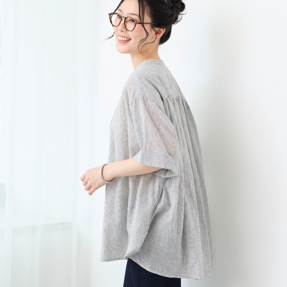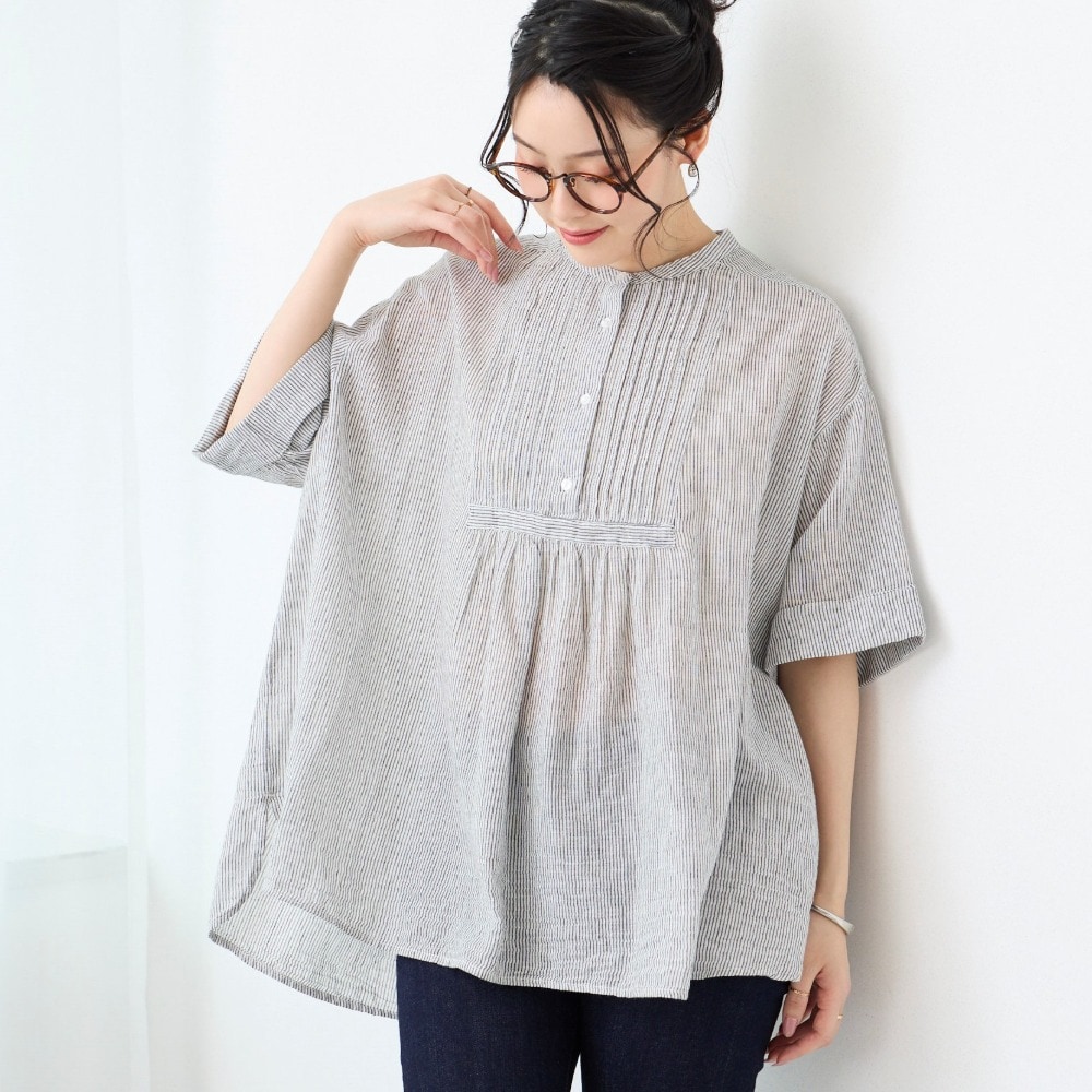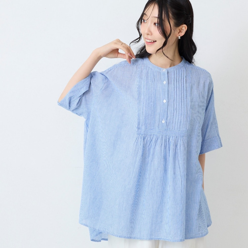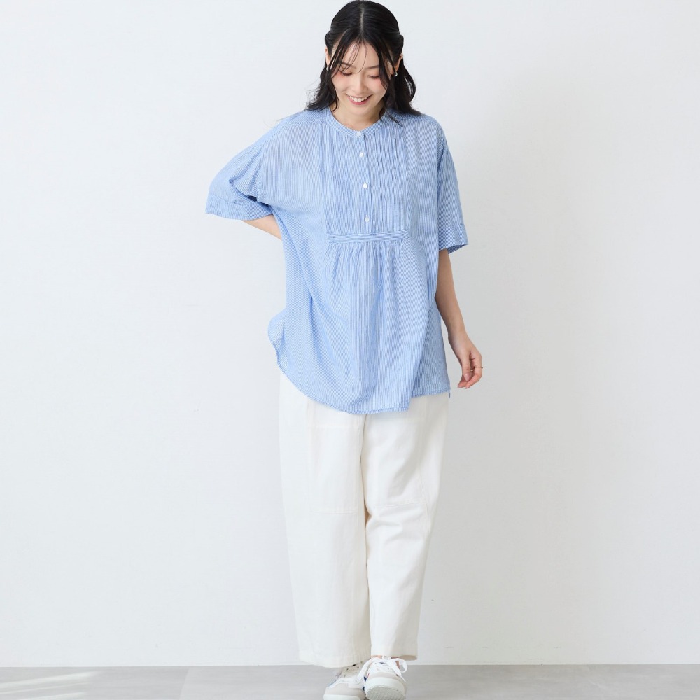 贅沢ピンタックと5分袖で叶える大人の細見えスタイル