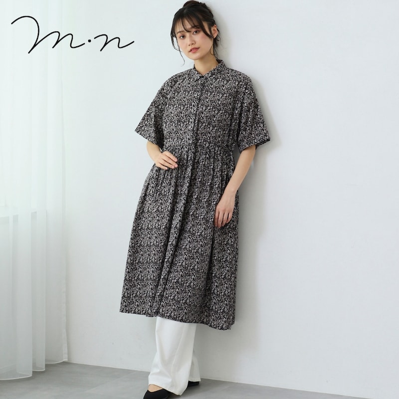 ブラウジング可能なプチカラーが上品な総柄ワンピース