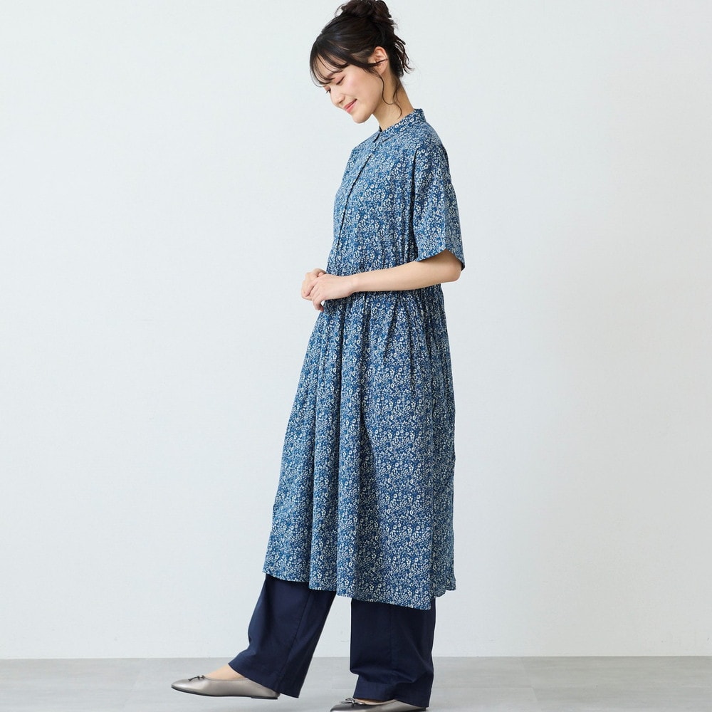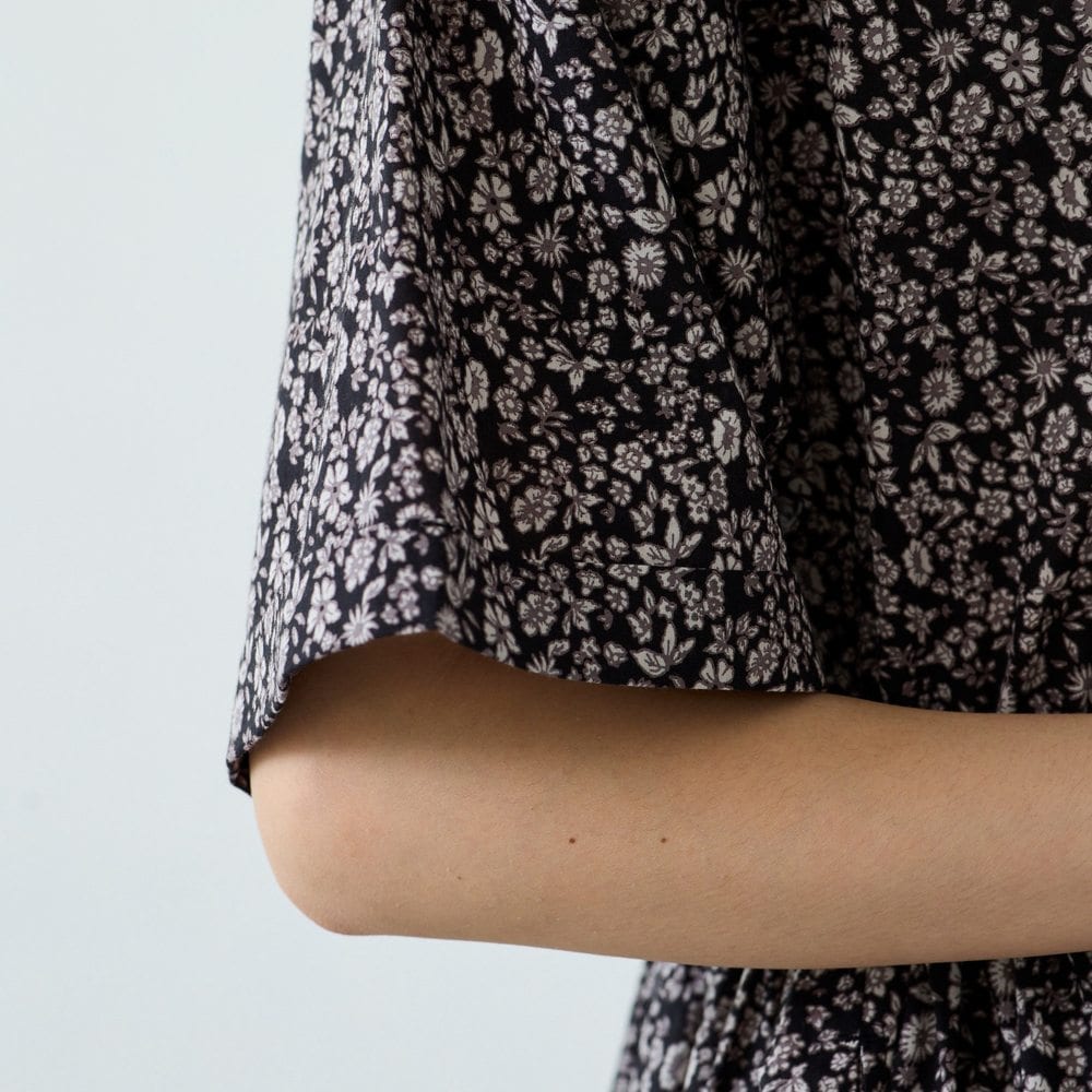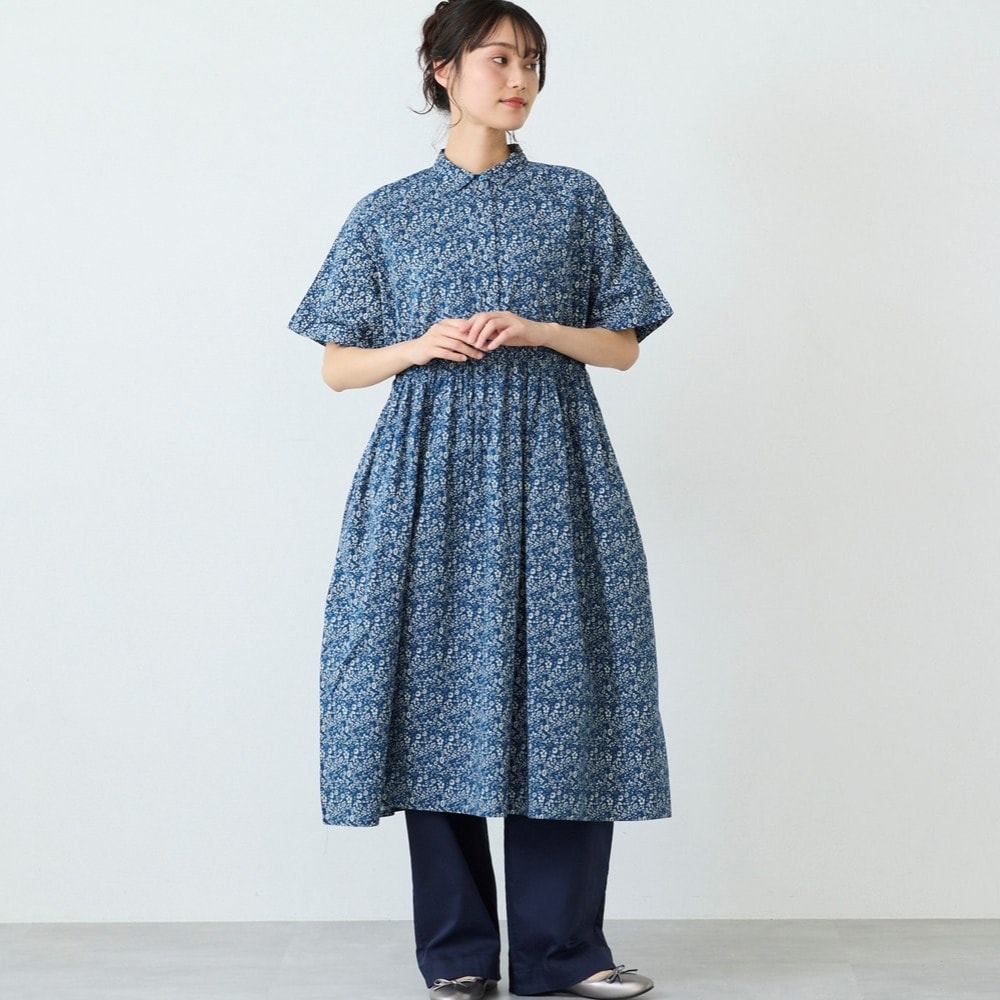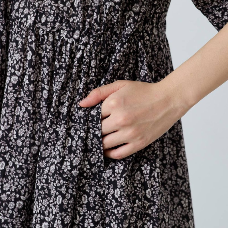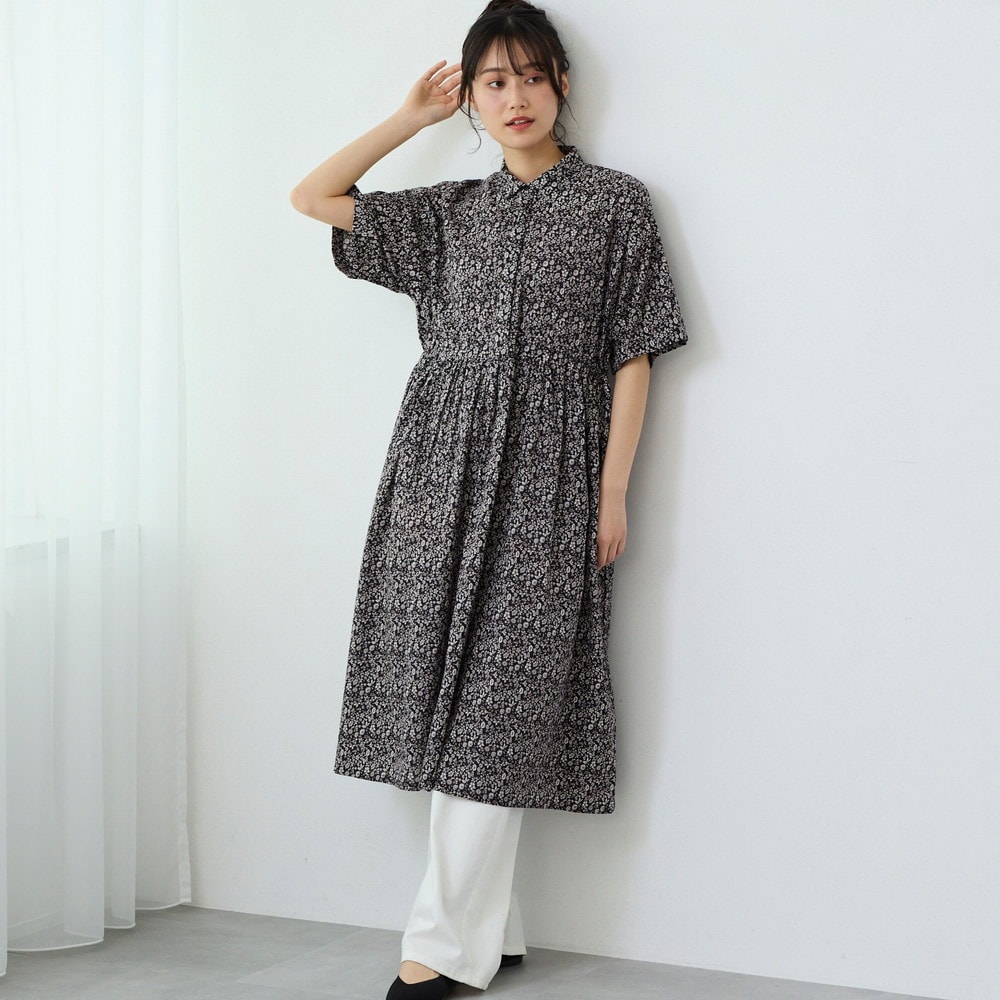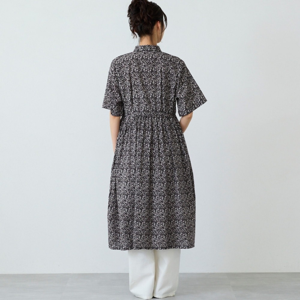 小花柄プリントのブラウジングワンピース