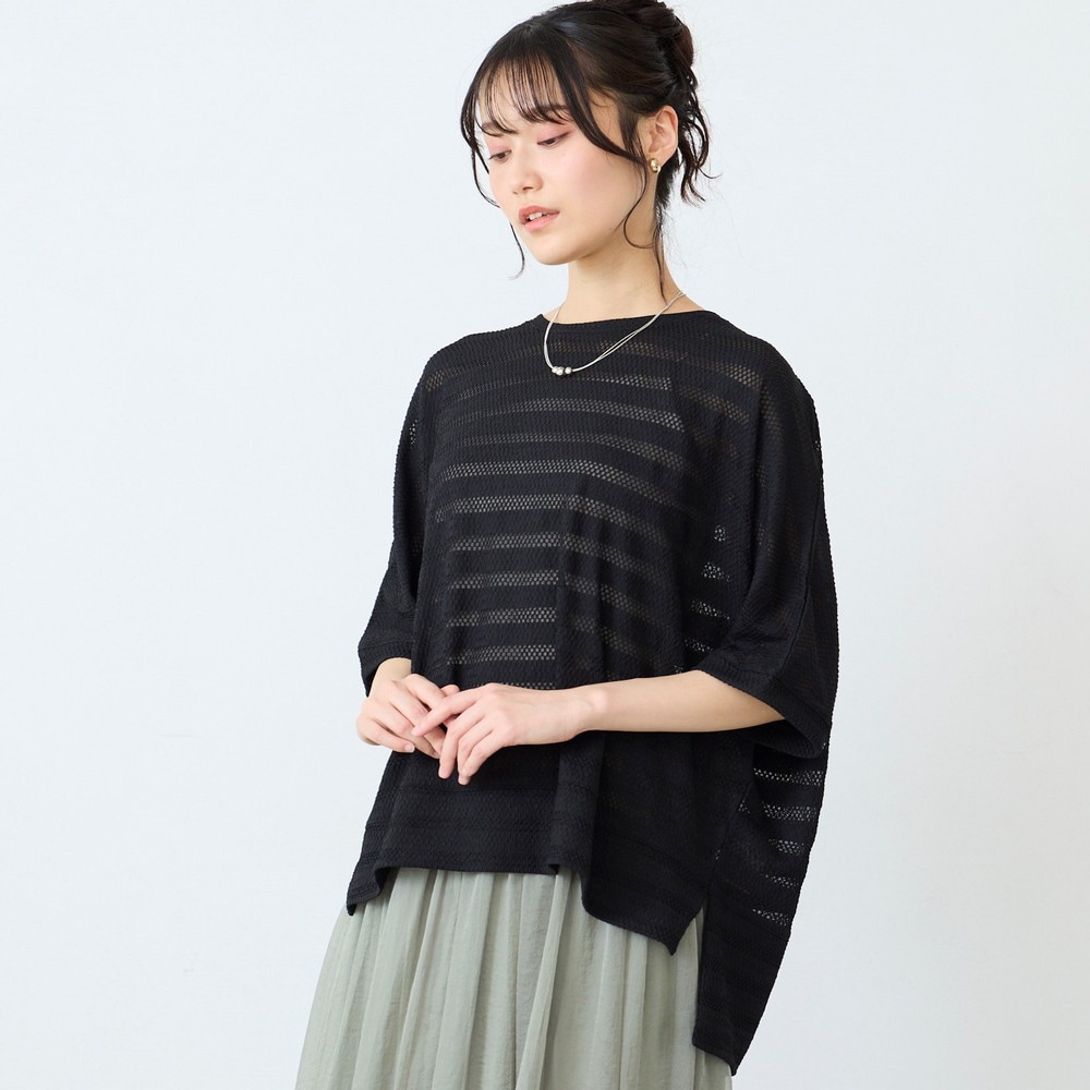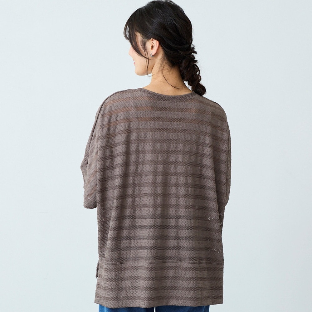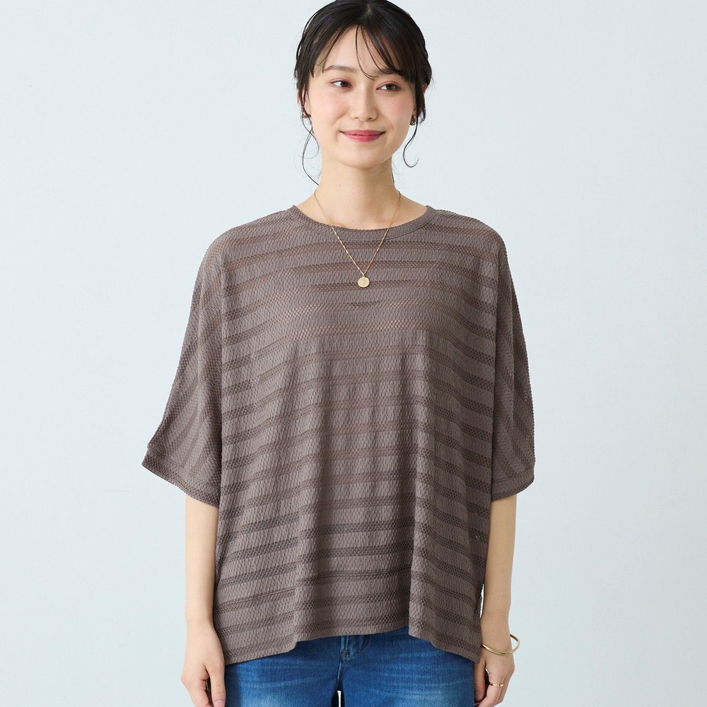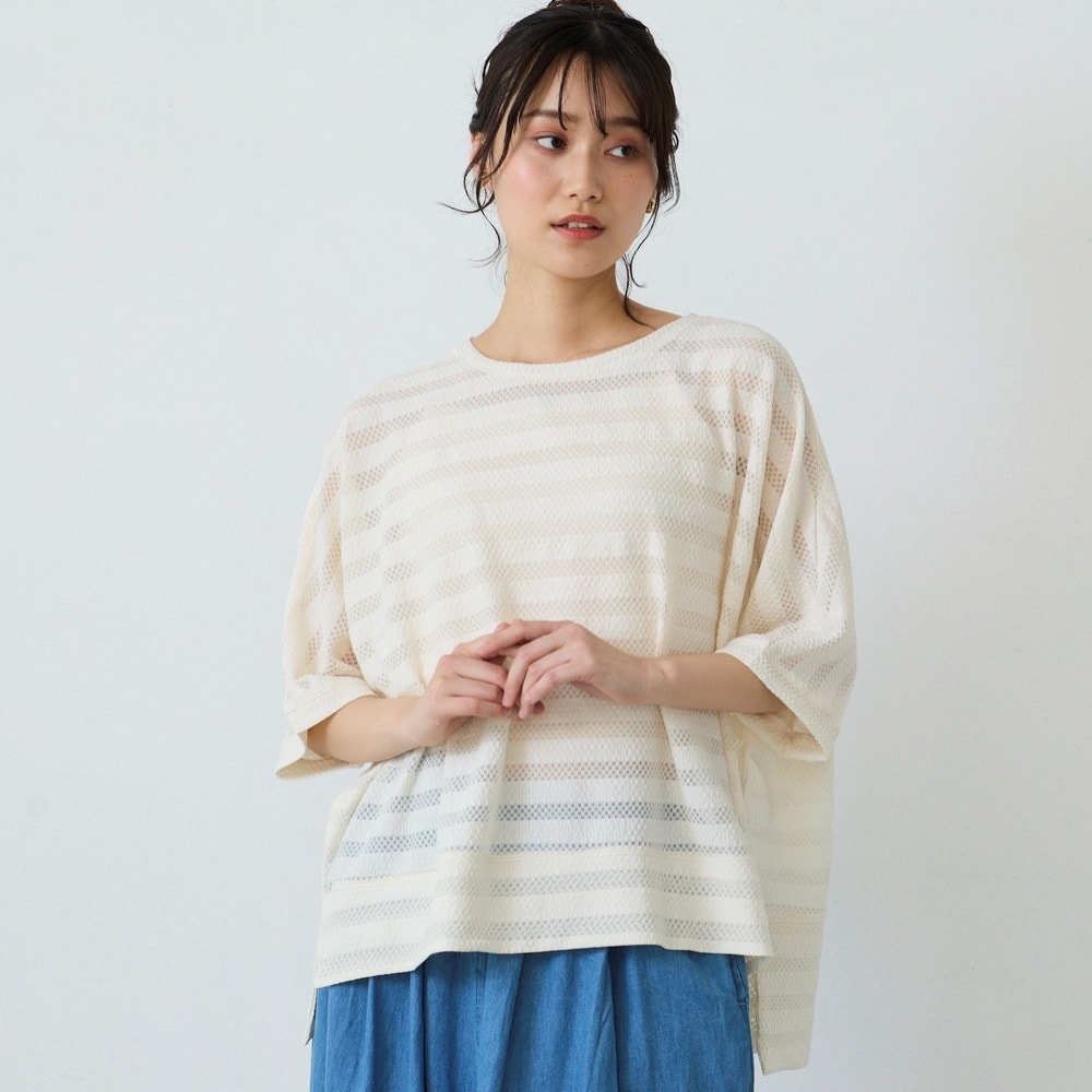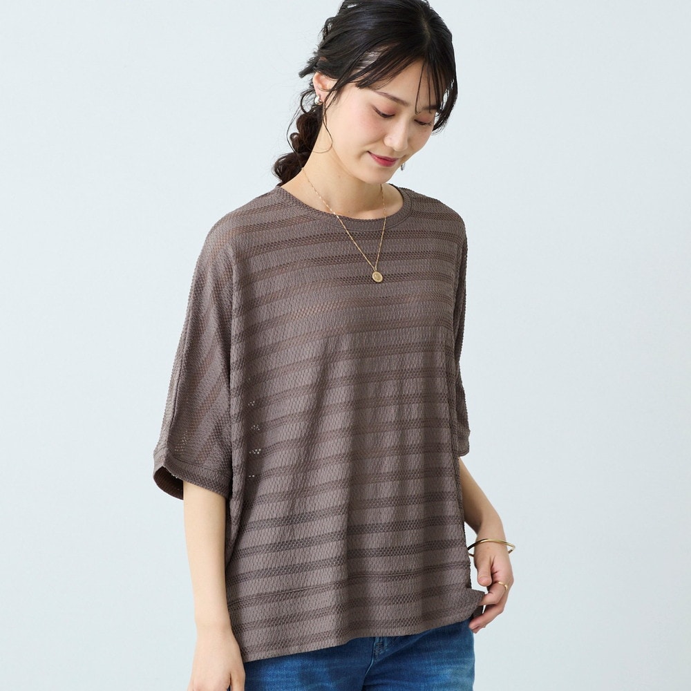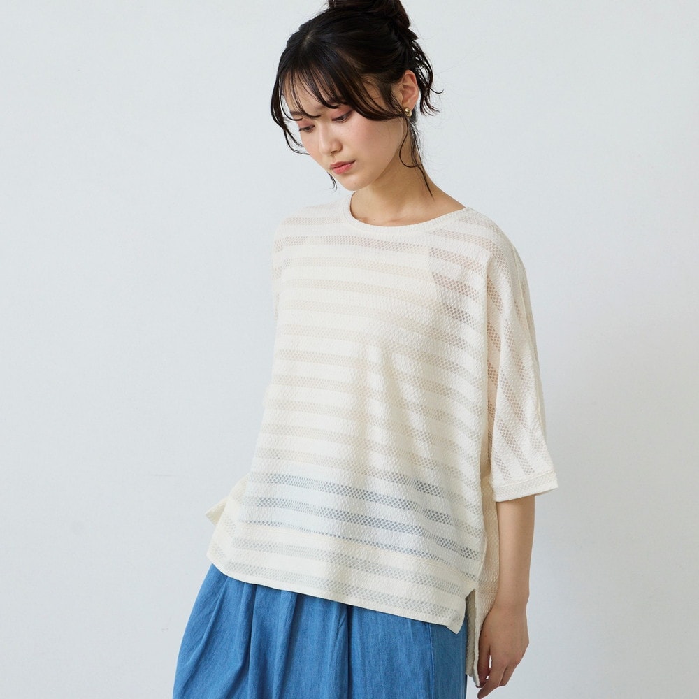 透かし柄ボーダーで軽やかに。涼しげドルマンTシャツ