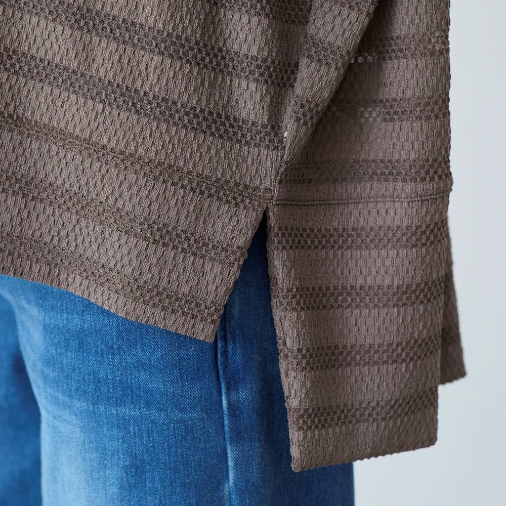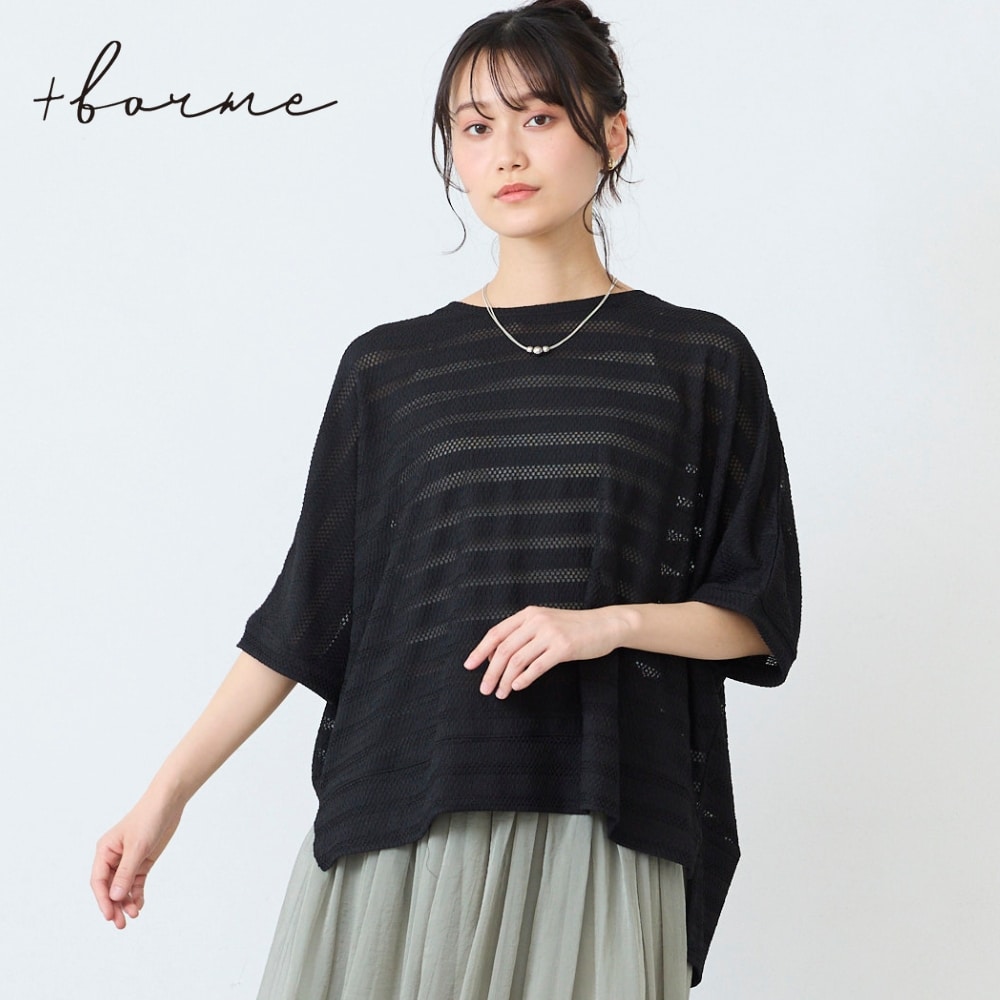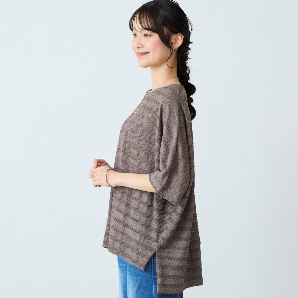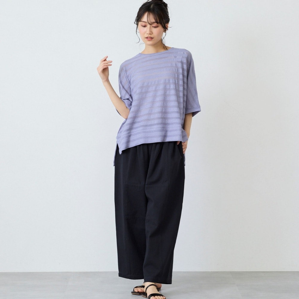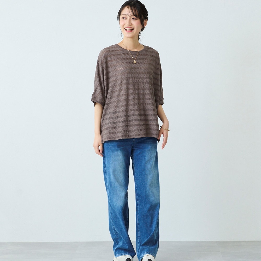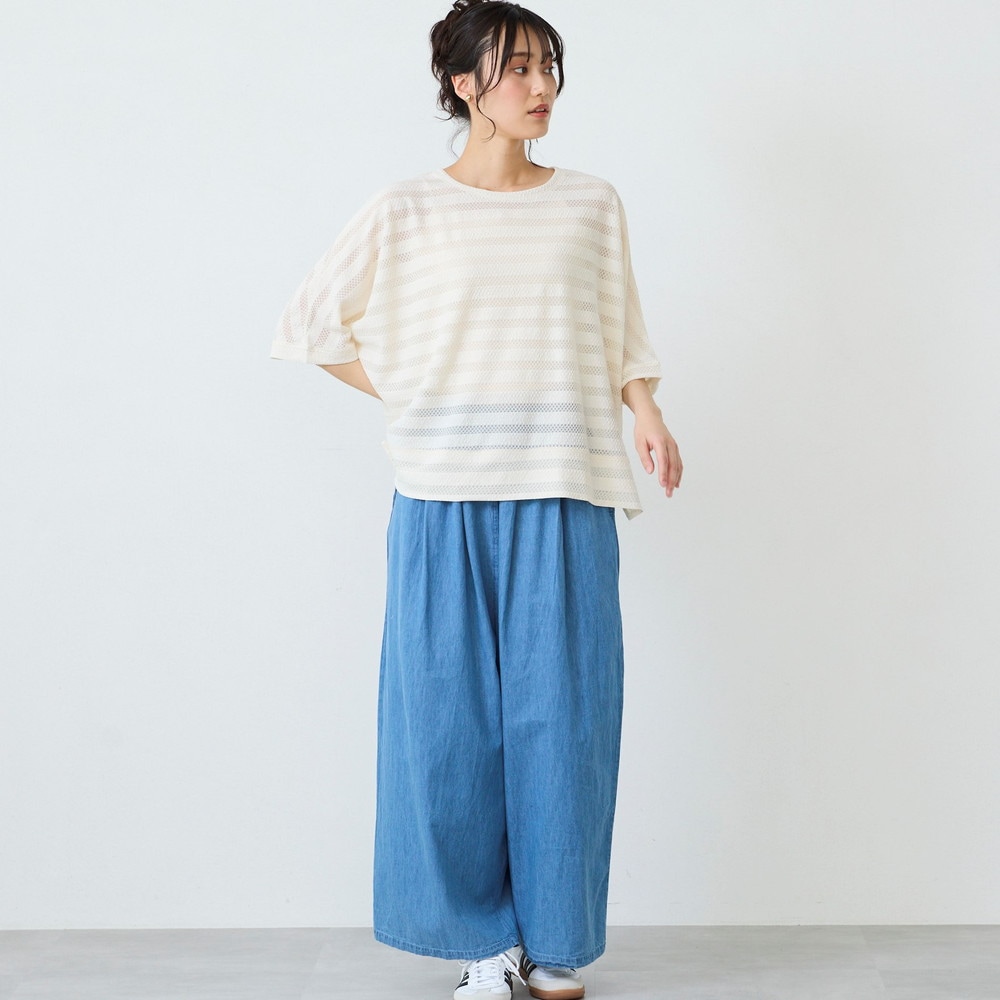 透かし柄ボーダーで軽やかに。涼しげドルマンTシャツ