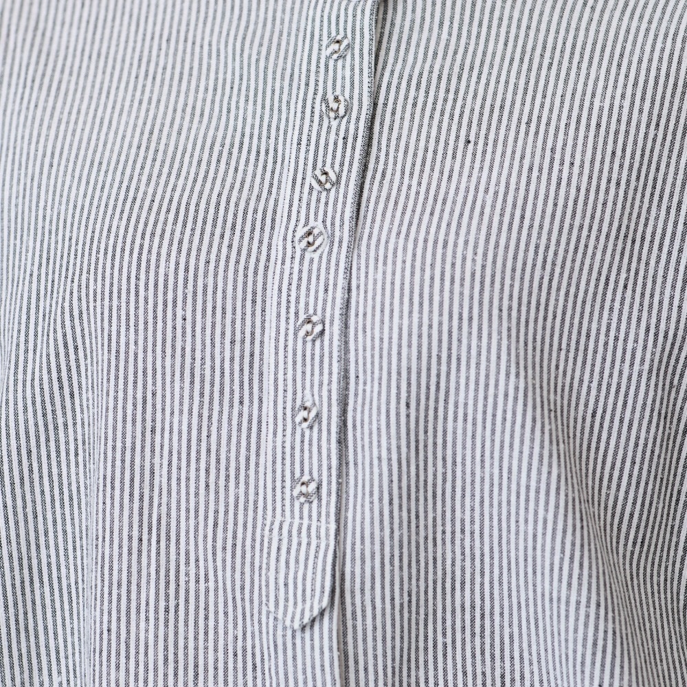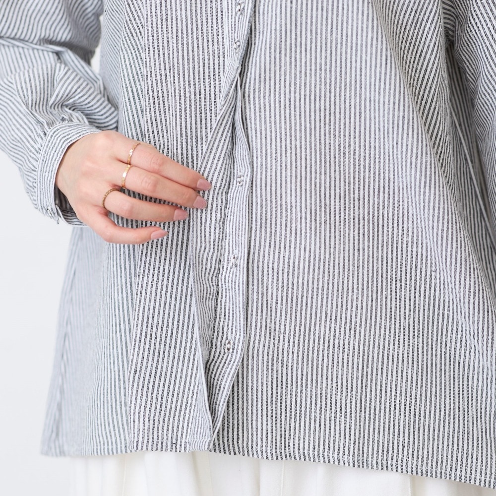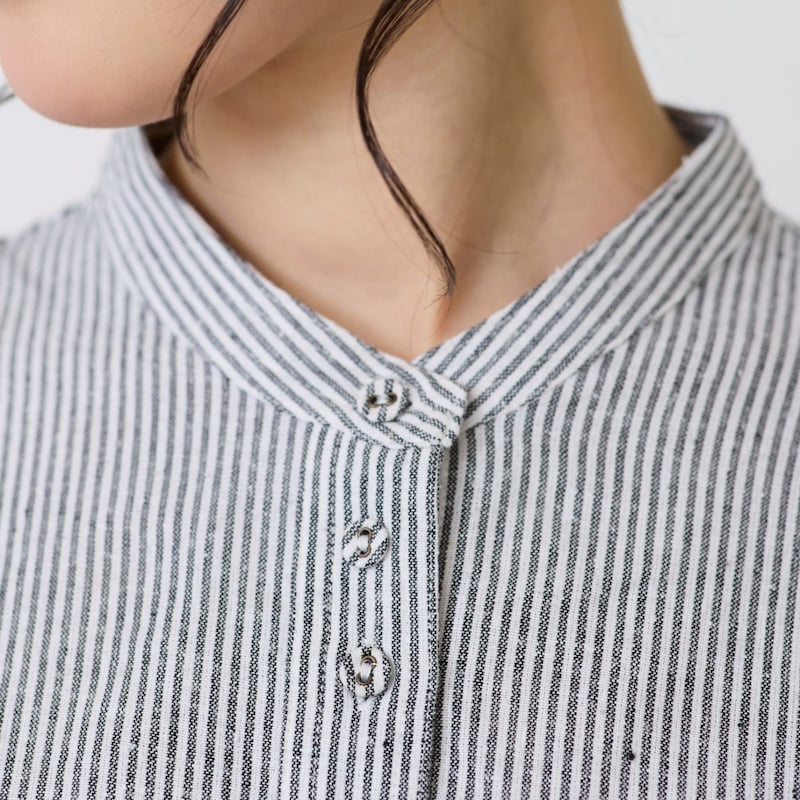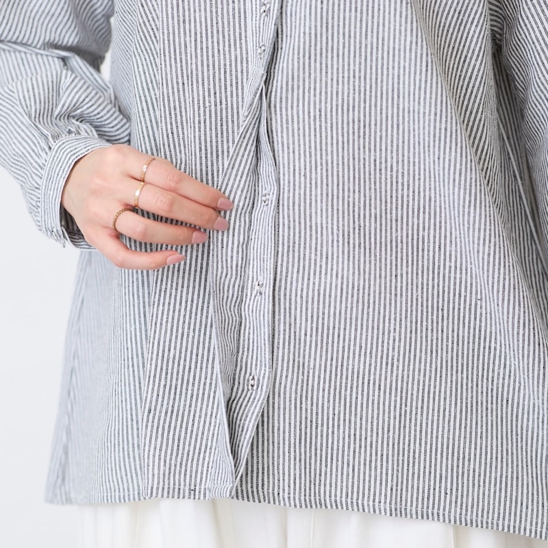 Aラインのデザインなのでおなか回りがゆったりしています。クルミボタンが可愛いです。
