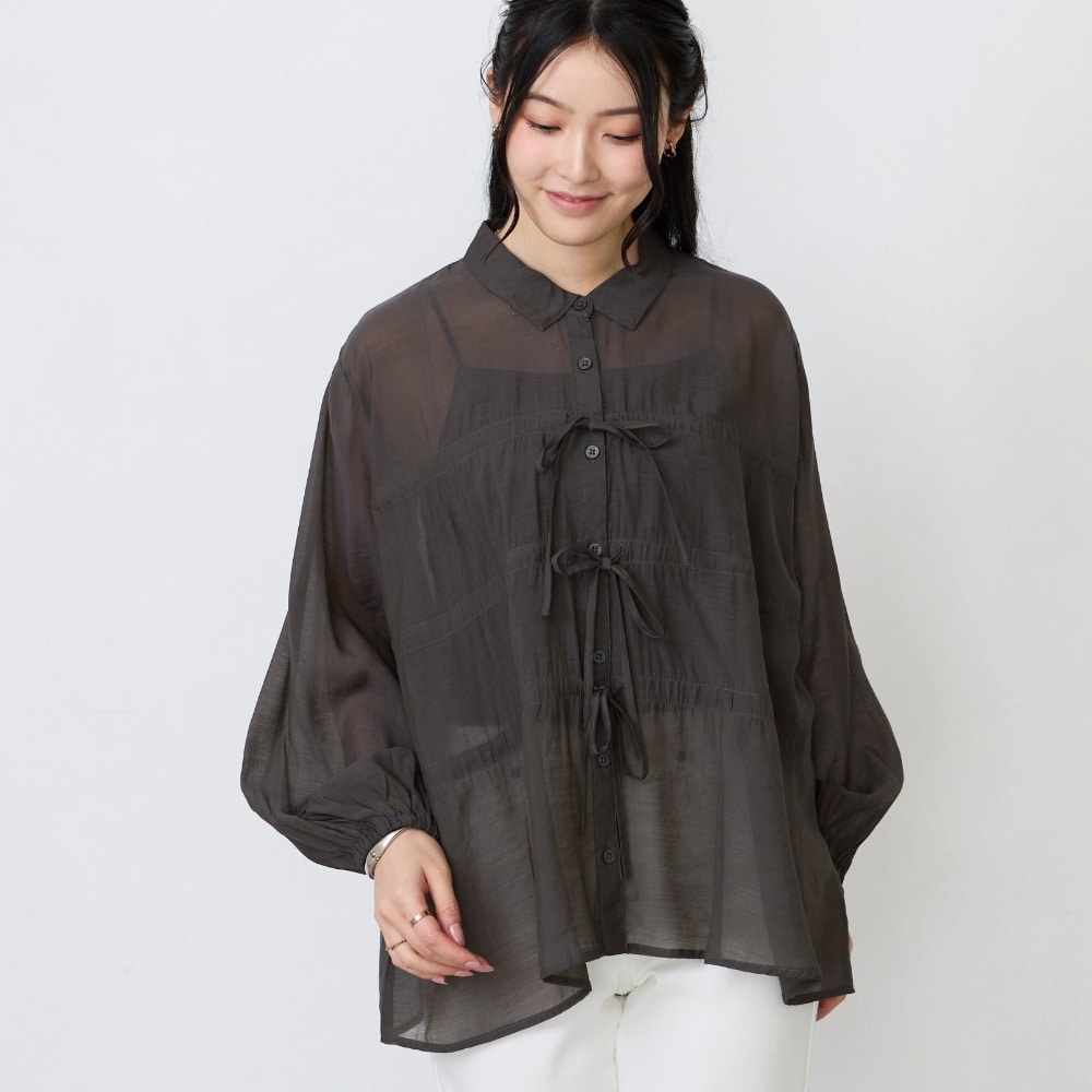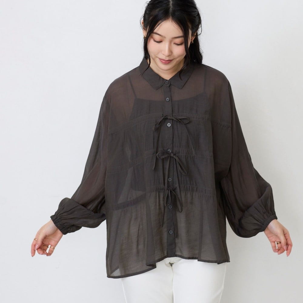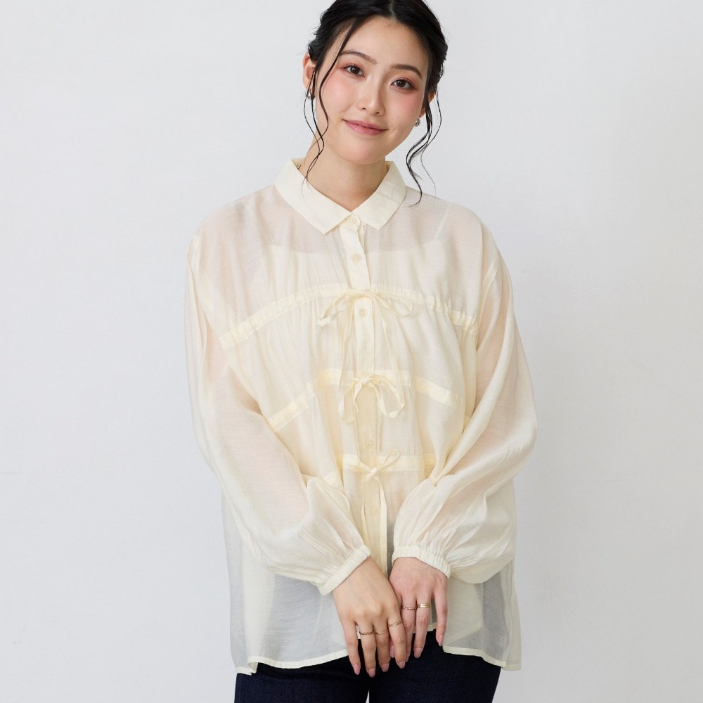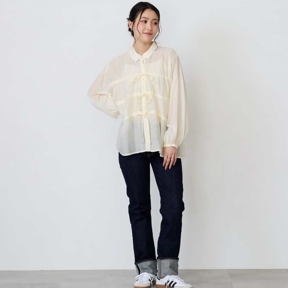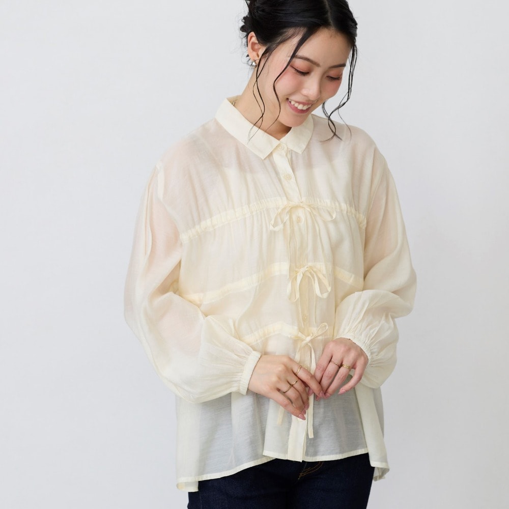 ドロストリボンでシルエットを変える旬の透け感ブラウス