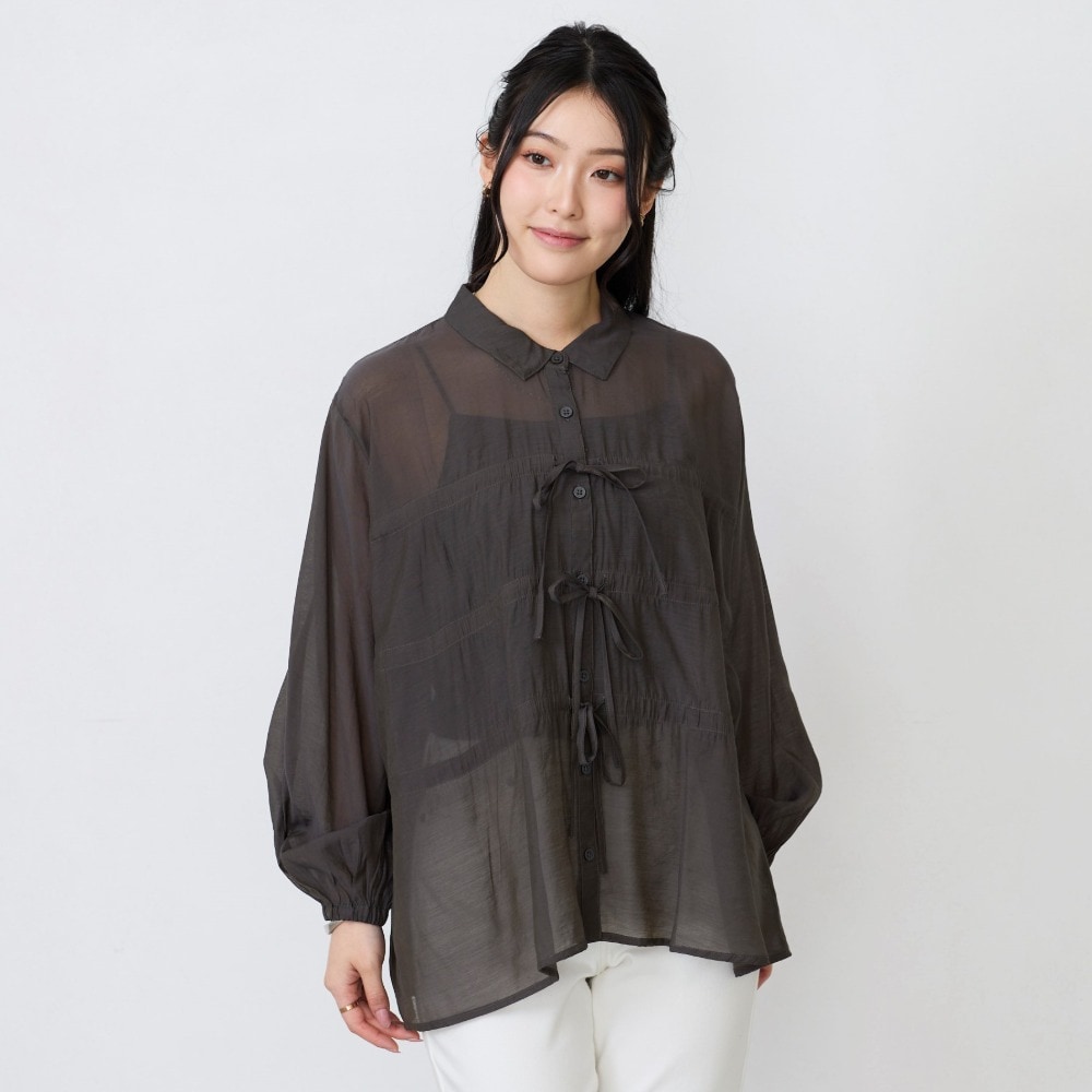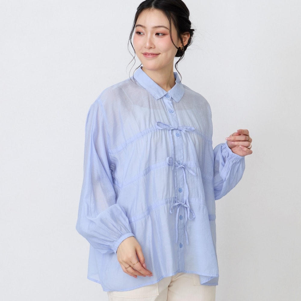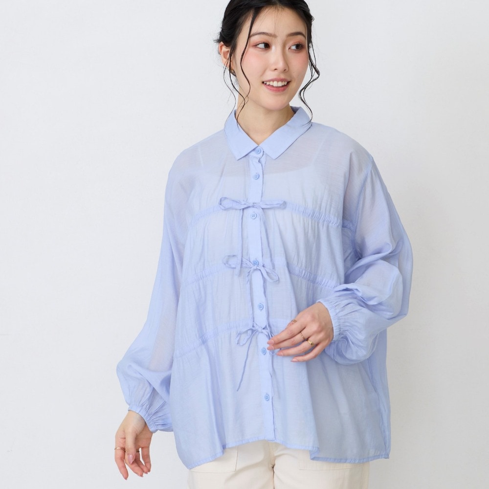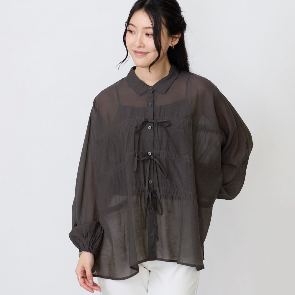 ドロストリボンでシルエットを変える旬の透け感ブラウス