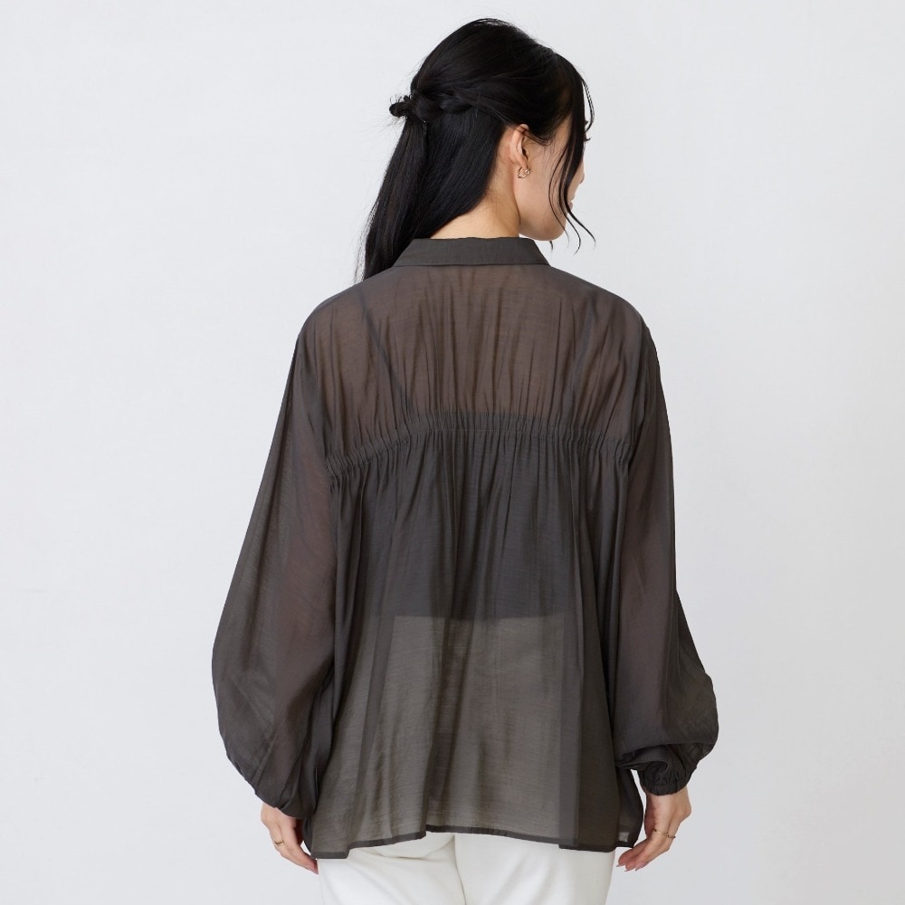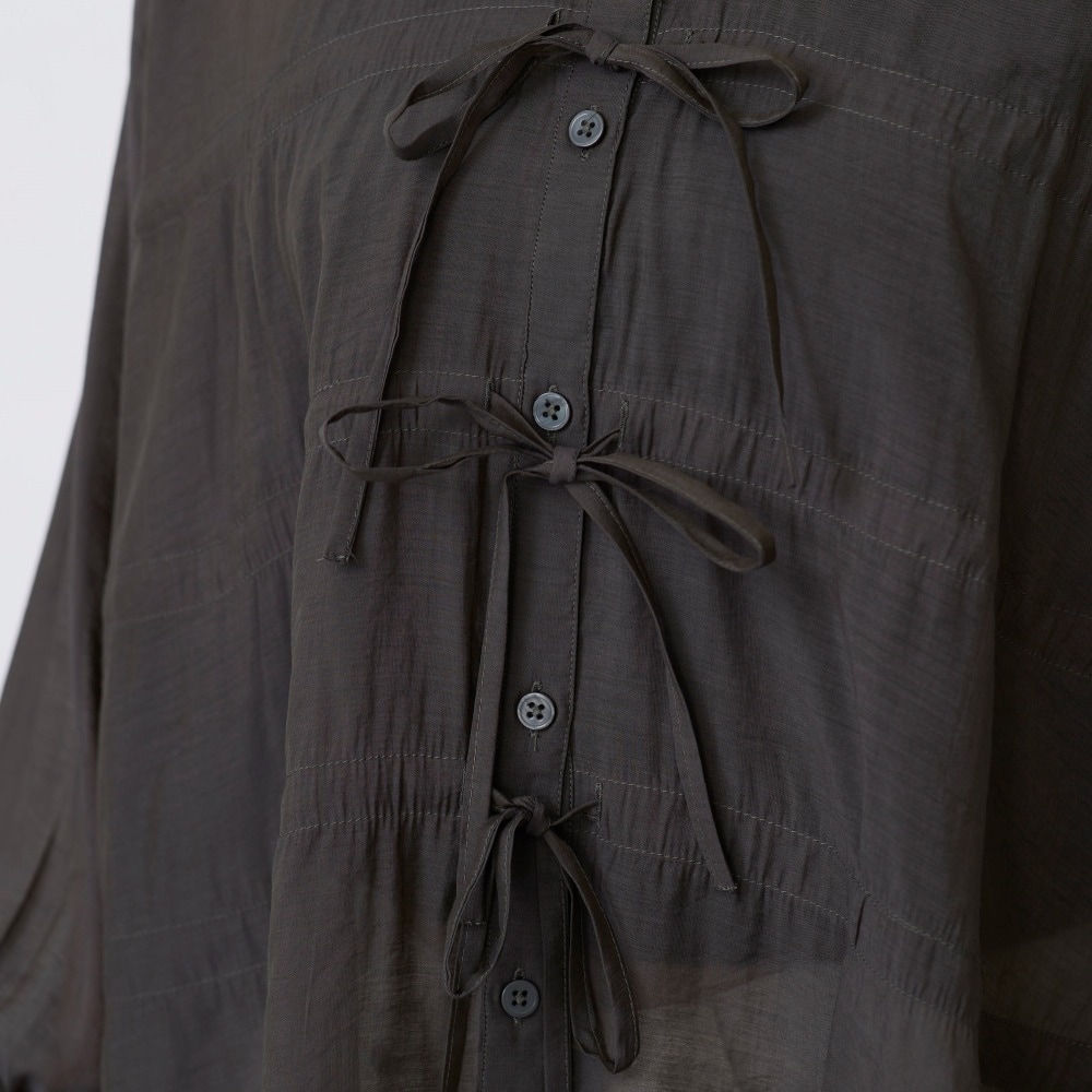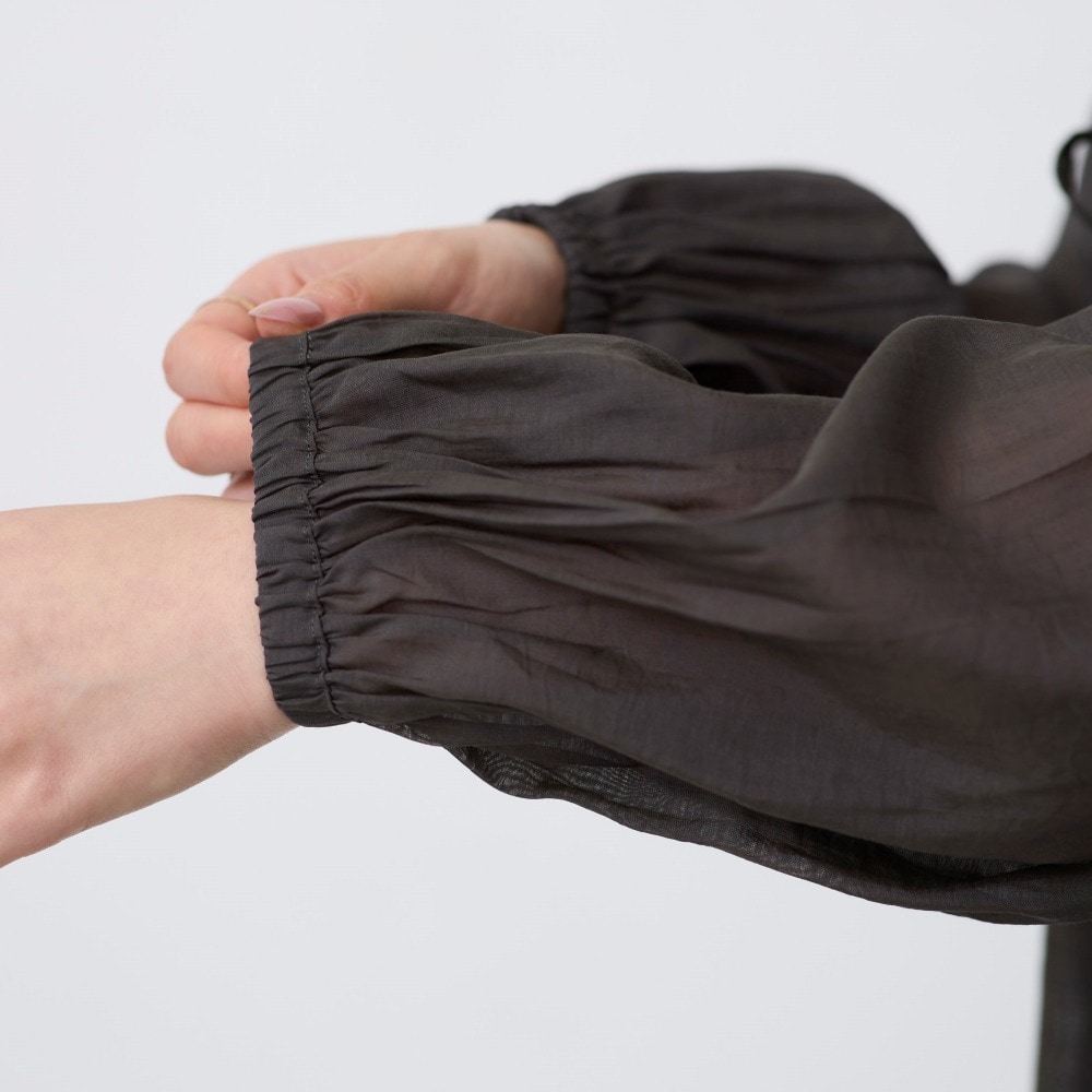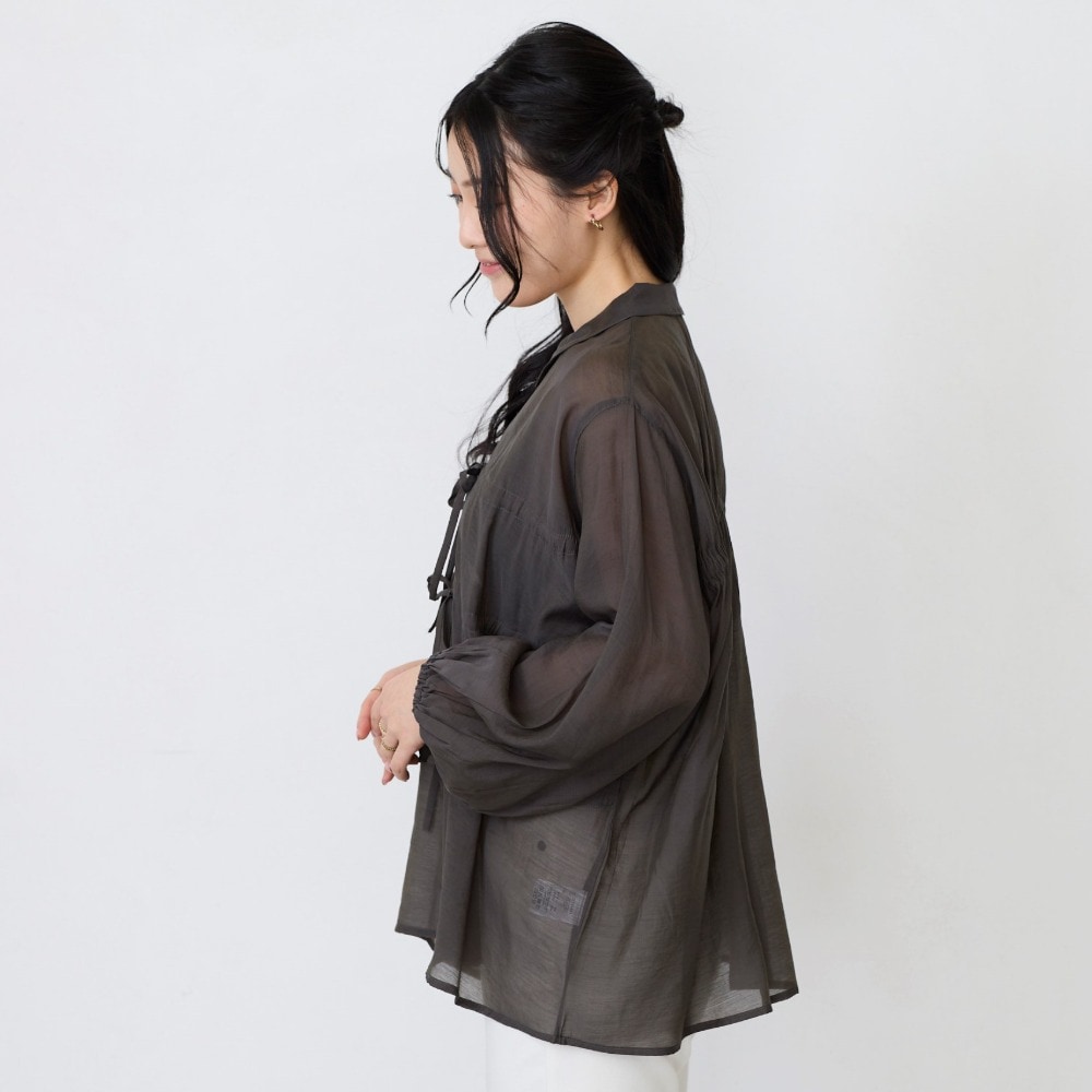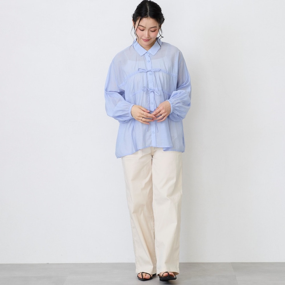 ドロストリボンでシルエットを変える旬の透け感ブラウス