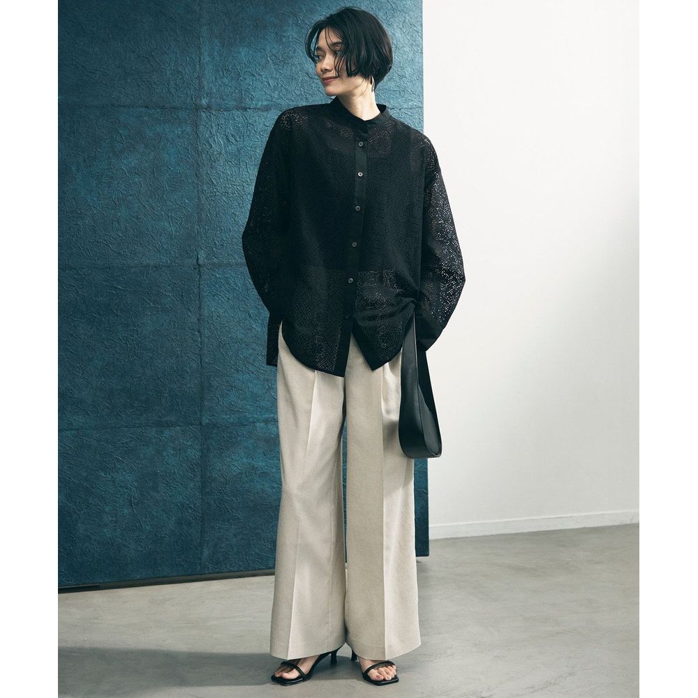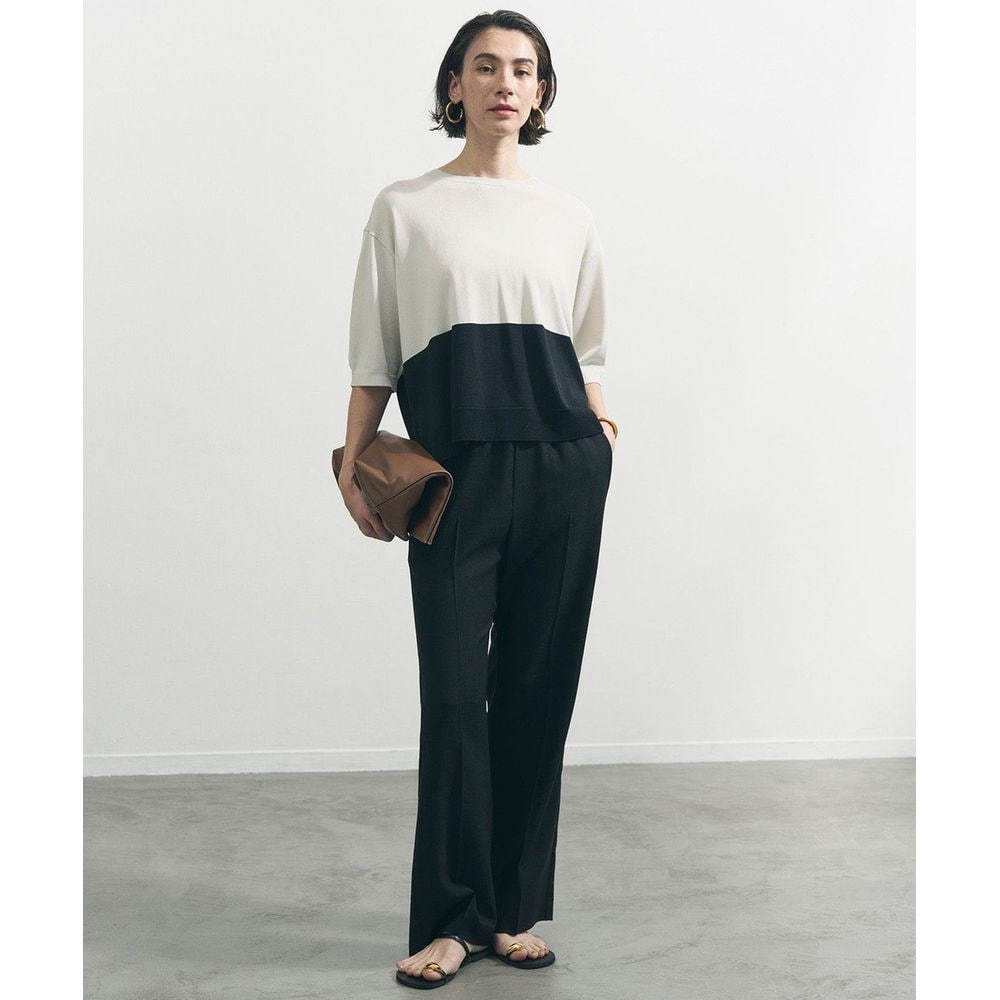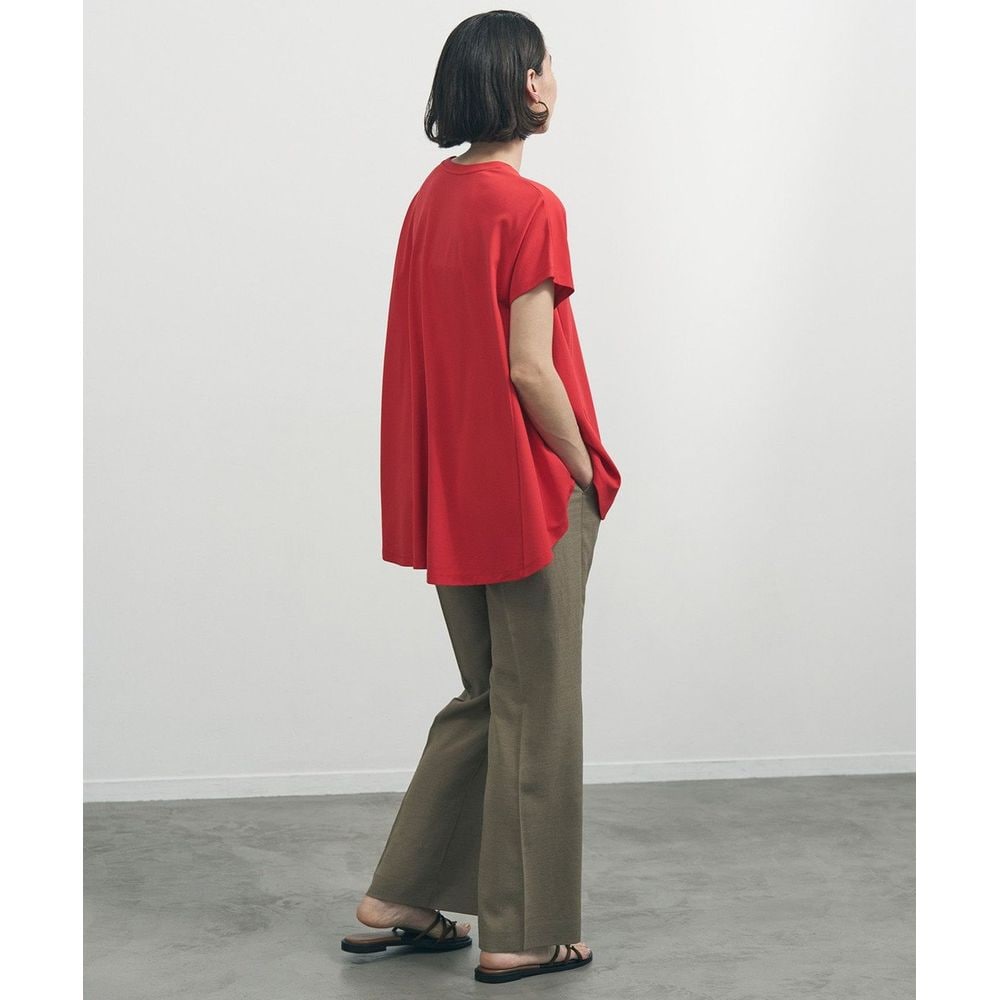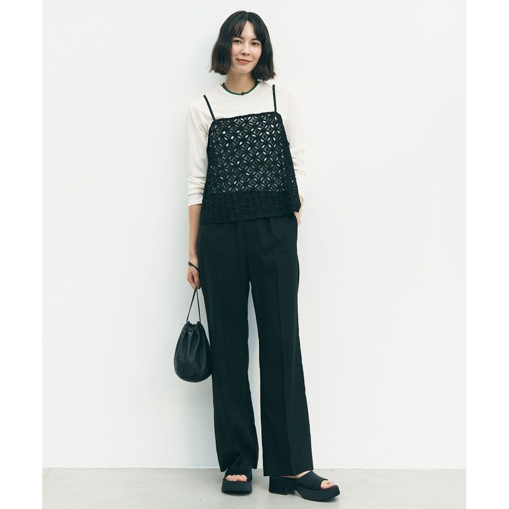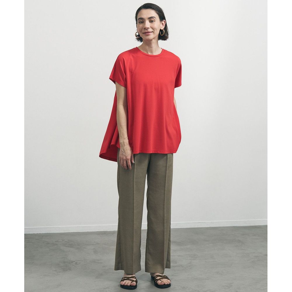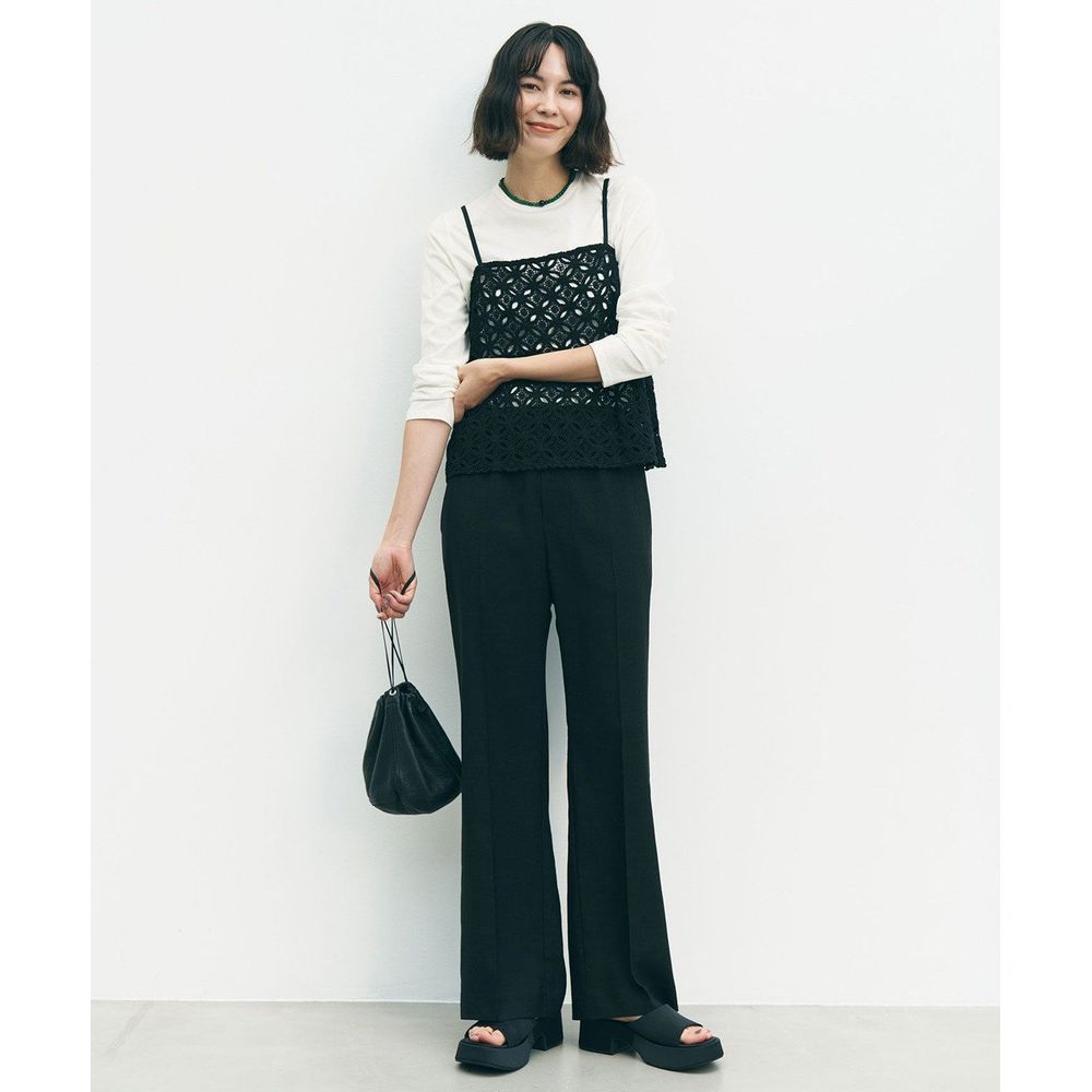 麻のようなドライタッチと軽い着心地が魅力のセミフレアパンツ。