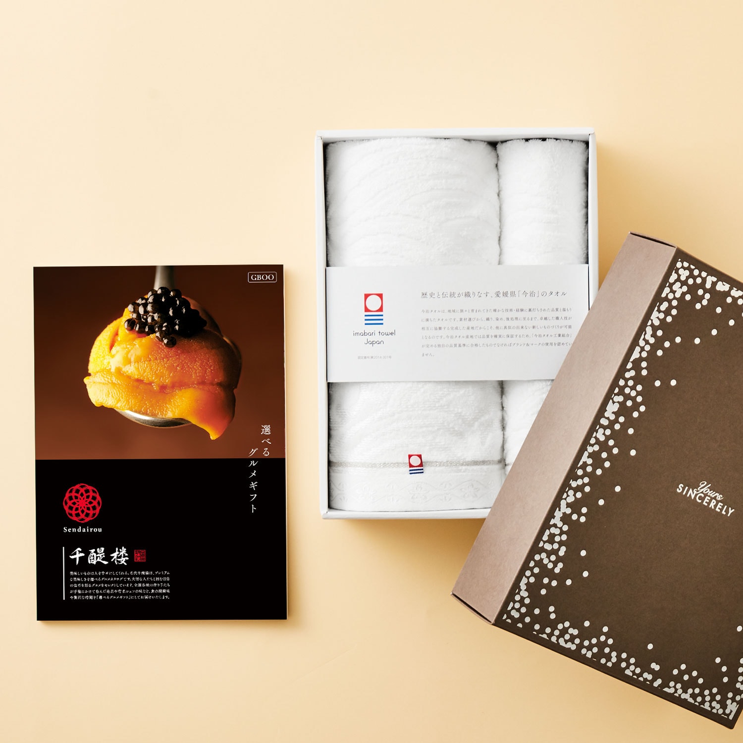 人気商品がセットになりました。美味しさ選べるグルメカタログギフト&今治タオルセット