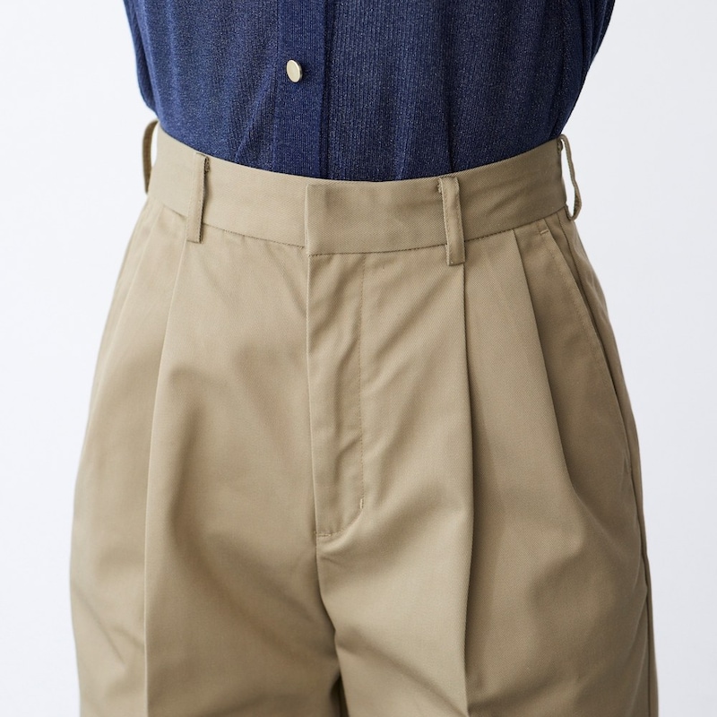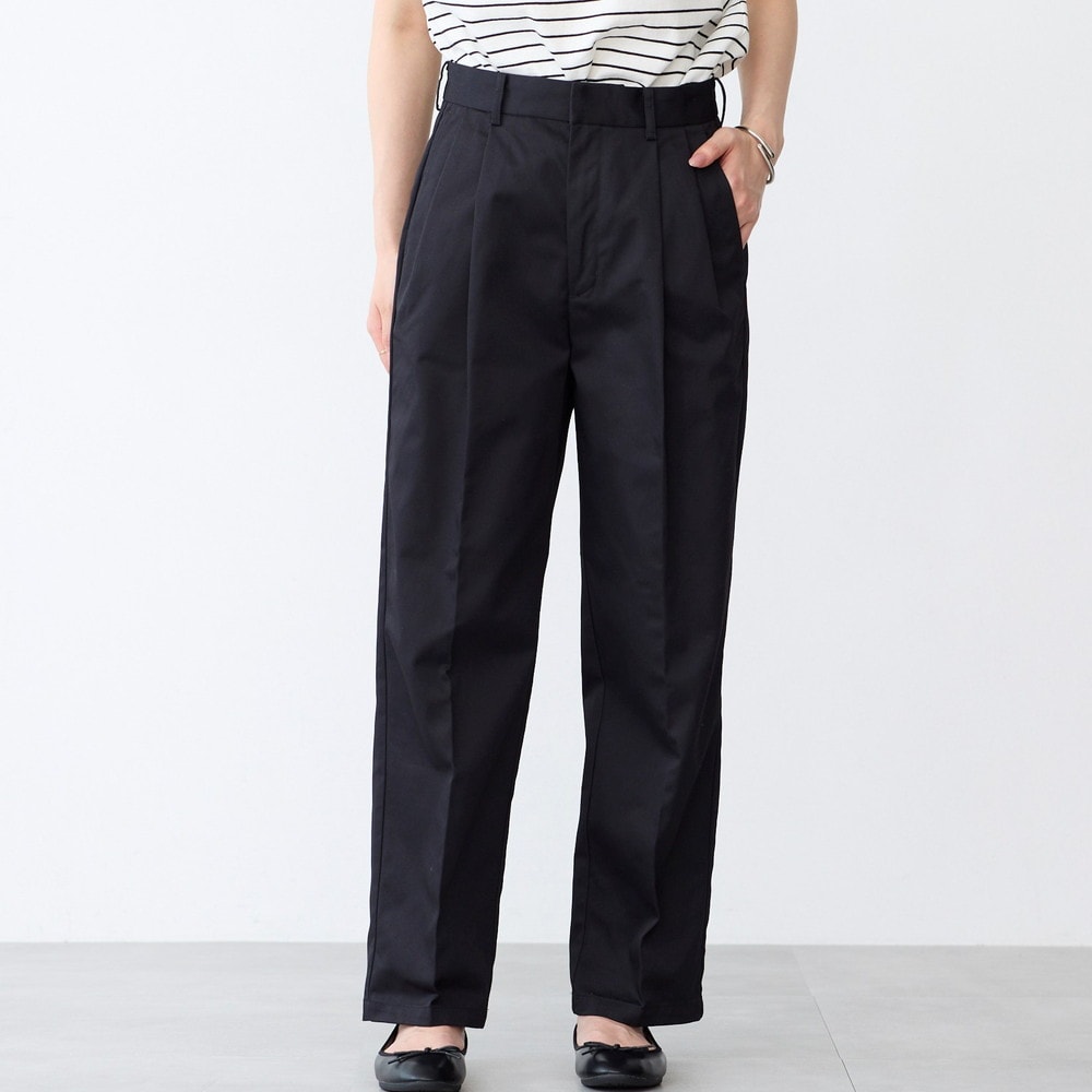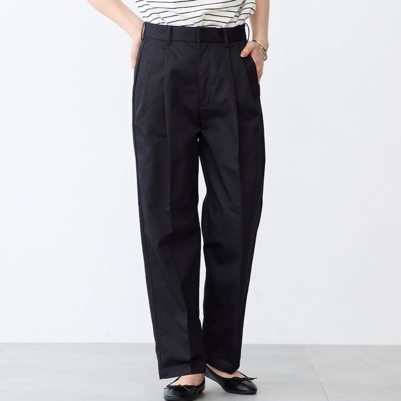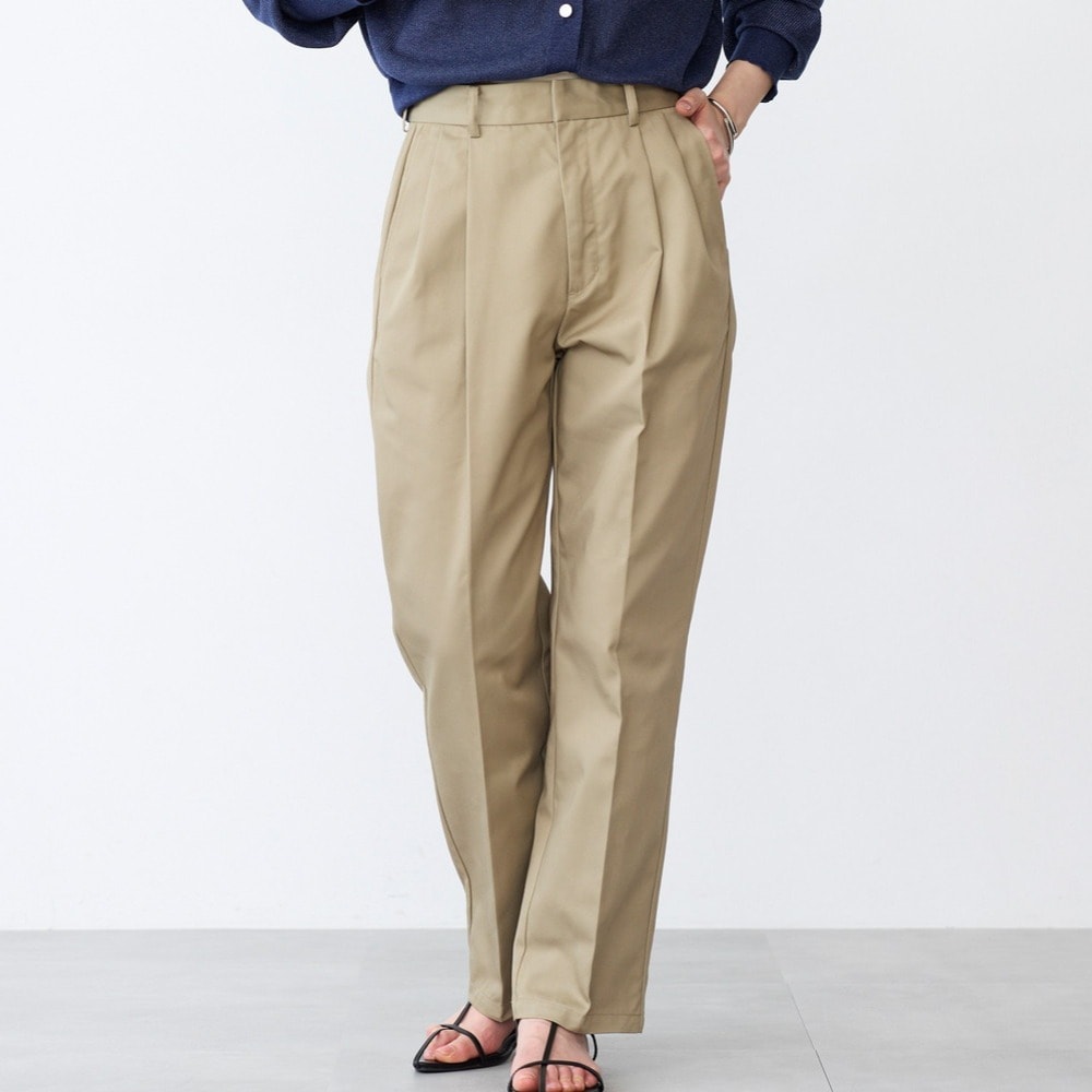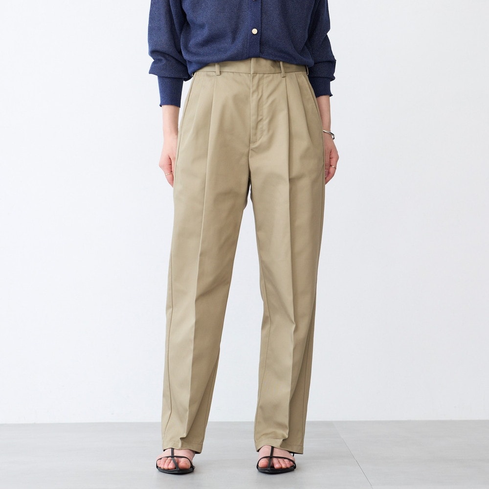 ハイウエストと2タックで脚長に見せるツイルパンツ