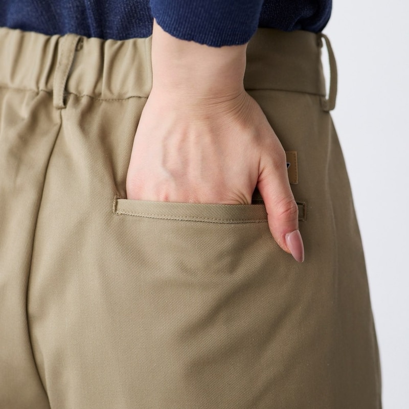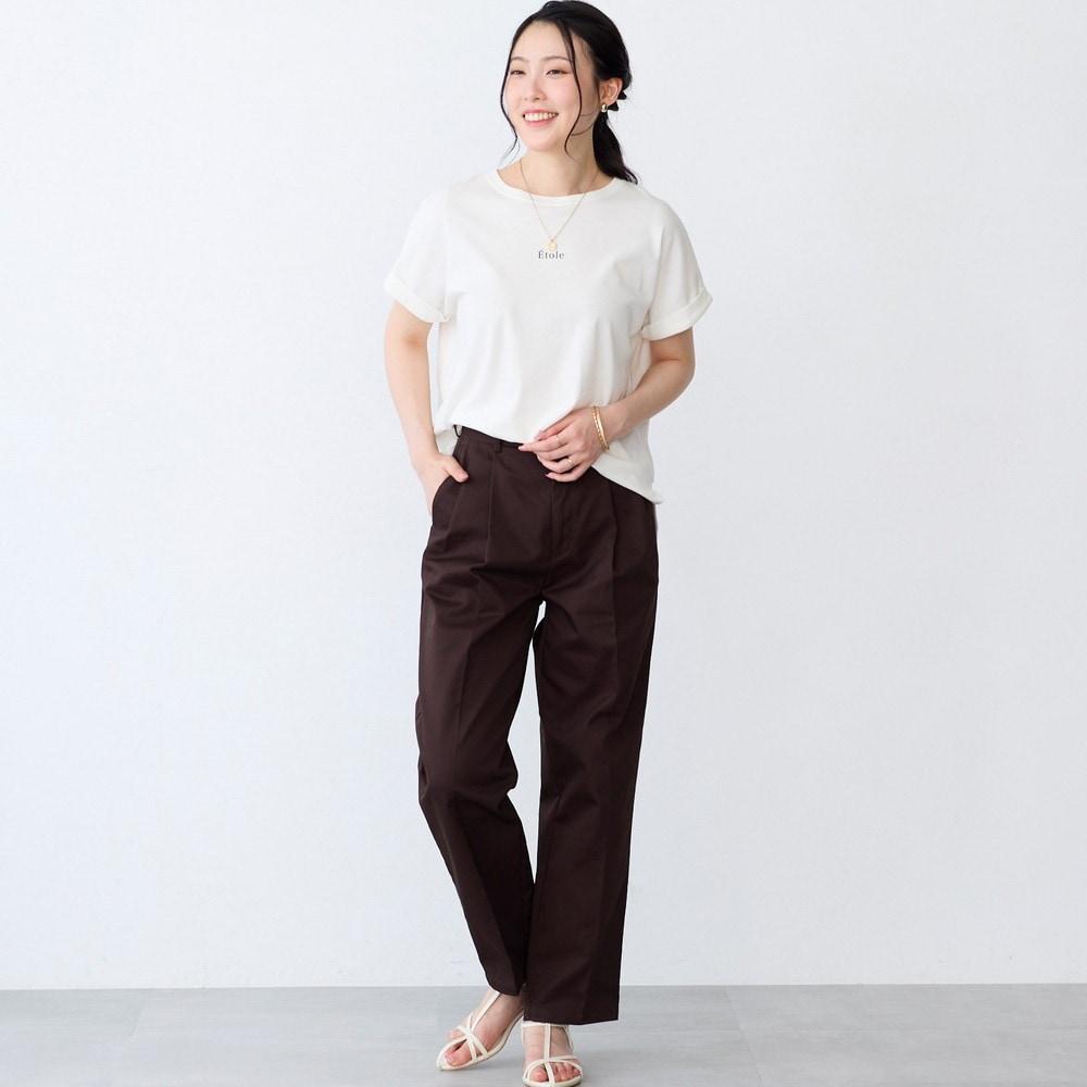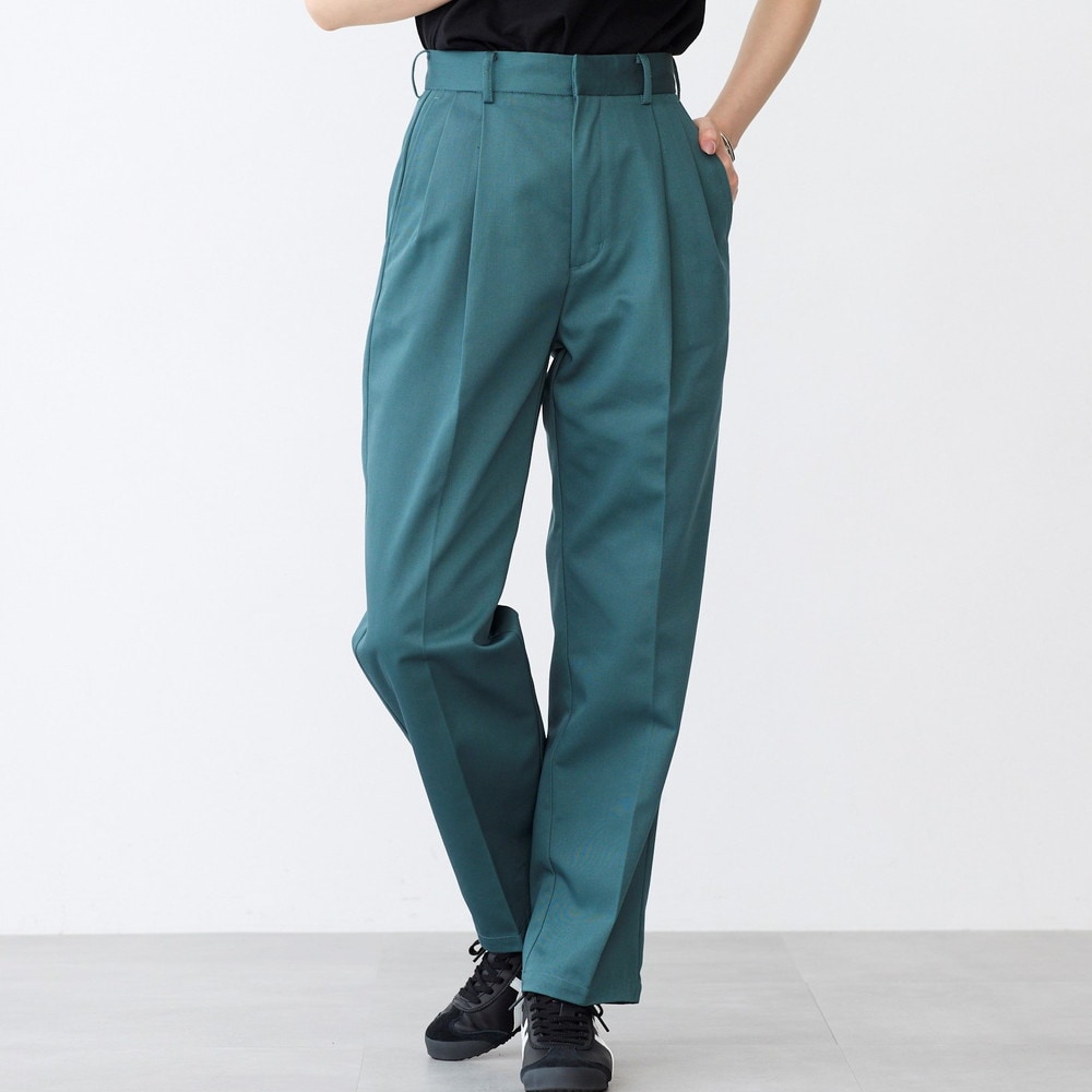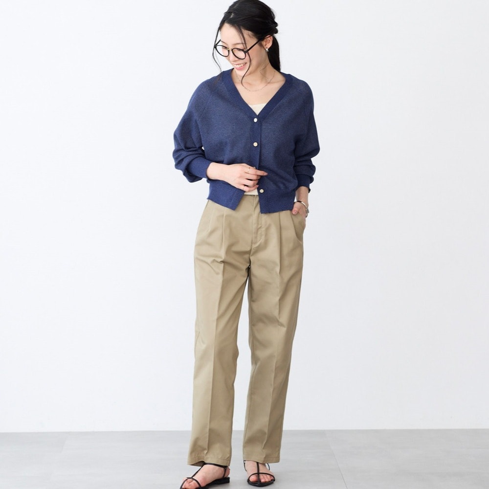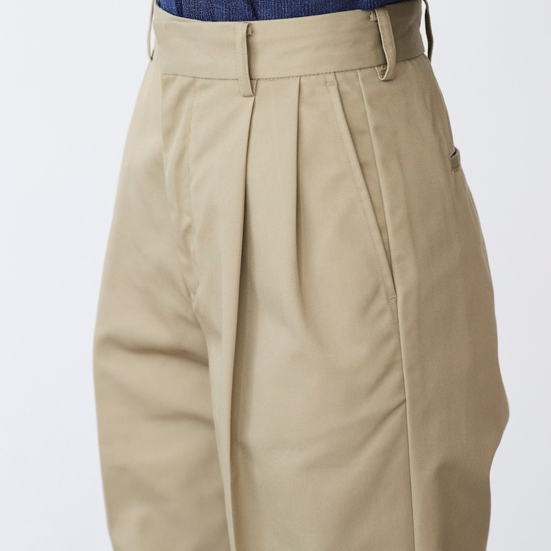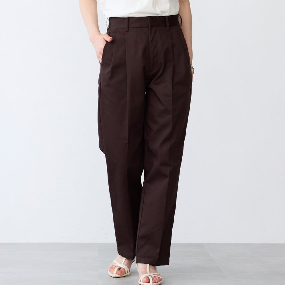 ハイウエストと2タックで脚長に見せるツイルパンツ
