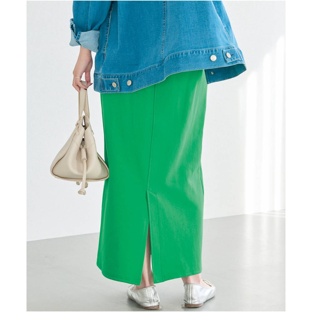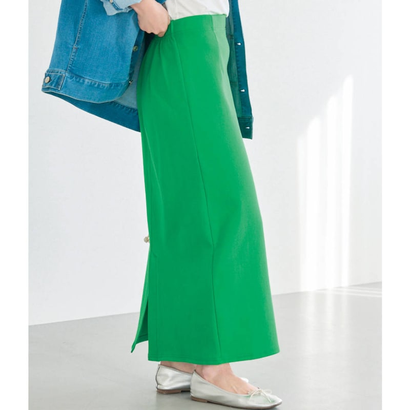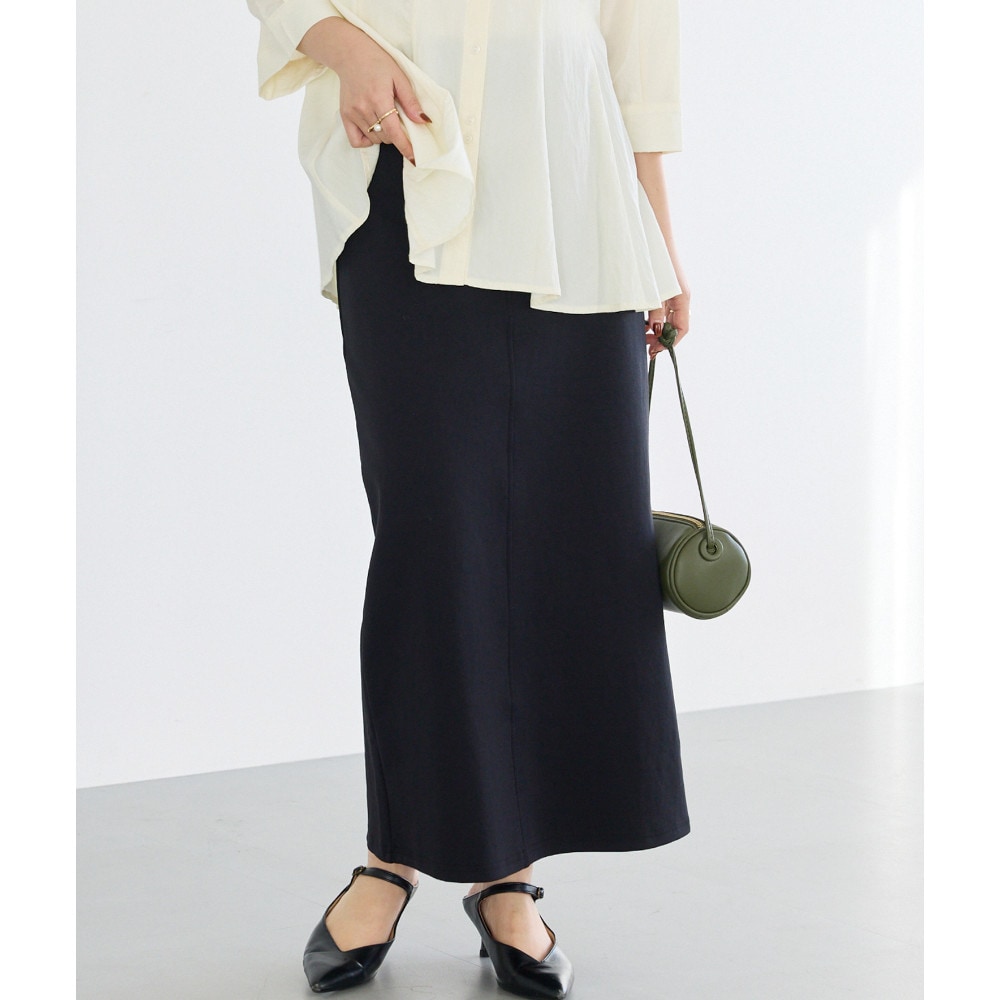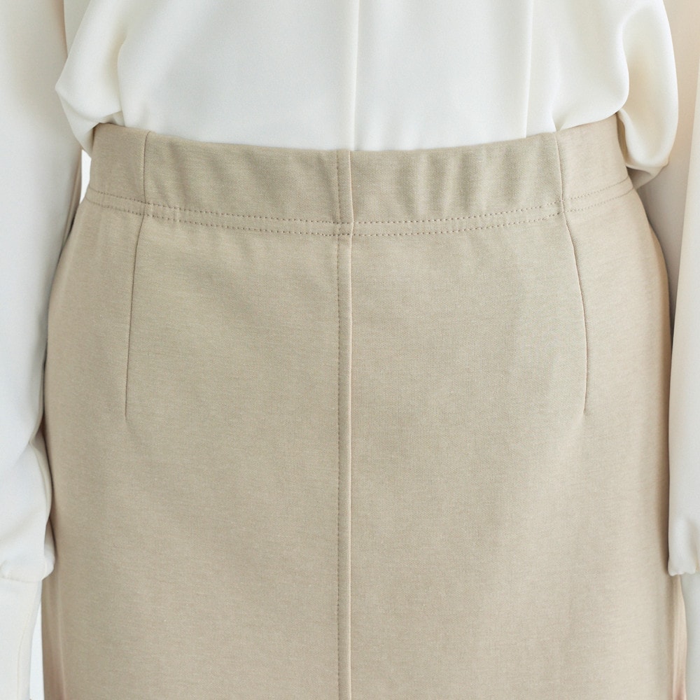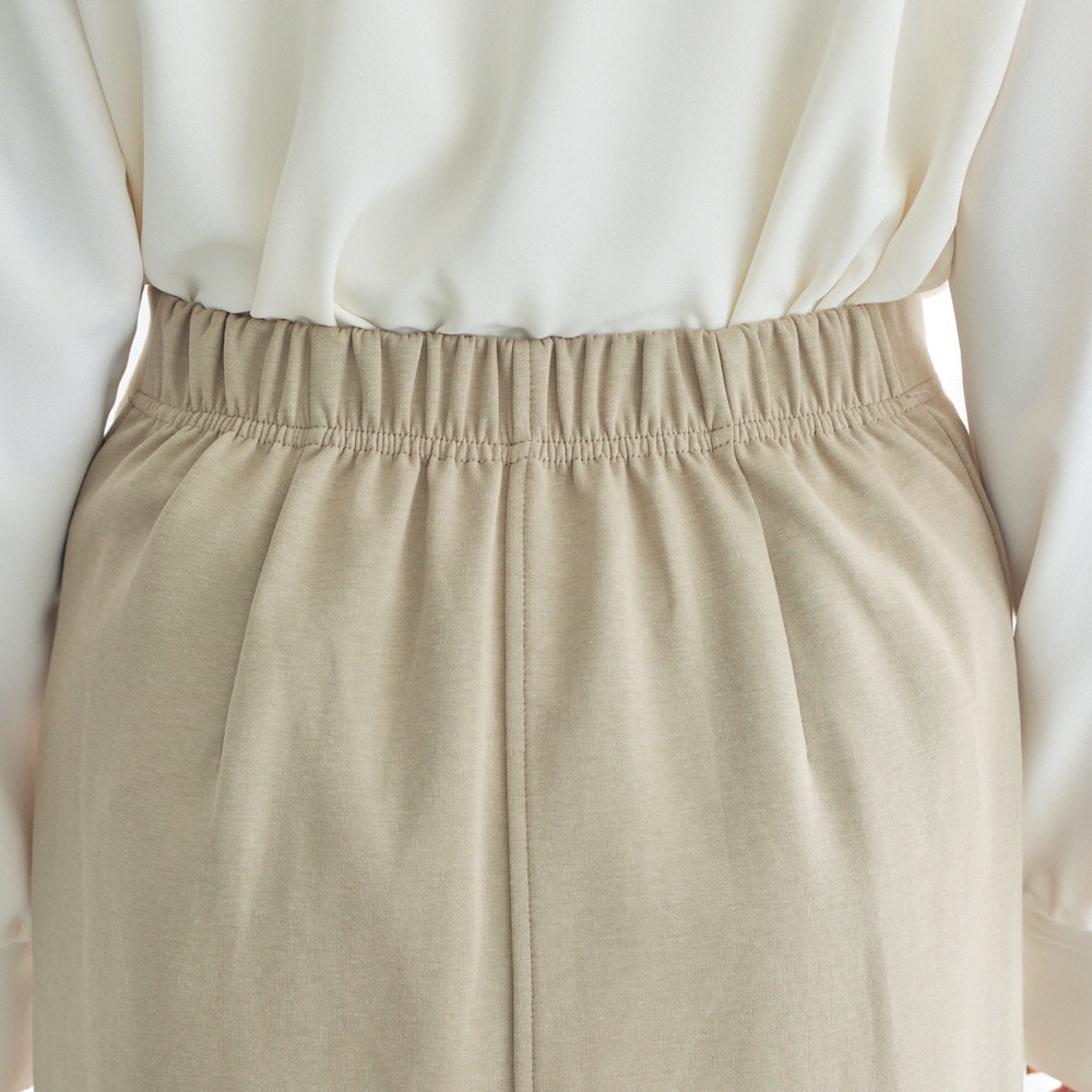 タイトシルエットながら生地にストレッチ性があり、ウエストは後ろゴム仕様なのでリラックスして穿いていただけます。
