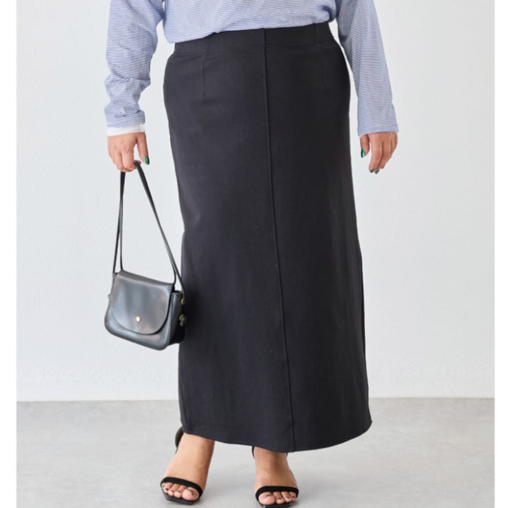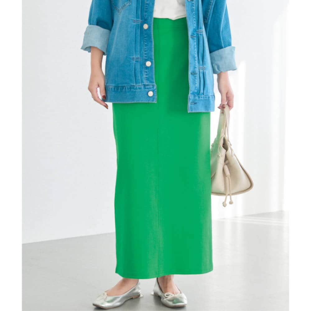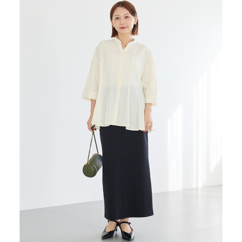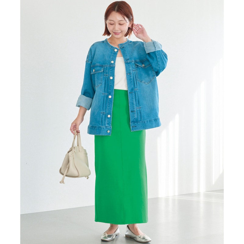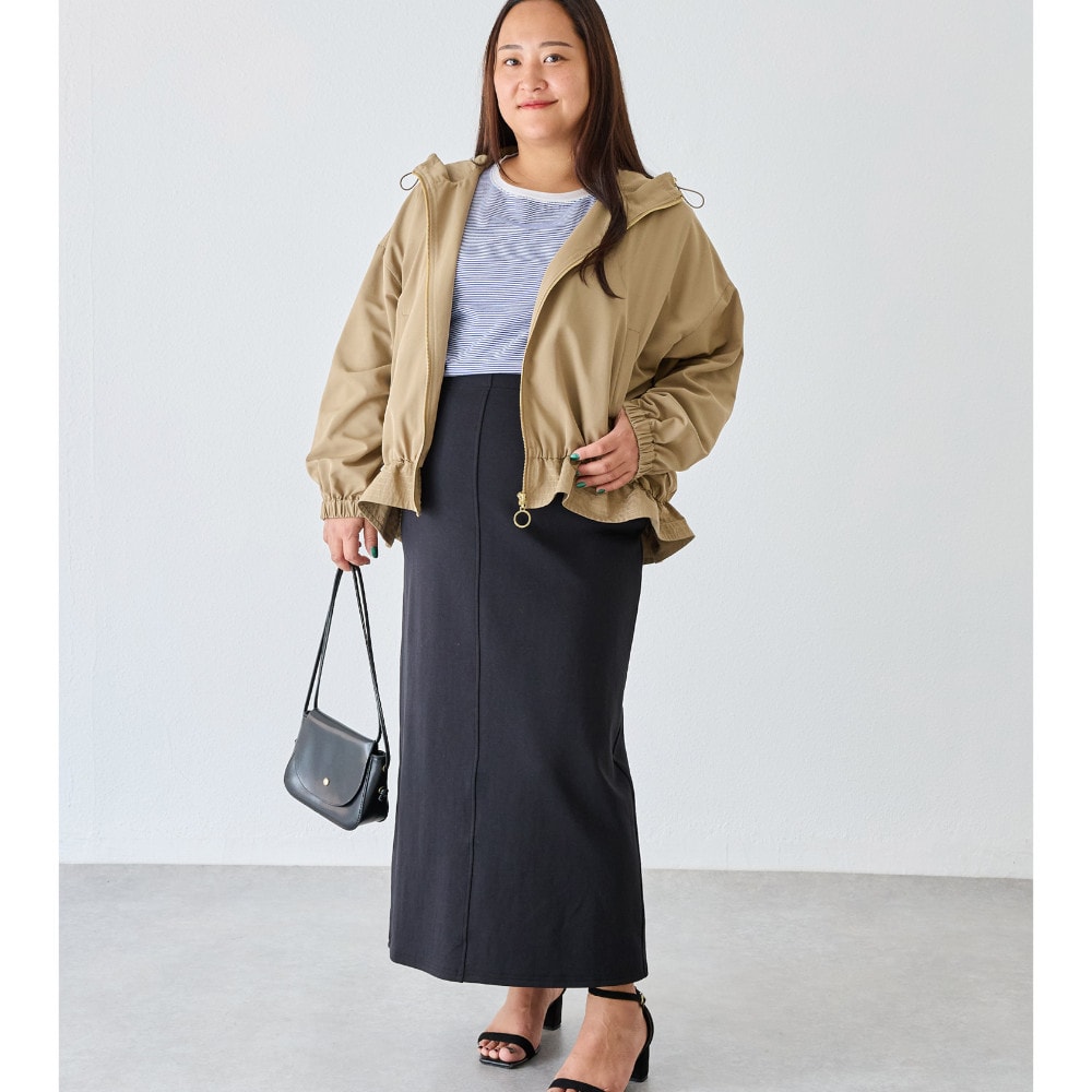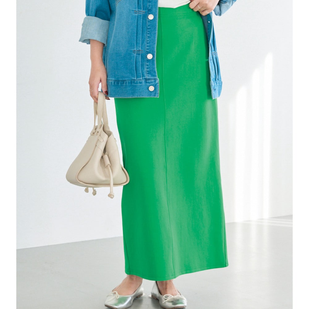 タイトシルエットながら生地にストレッチ性があり、ウエストは後ろゴム仕様なのでリラックスして穿いていただけます。