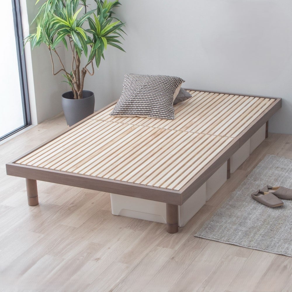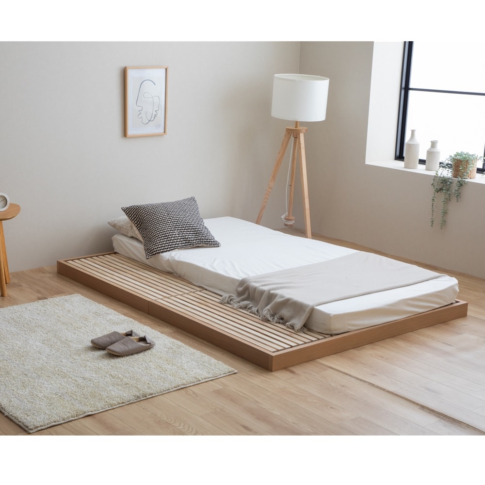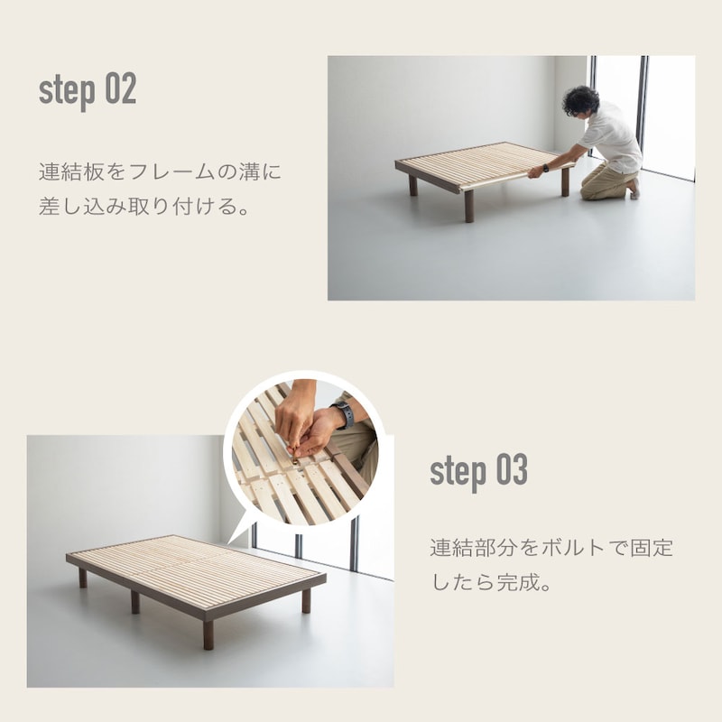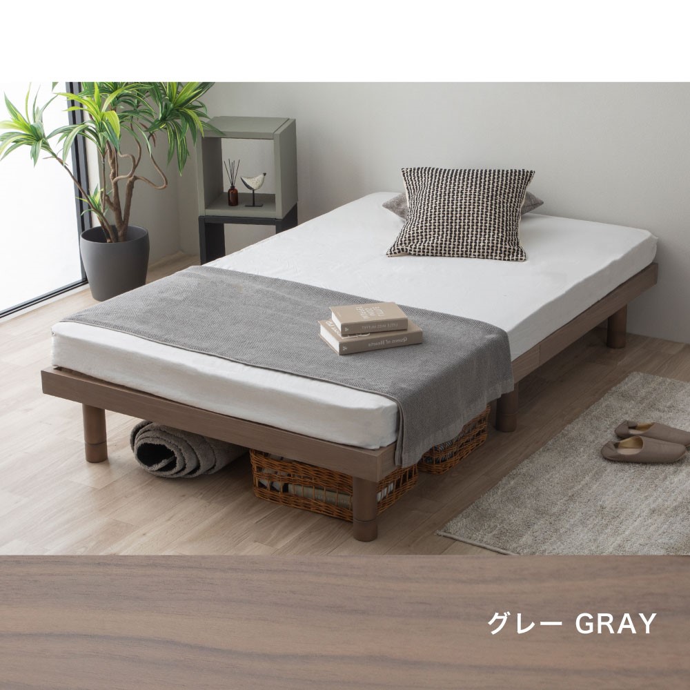 ●主材/フレーム:天然木化粧合板(ナチュラル:タモ材<オイル仕上げ>、グレー:ウォルナット材<オイル仕上げ>)、すのこ:桐(無塗装)、脚部:天然木(パイン材<オイル仕上げ>)