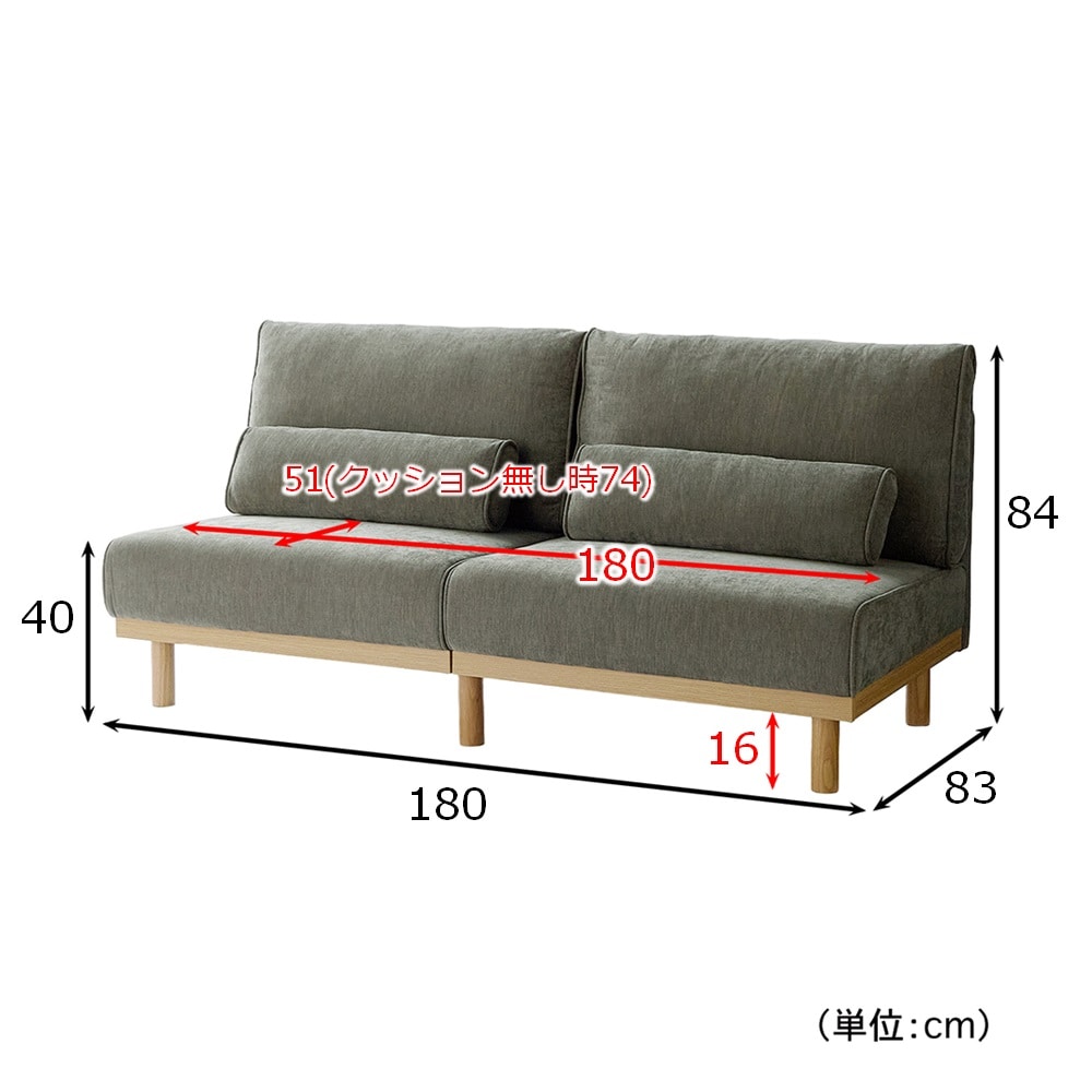 ●幅180cmあるので、クッションを外してお昼寝ソファーとしても使えるサイズ感