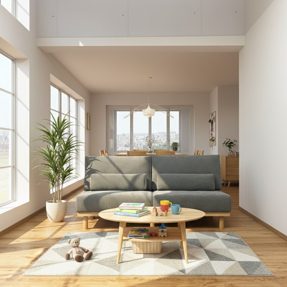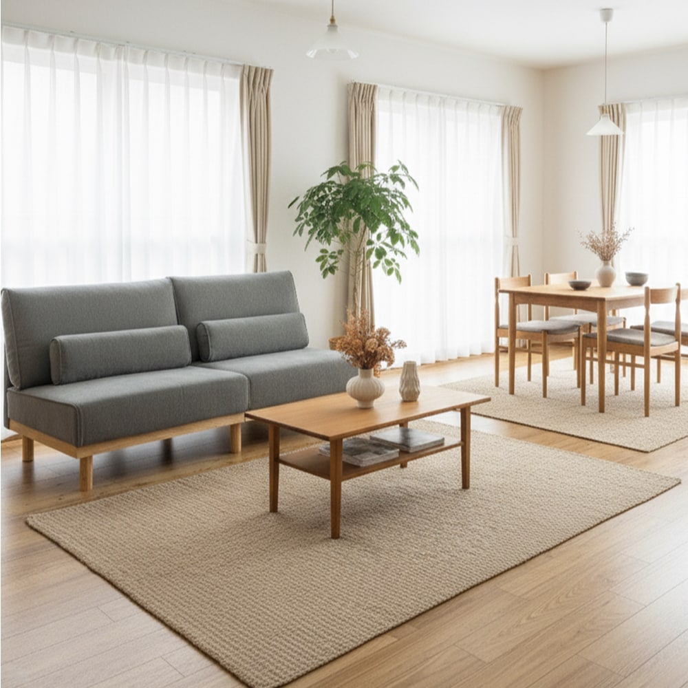 クッション付き3人掛けソファー <ごろ寝もできる>