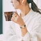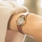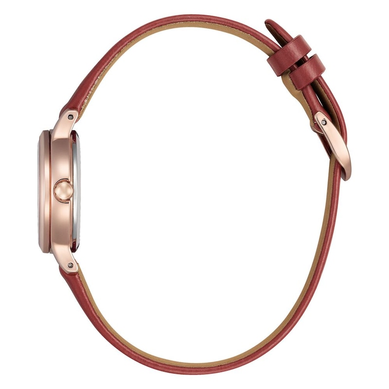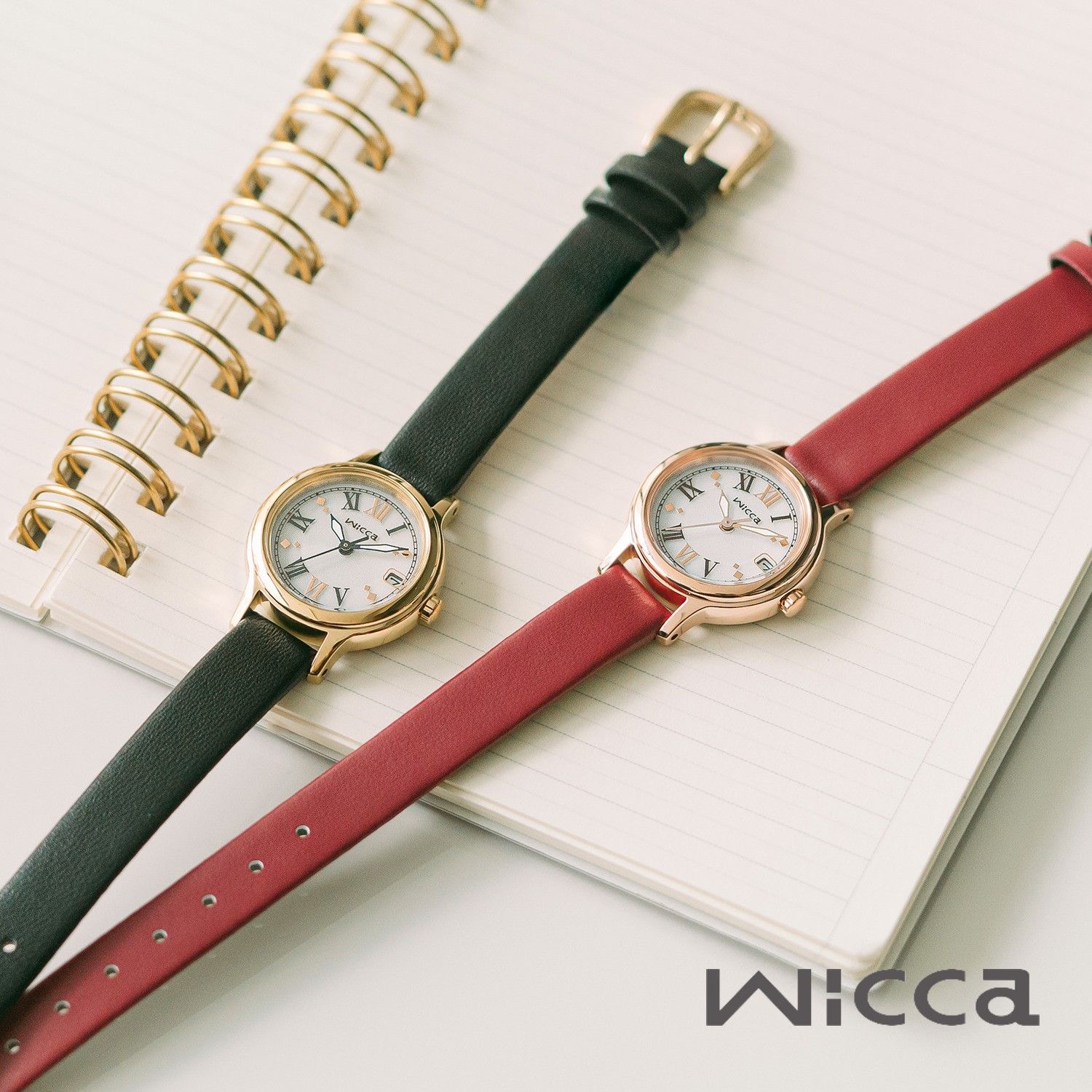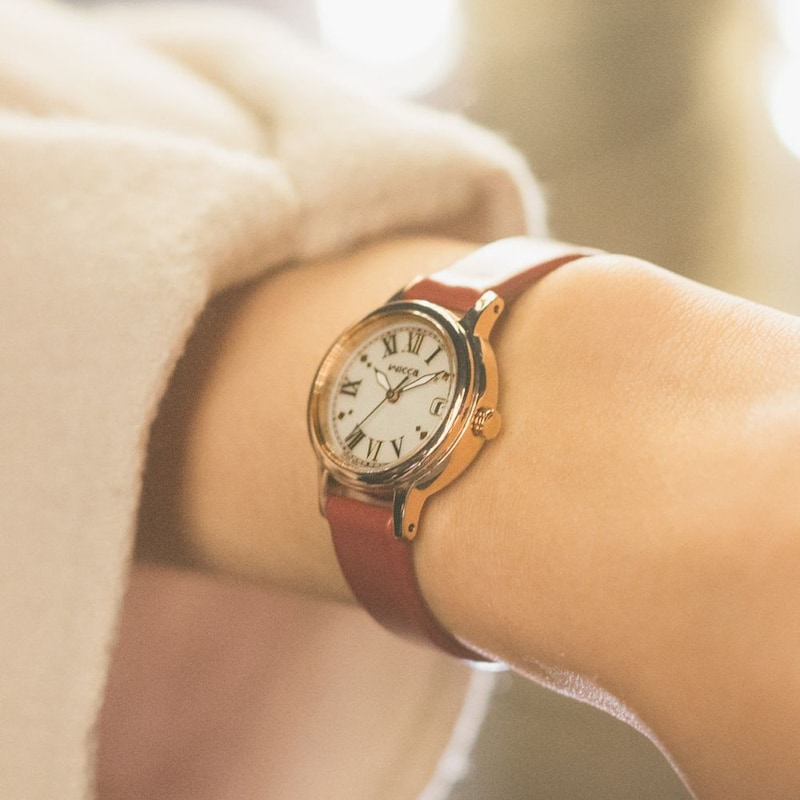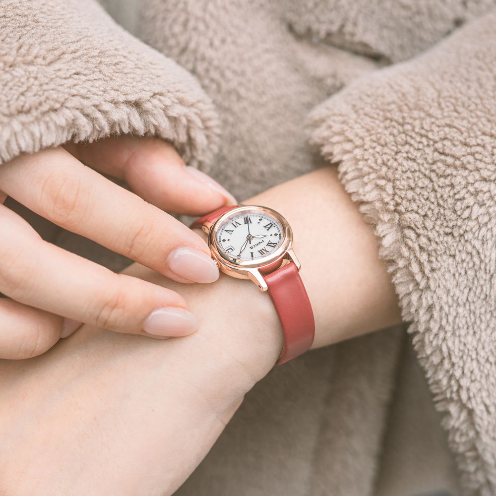 ・ウォームゴールドのケースに黒の革バンド、華やかなピンクゴールドのケースに赤の革バンドがクラシカルで落ち着いた印象を放ちます。