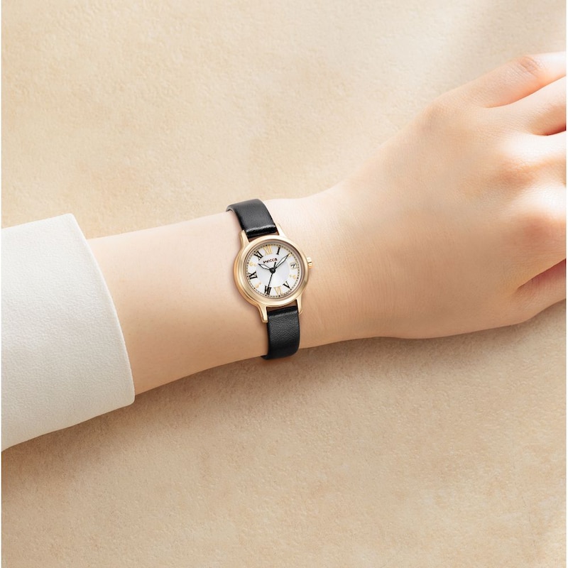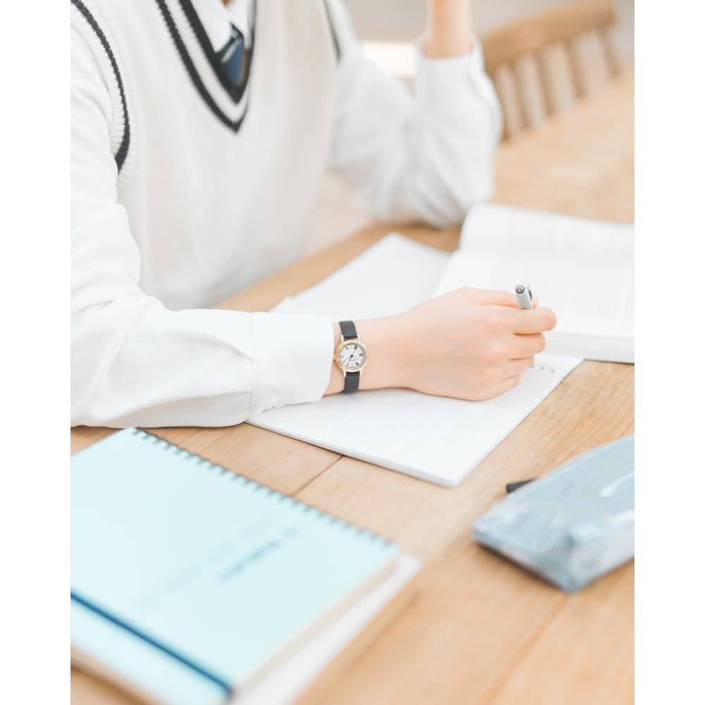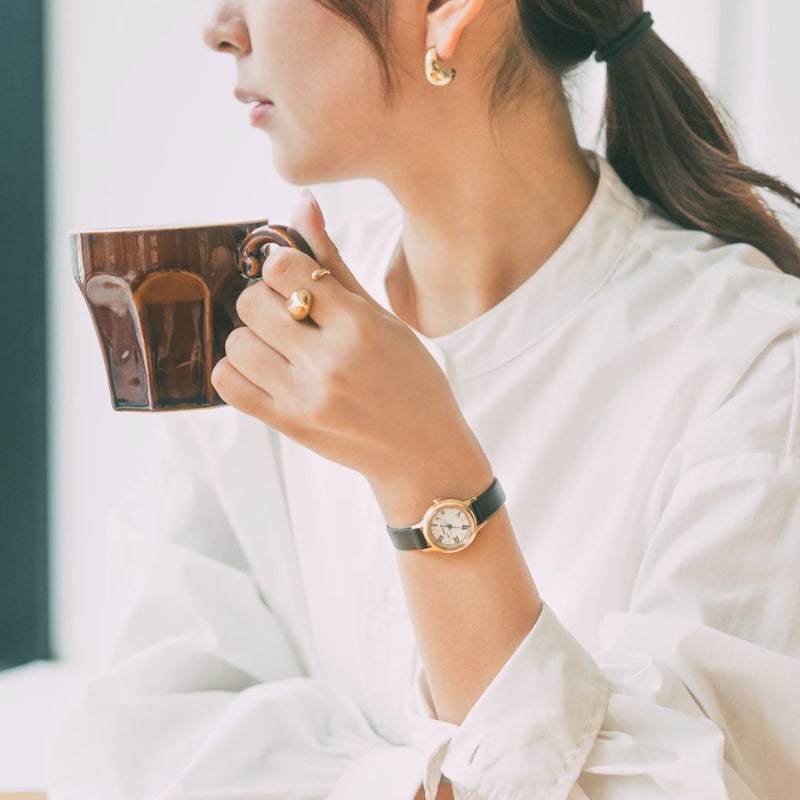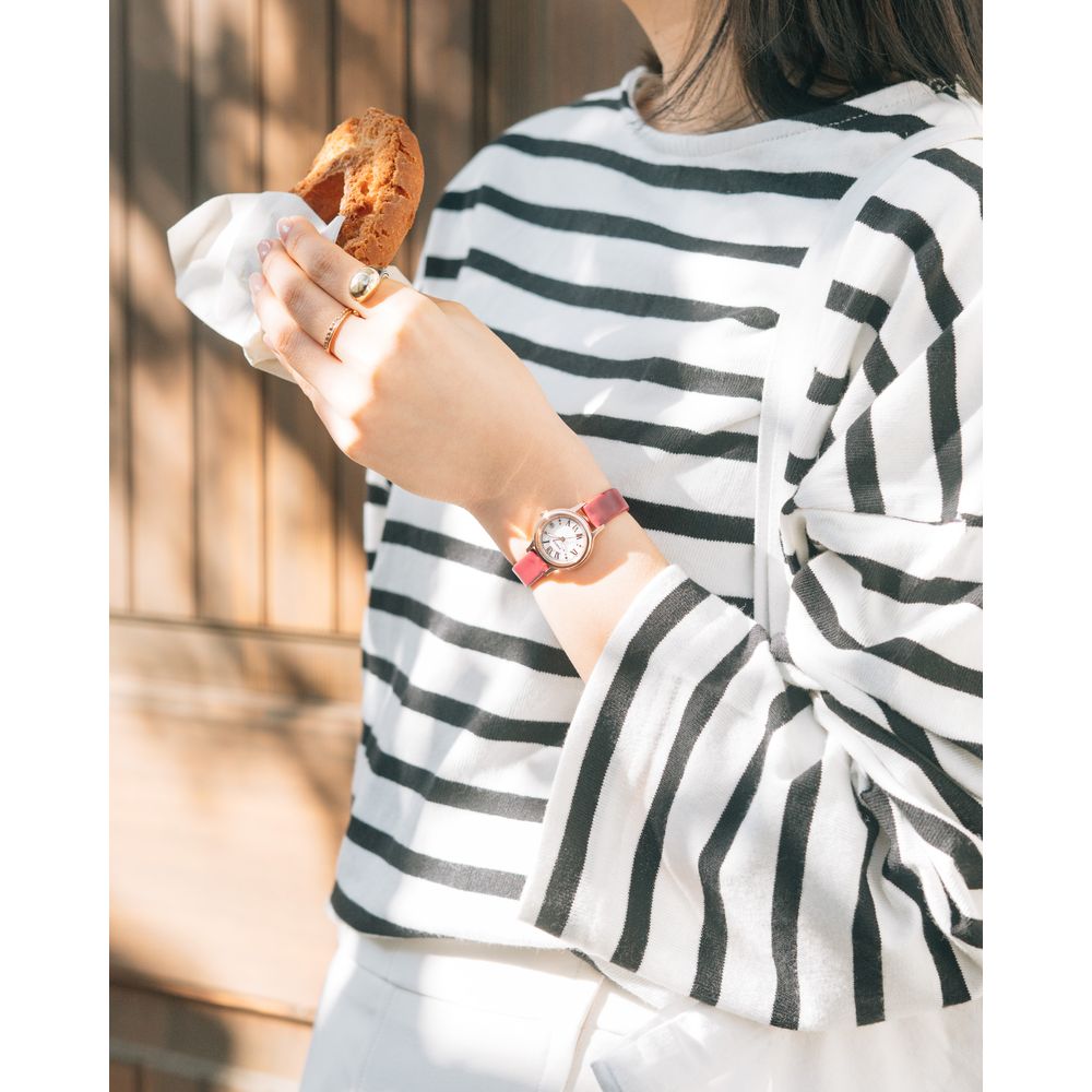 ・ベーシックなフォルムのケースに、クラシカルなローマ数字インデックスを採用した、少しハンサムで大人っぽいデザイン。
