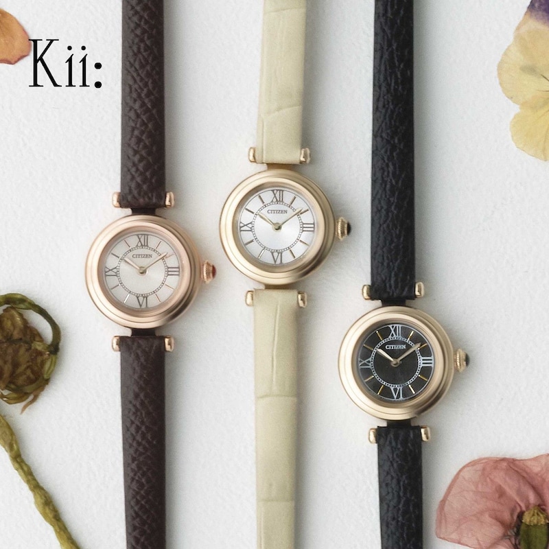 Kii: 裏地のカラーにもこだわった本革仕様の光発電エコドライブ腕時計